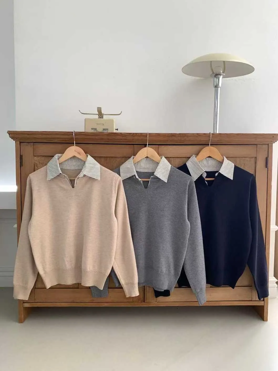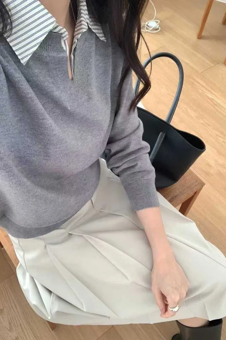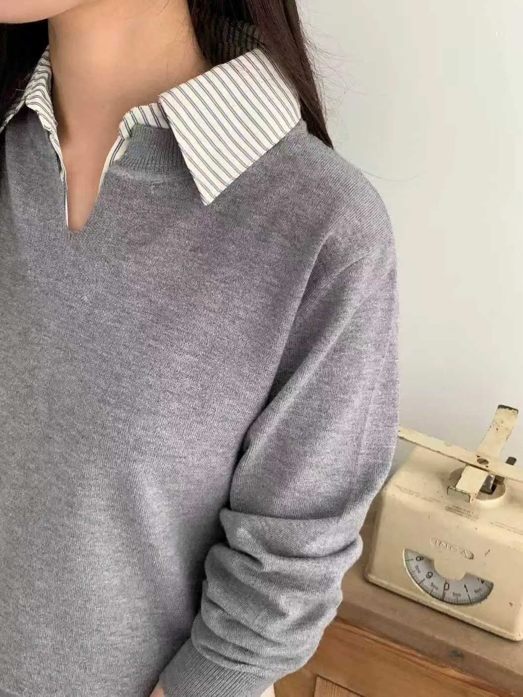 襯衫領假兩件針織衫
