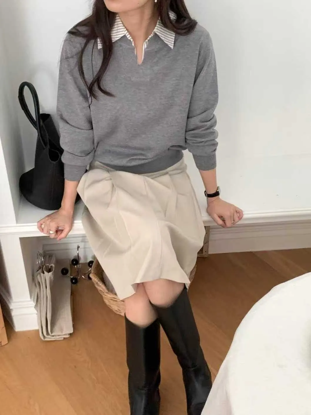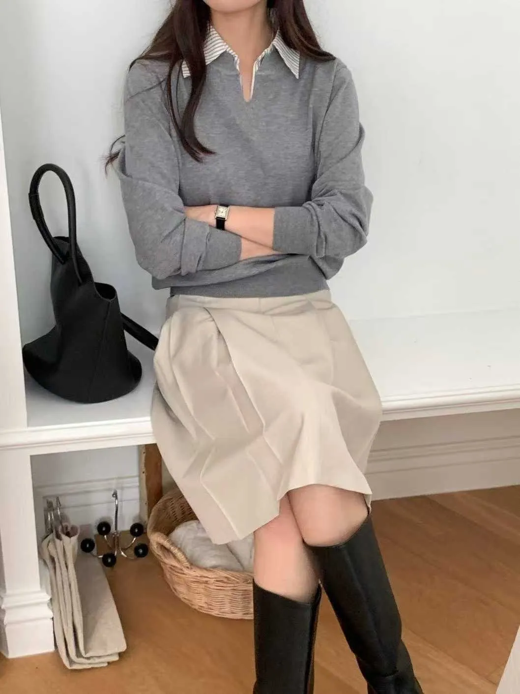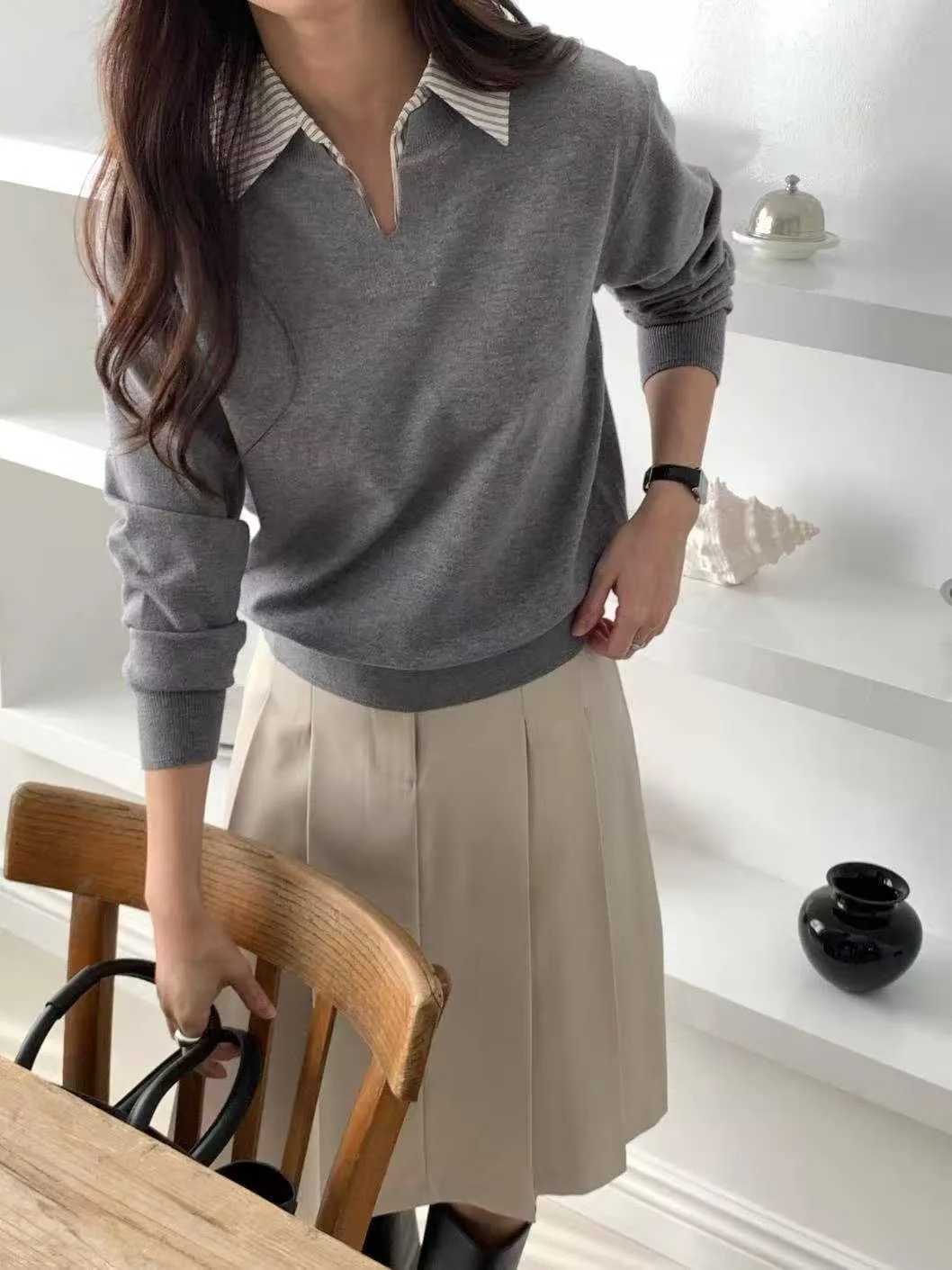 襯衫領假兩件針織衫