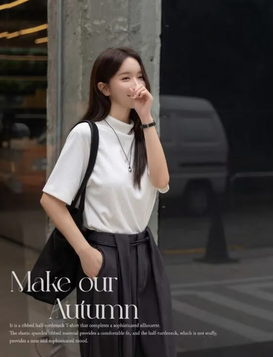 坑條紋半高領上衣