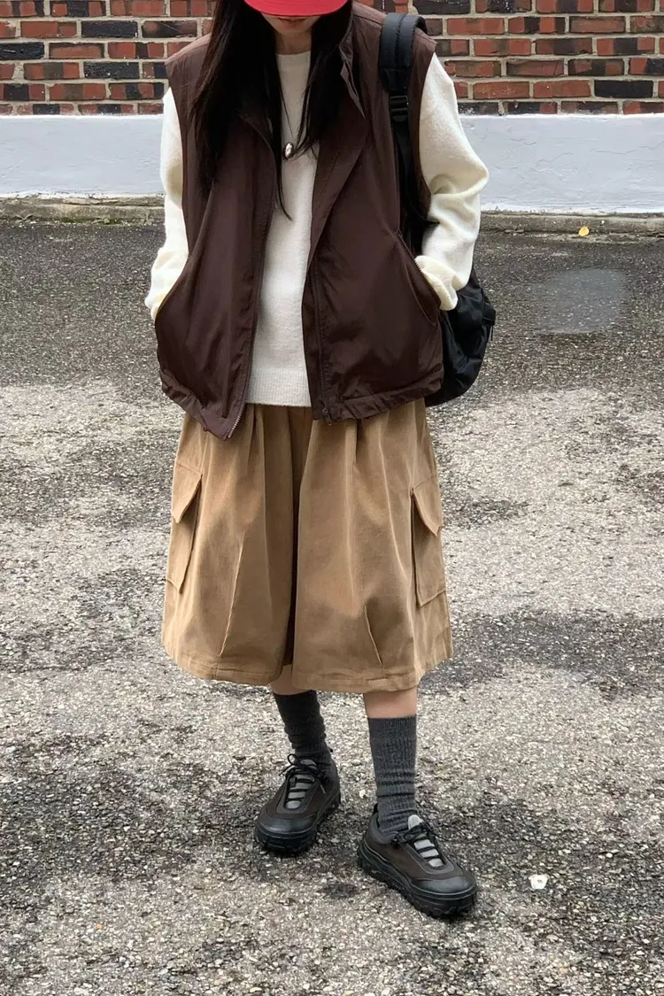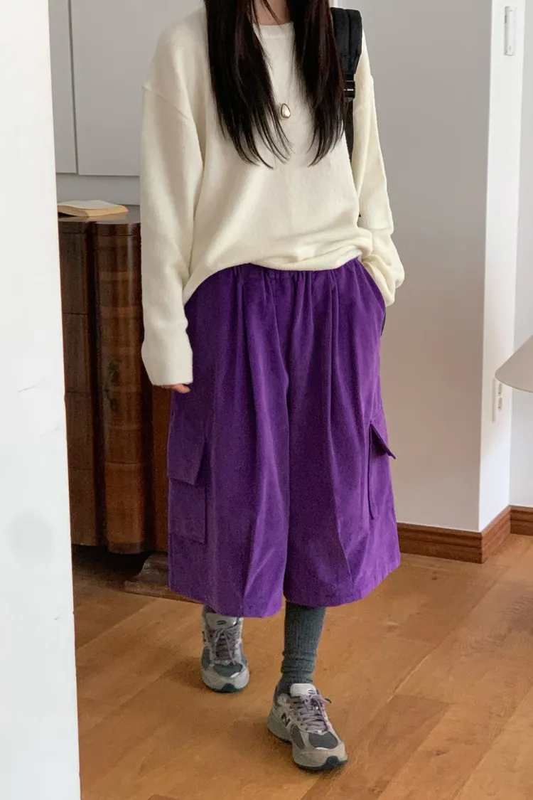 燈芯絨口袋八分褲