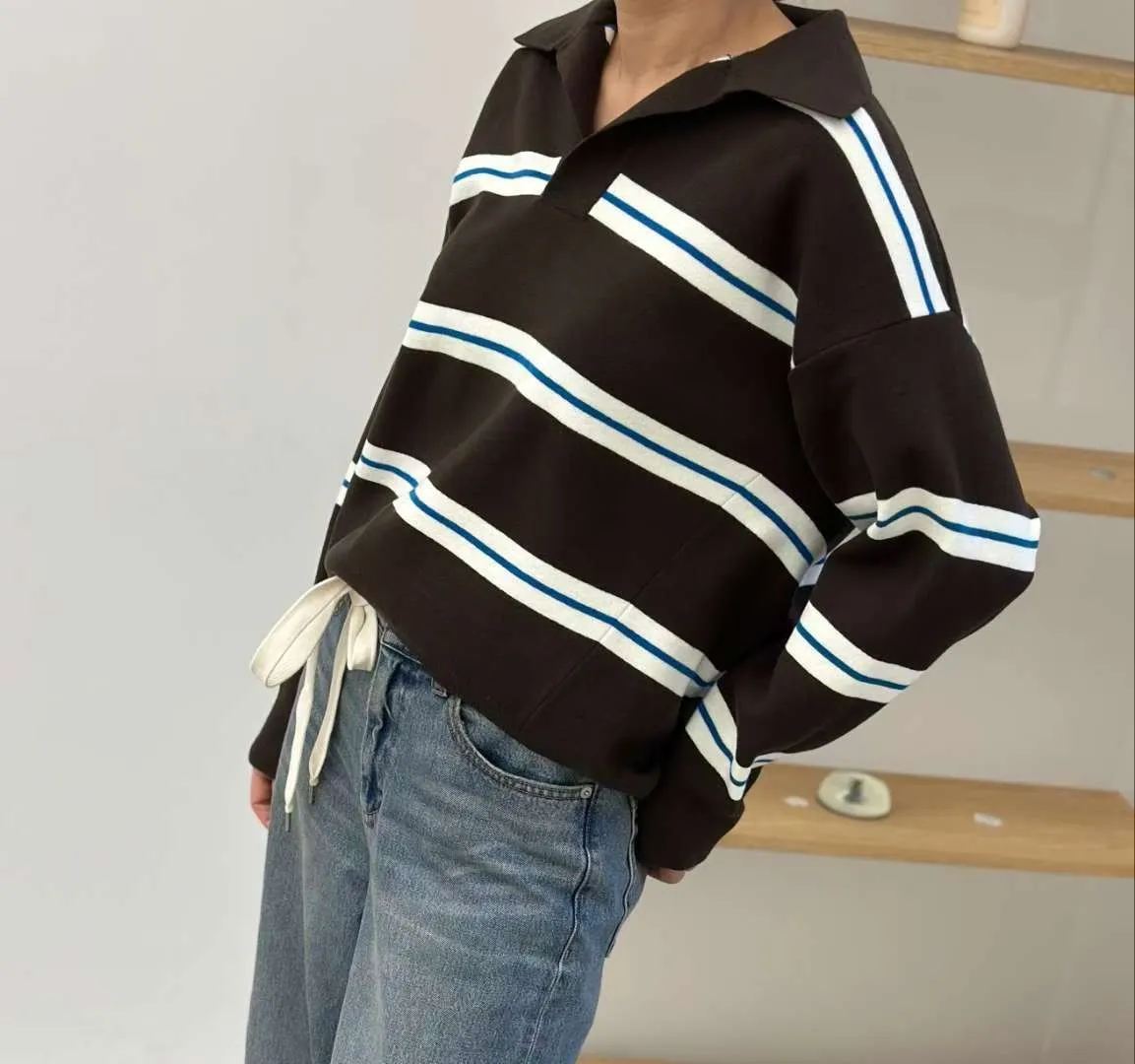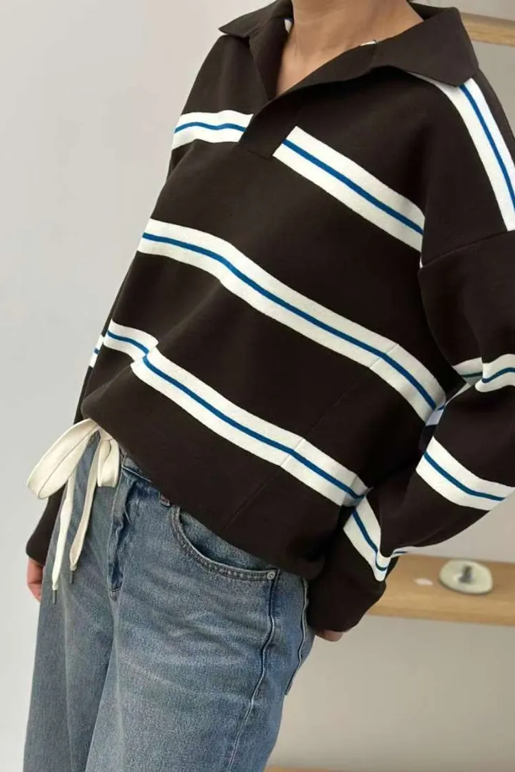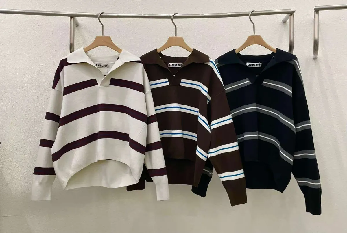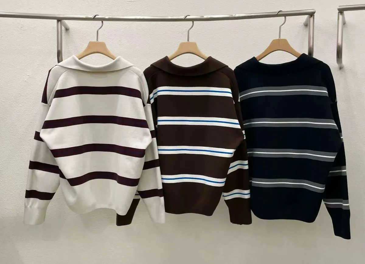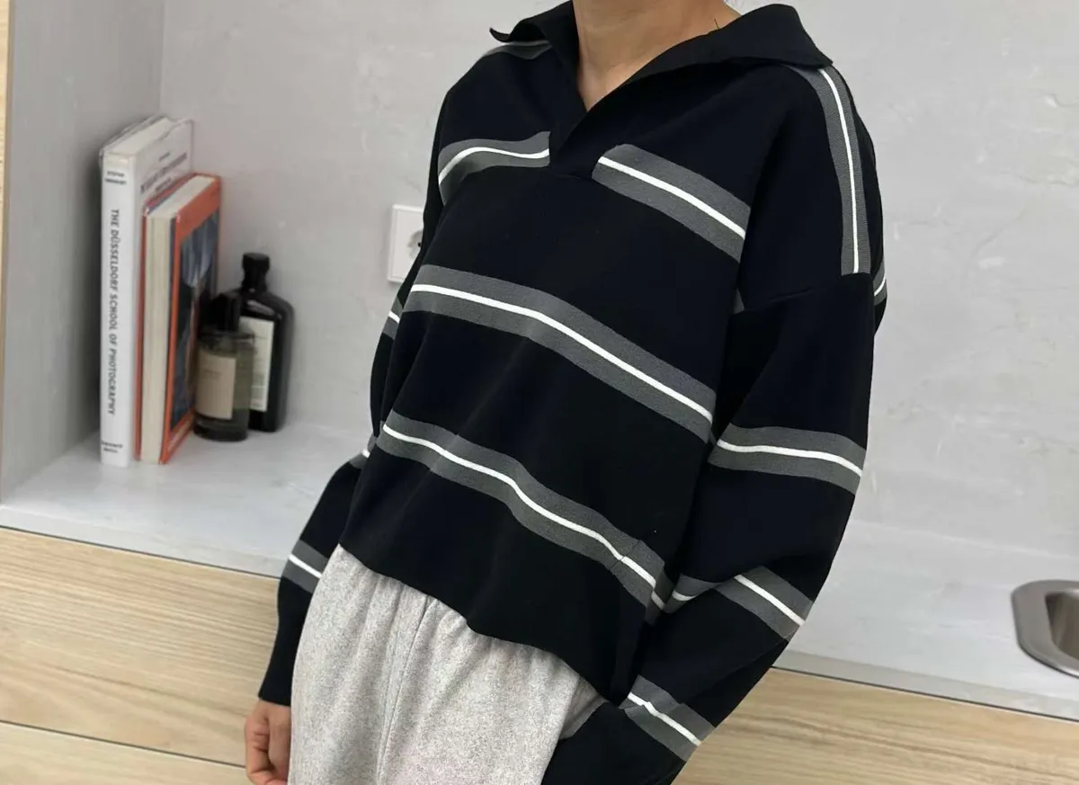 翻領橫條針織上衣🧶