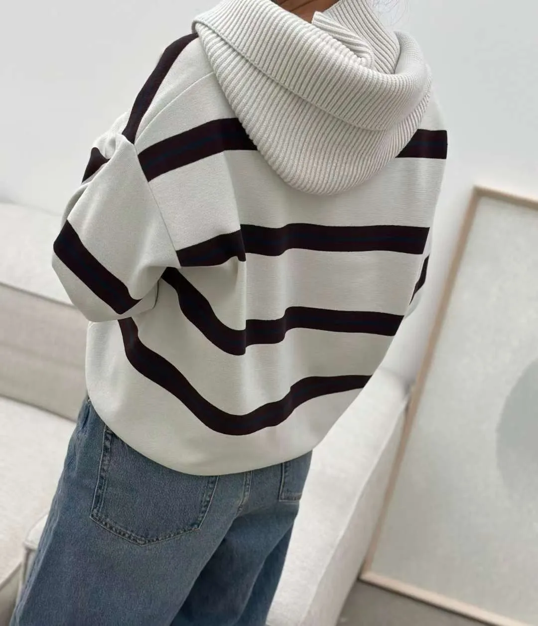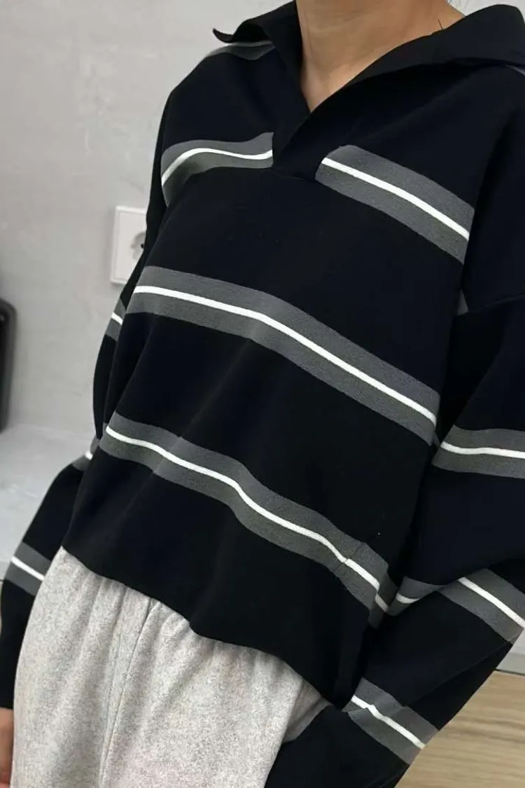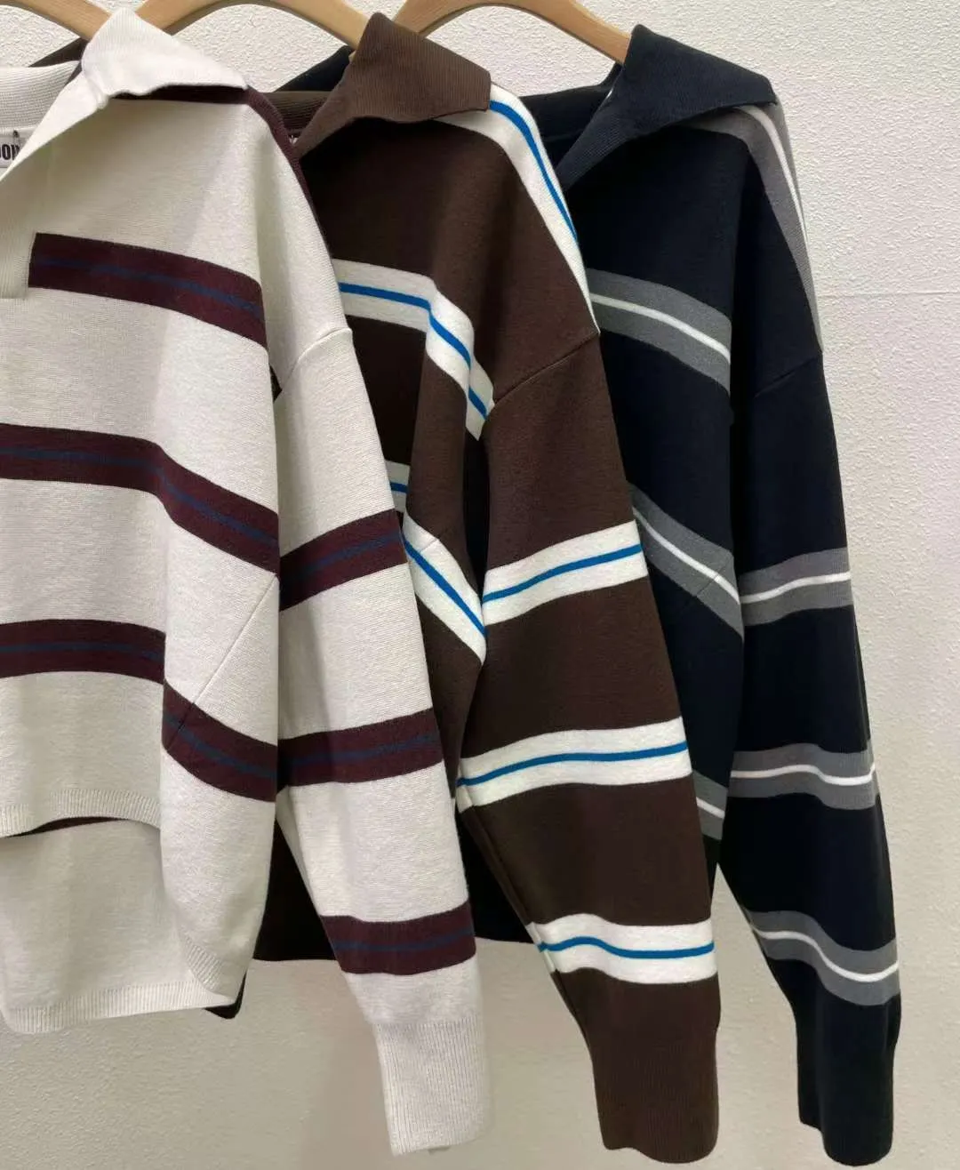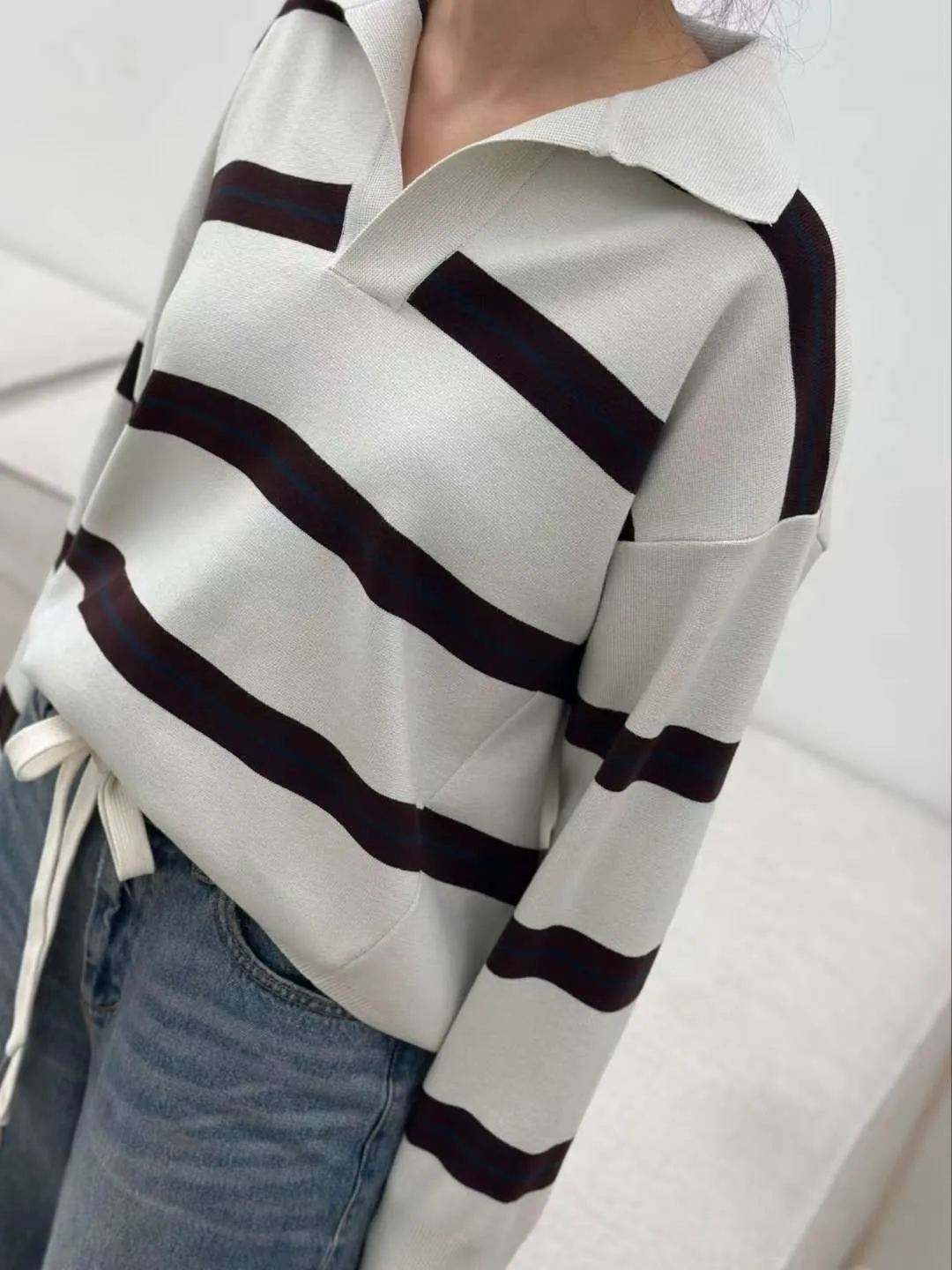 翻領橫條針織上衣🧶