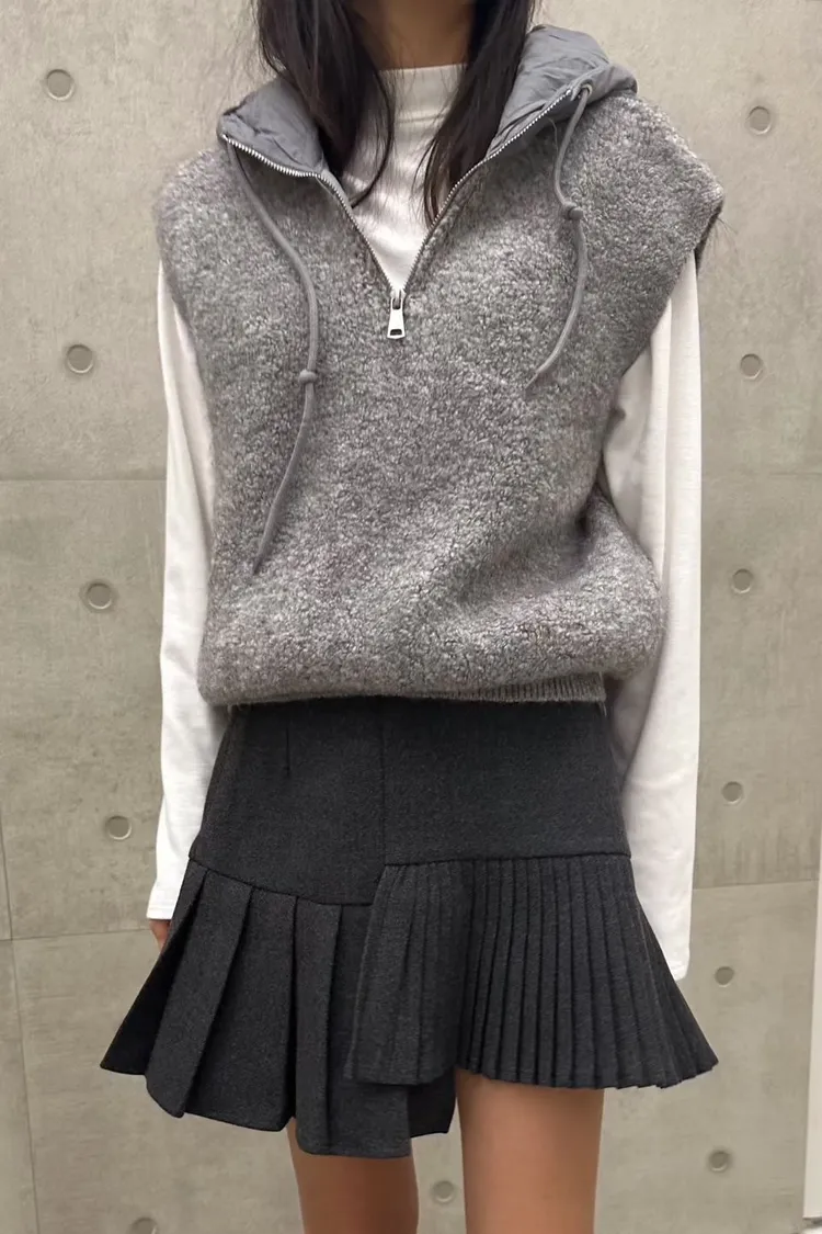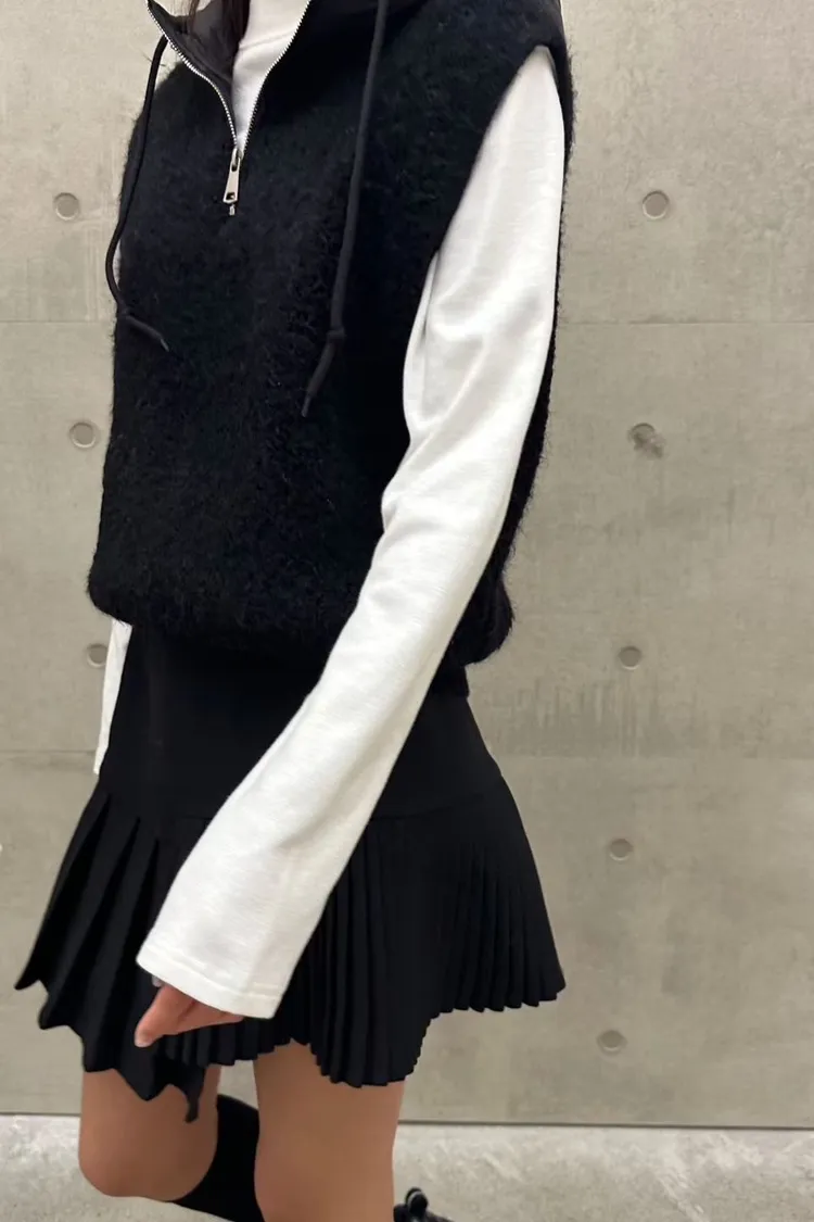 拉鍊連帽絨毛背心