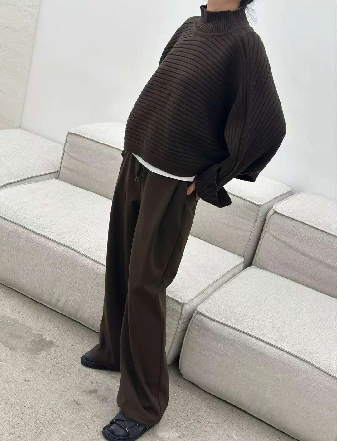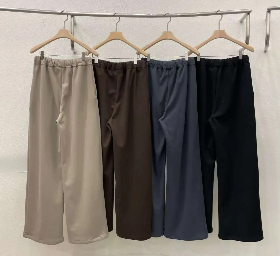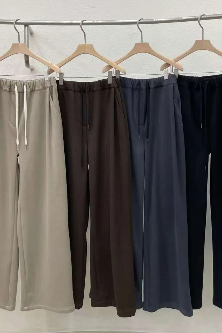 雙側口袋壓褶磨毛寬褲