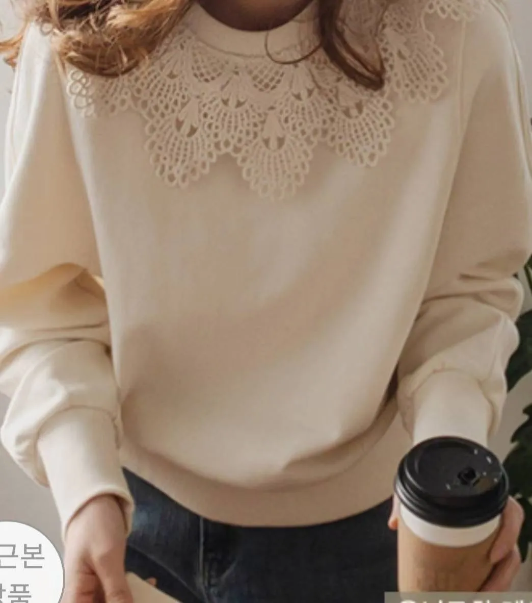 鏤空雕花蕾絲領棉衫🤩