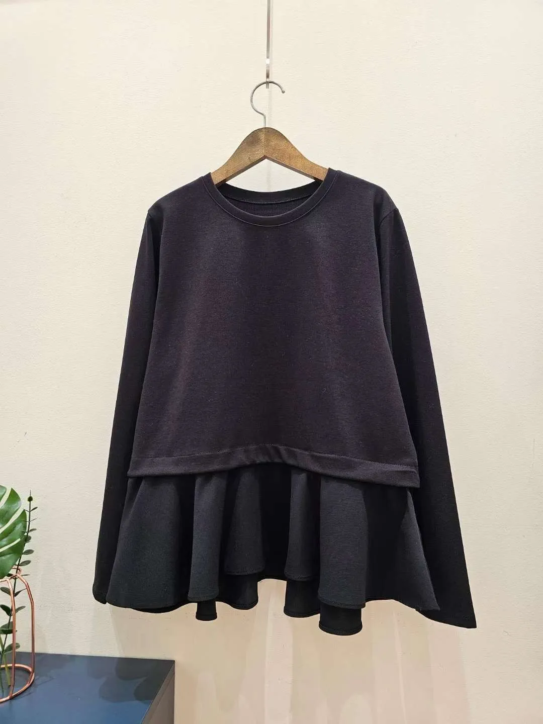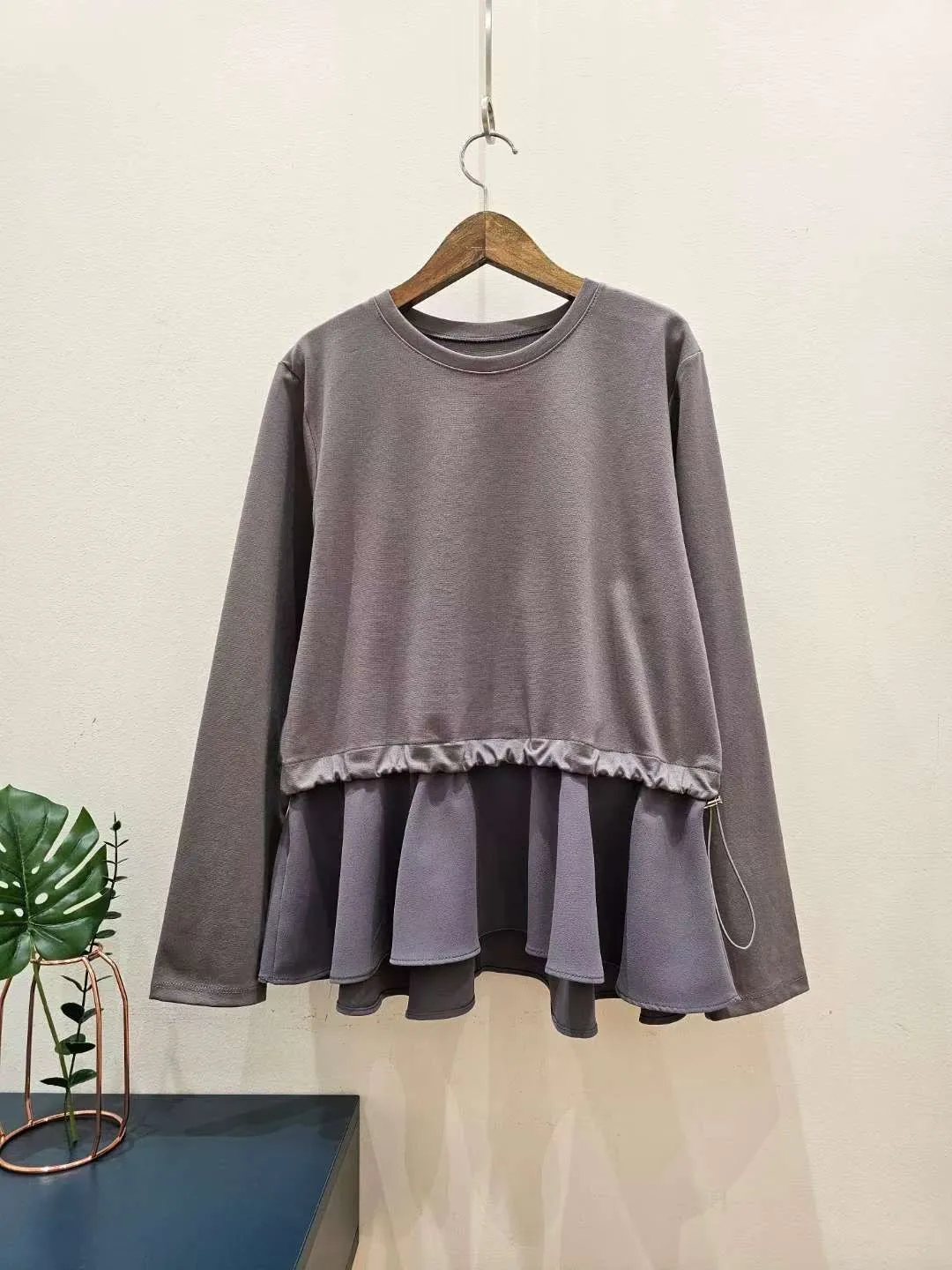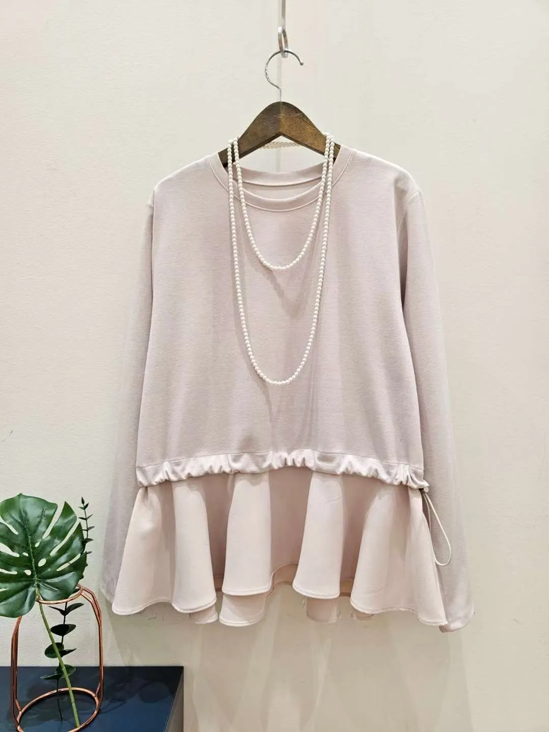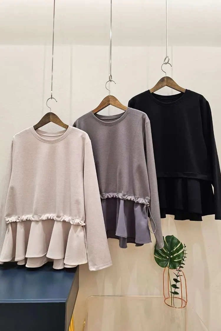 腰抽繩下擺拼接雪紡娃娃衫❤️