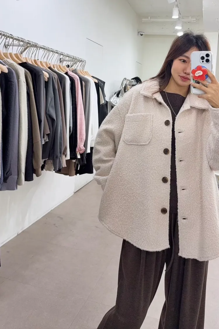 毛絨排扣外套
