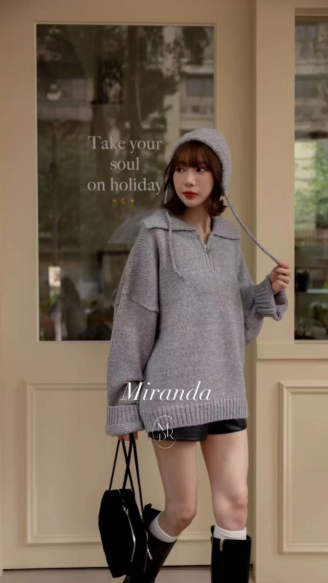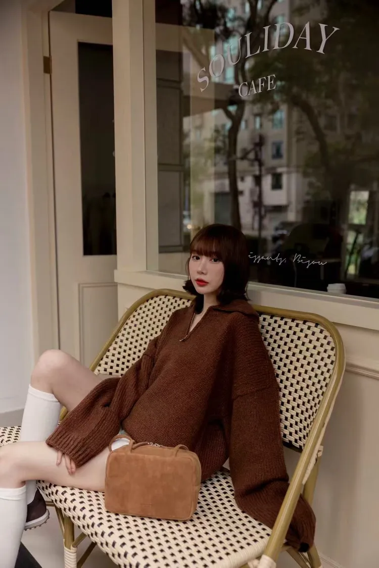🧶翻領半拉鍊羊毛針織上衣🦙