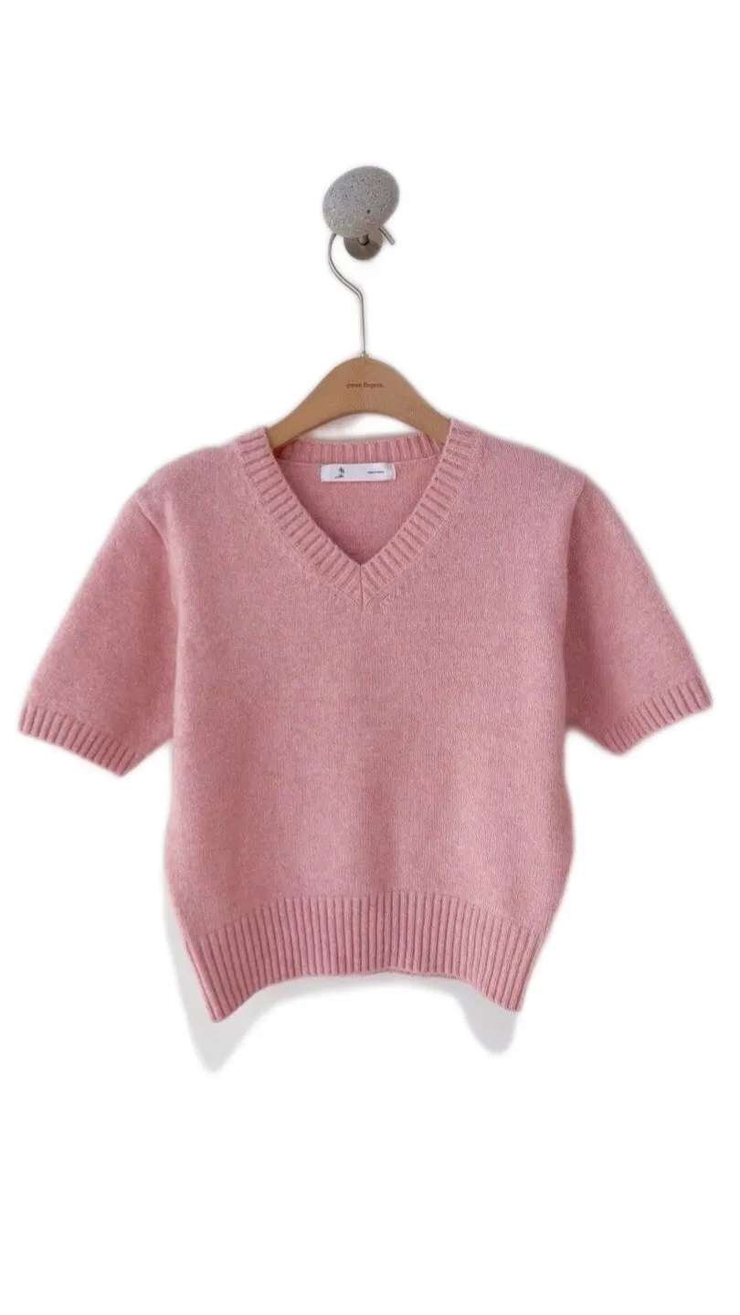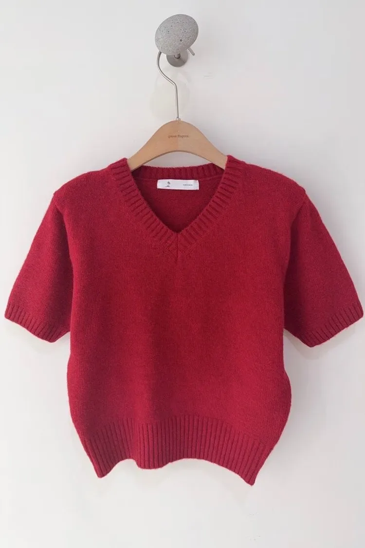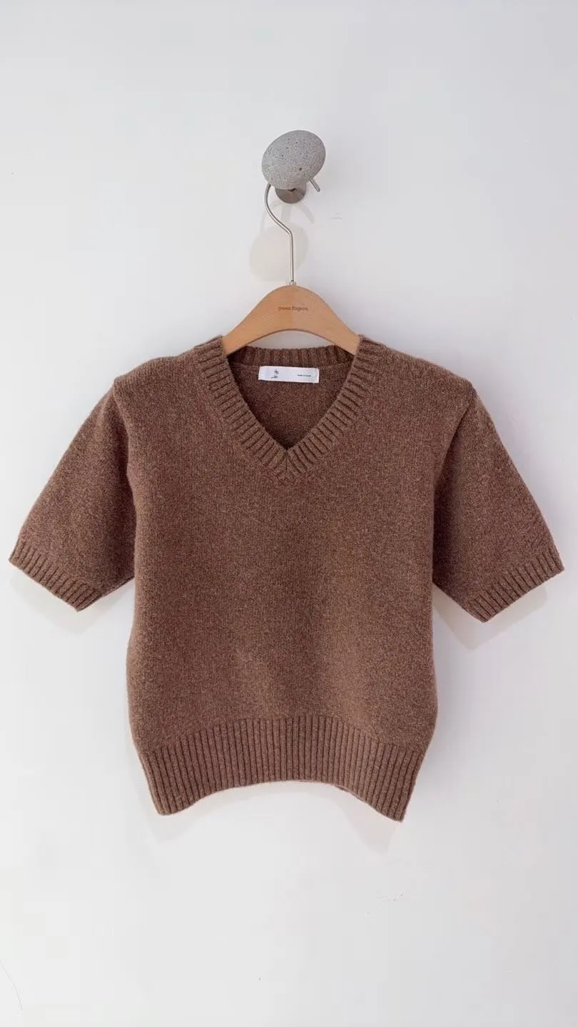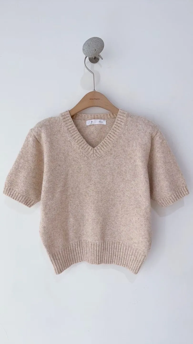 V領混羊毛針織短袖衫🔥