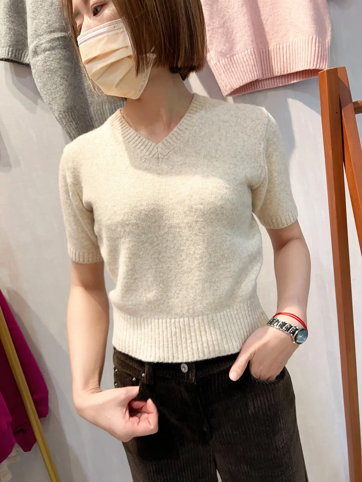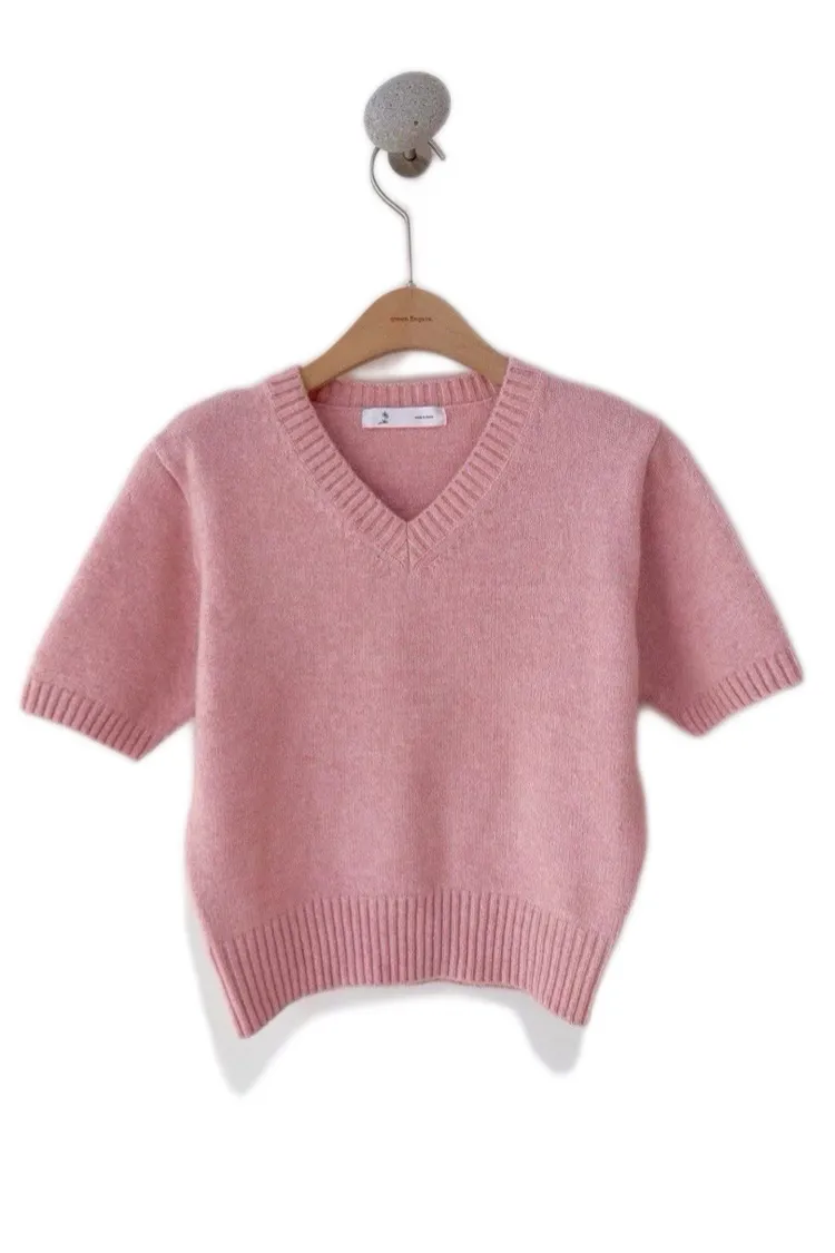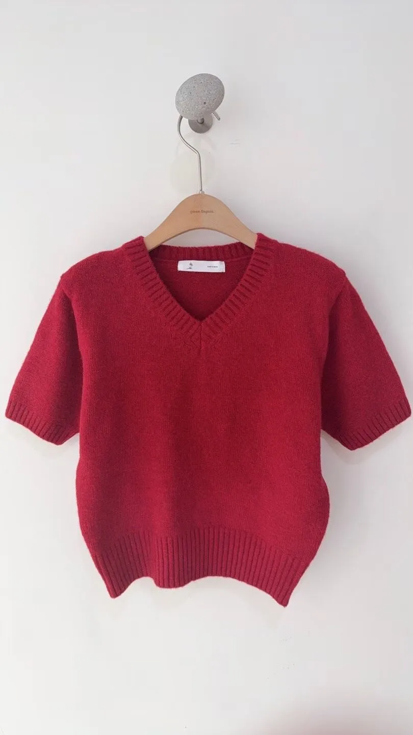 V領混羊毛針織短袖衫🔥