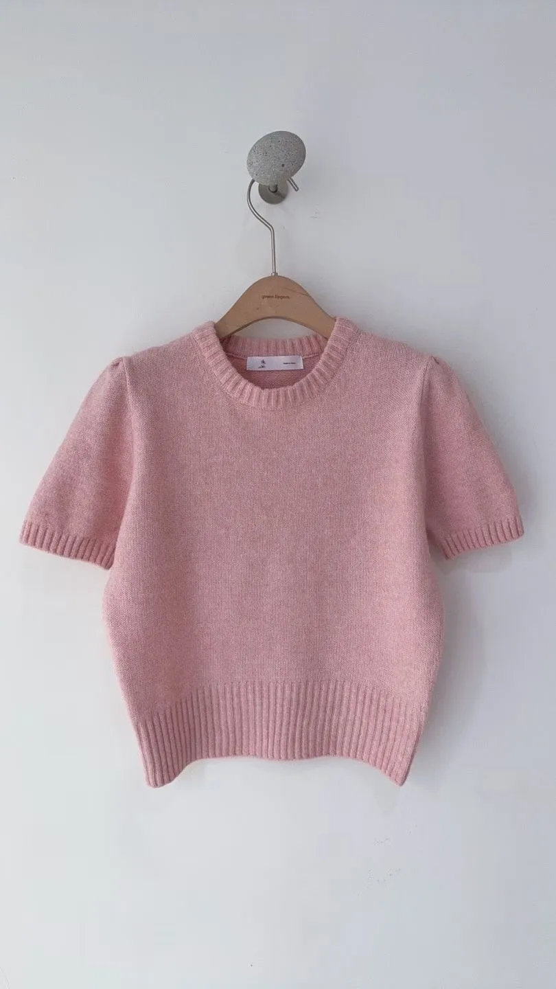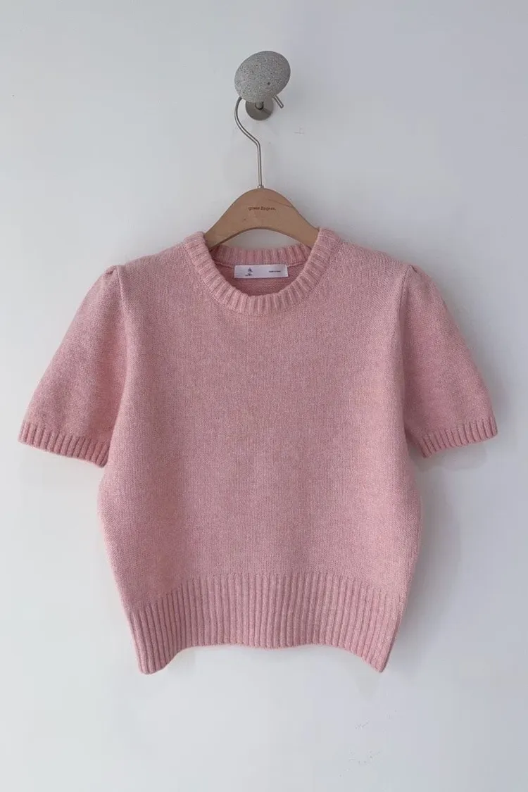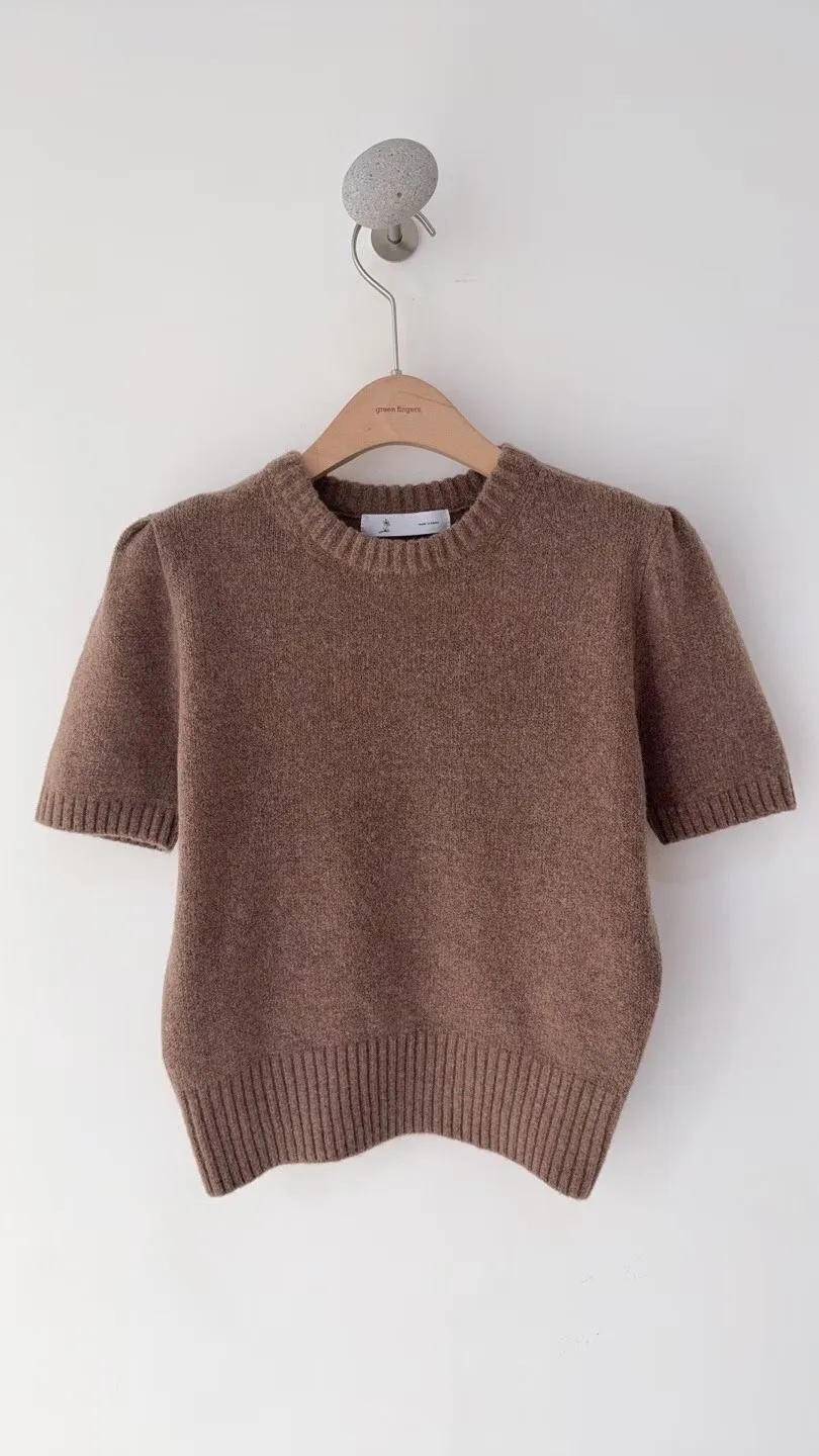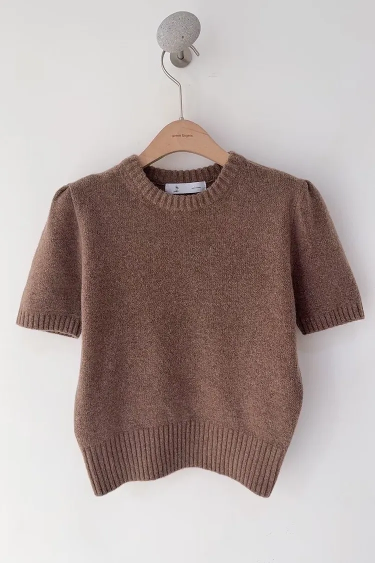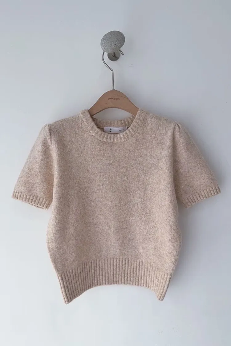 圓領混羊毛針織短袖衫