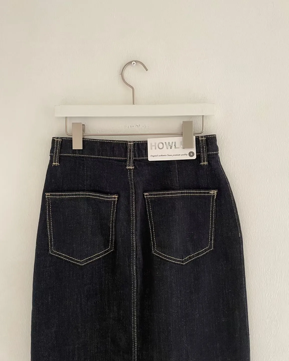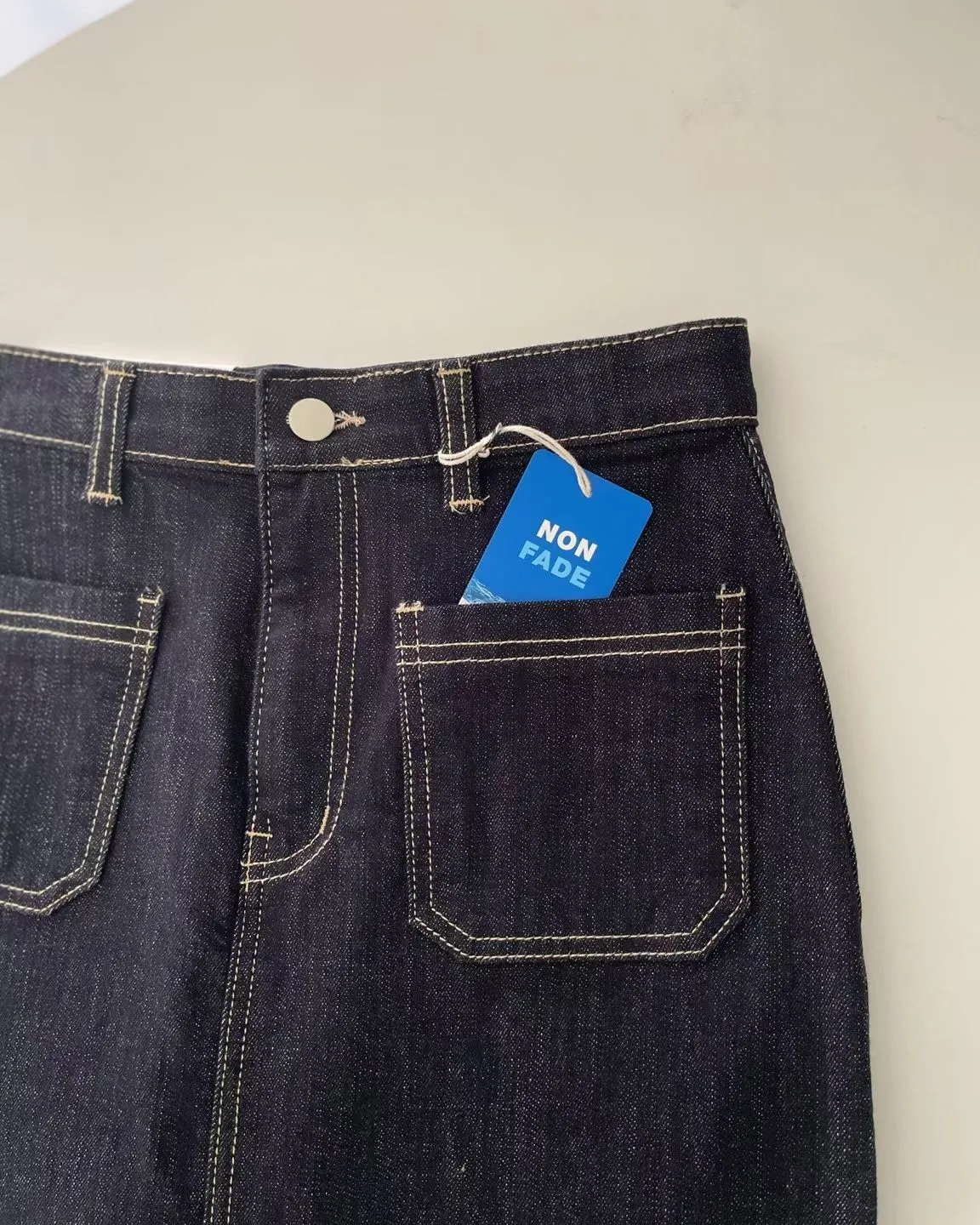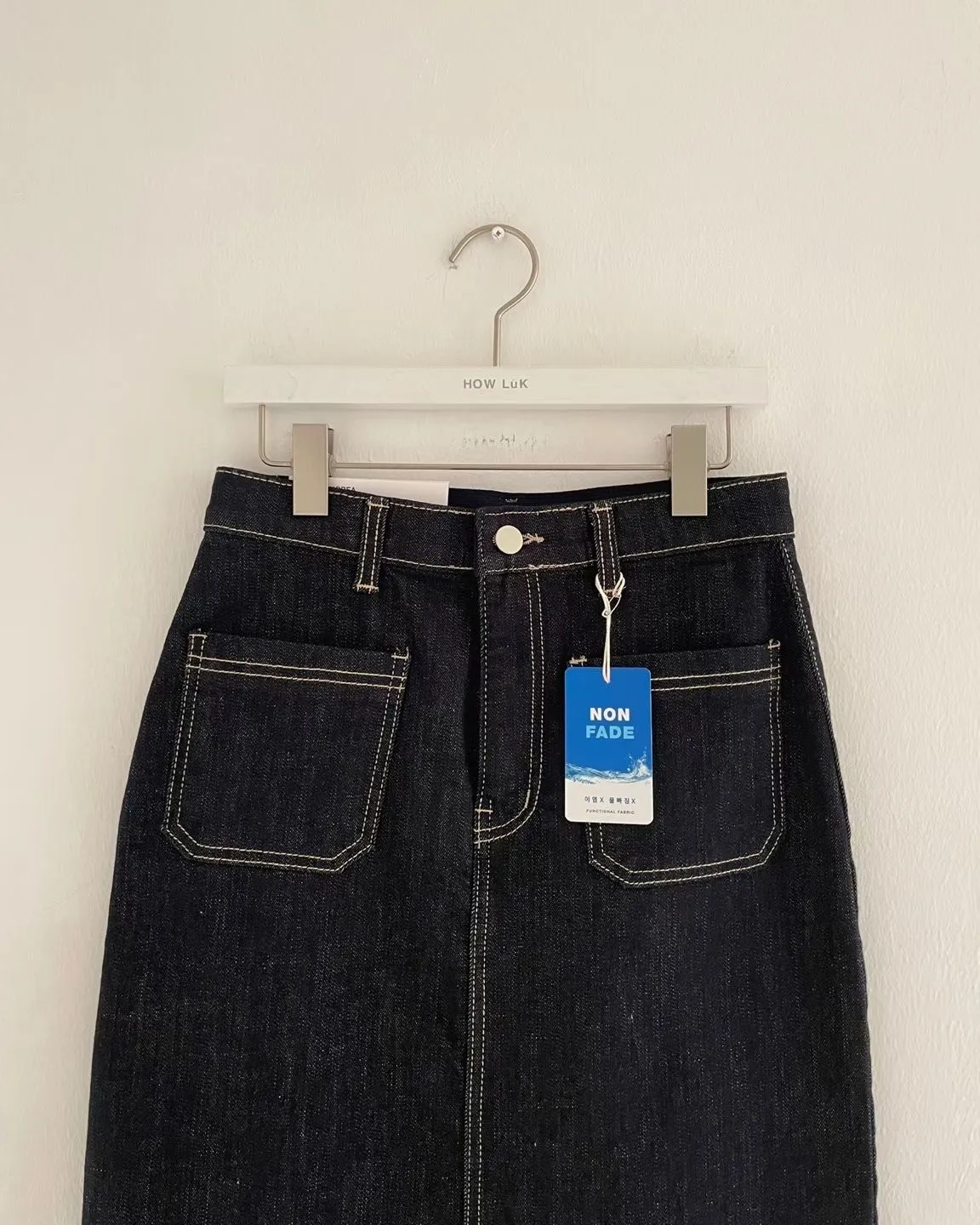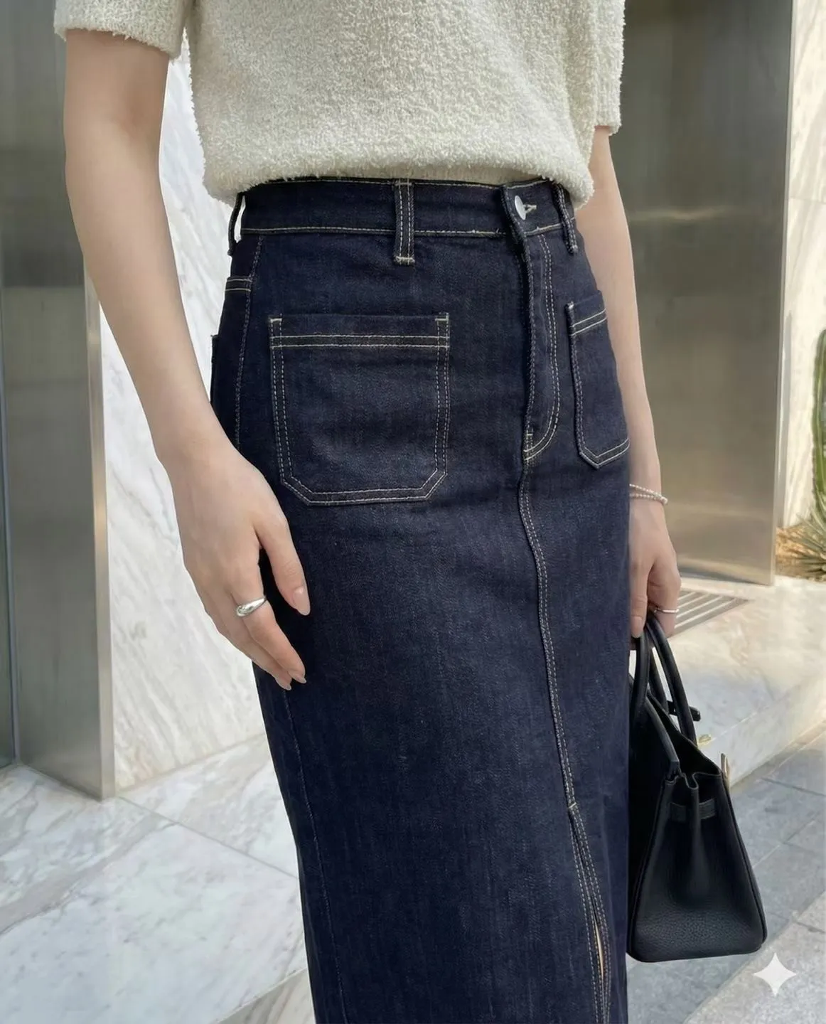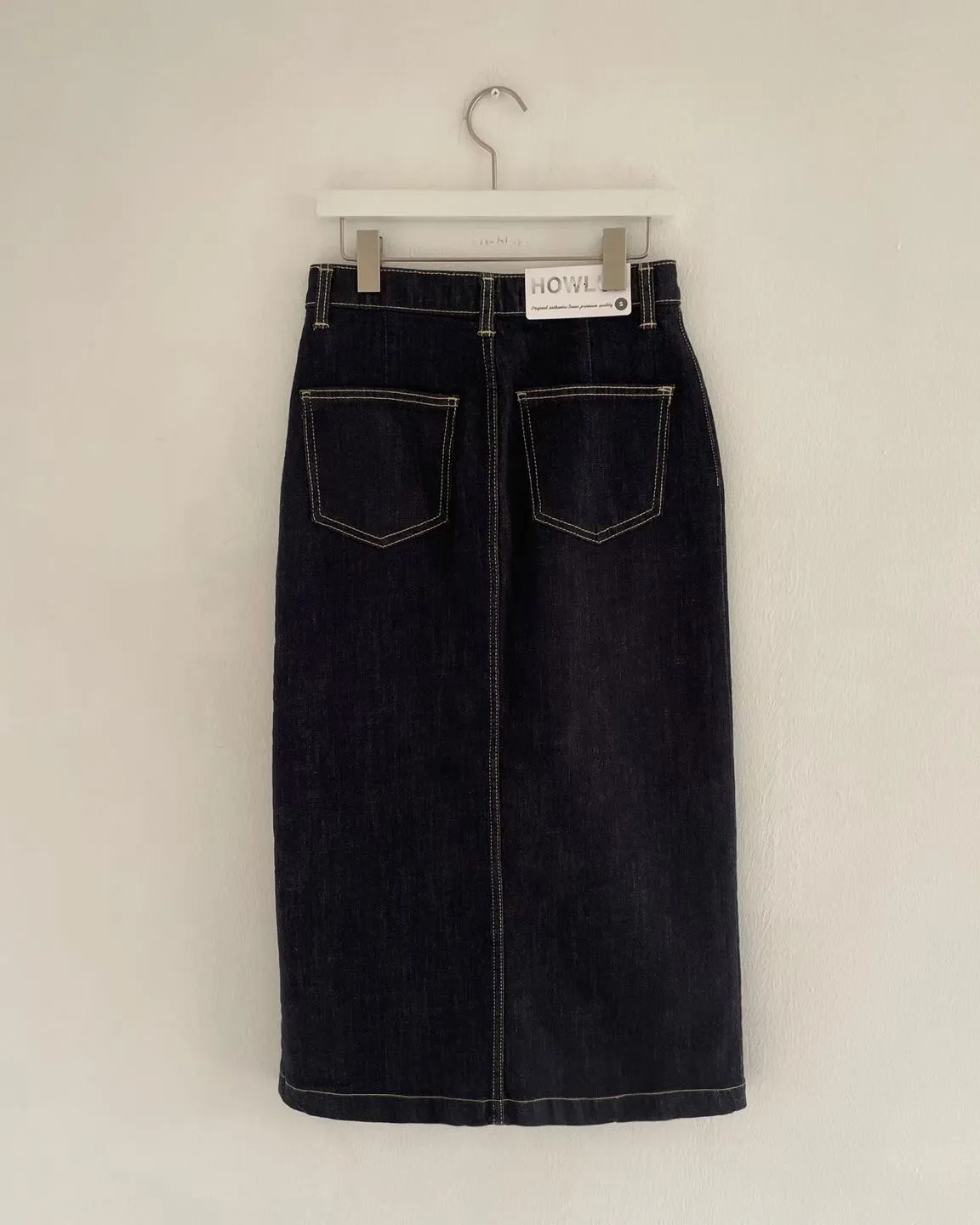 方形口袋車線前開杈牛仔裙