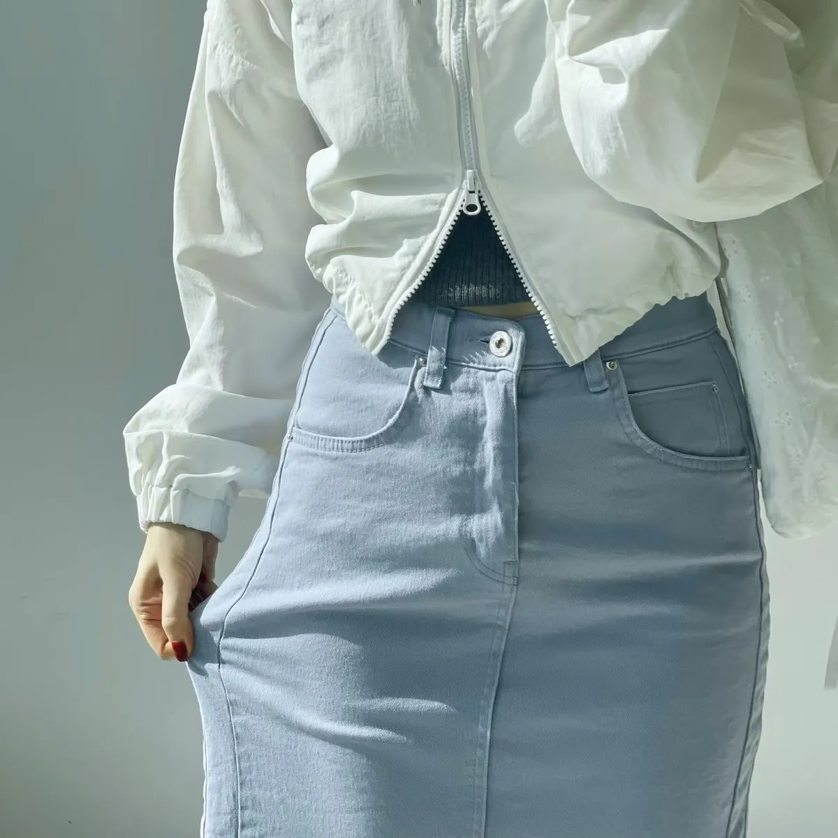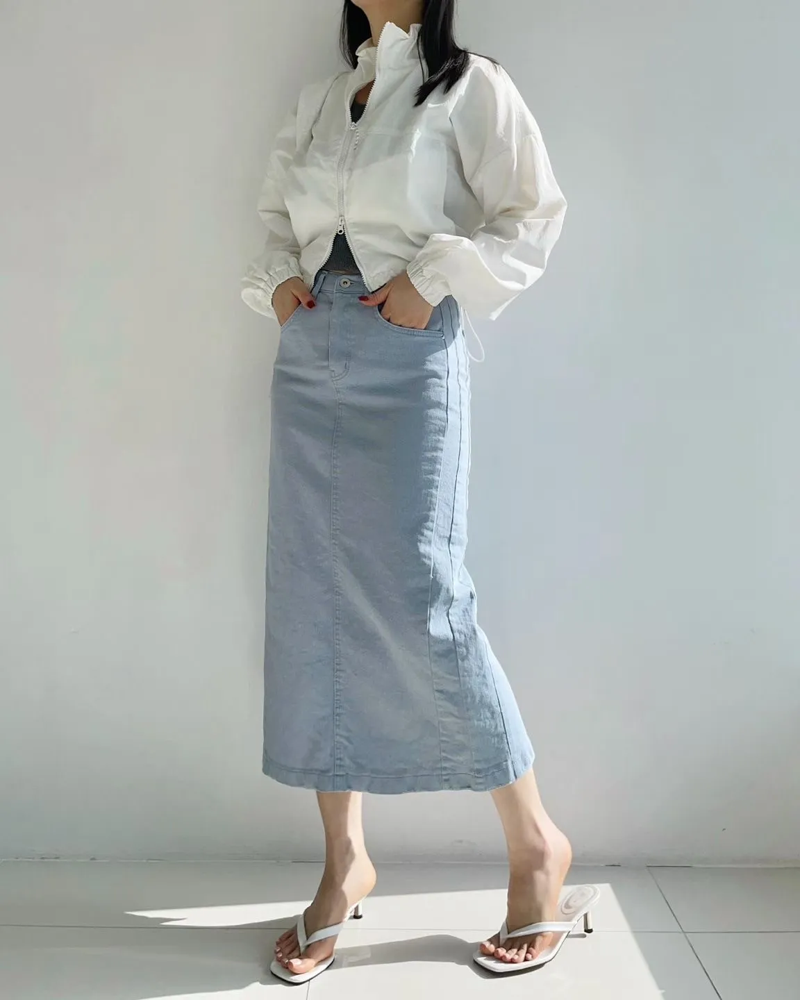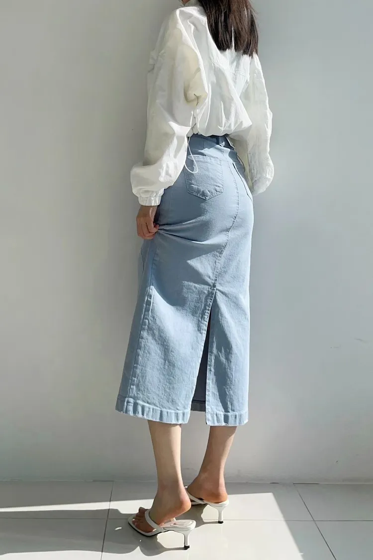 雙側車線後開杈半身裙✨