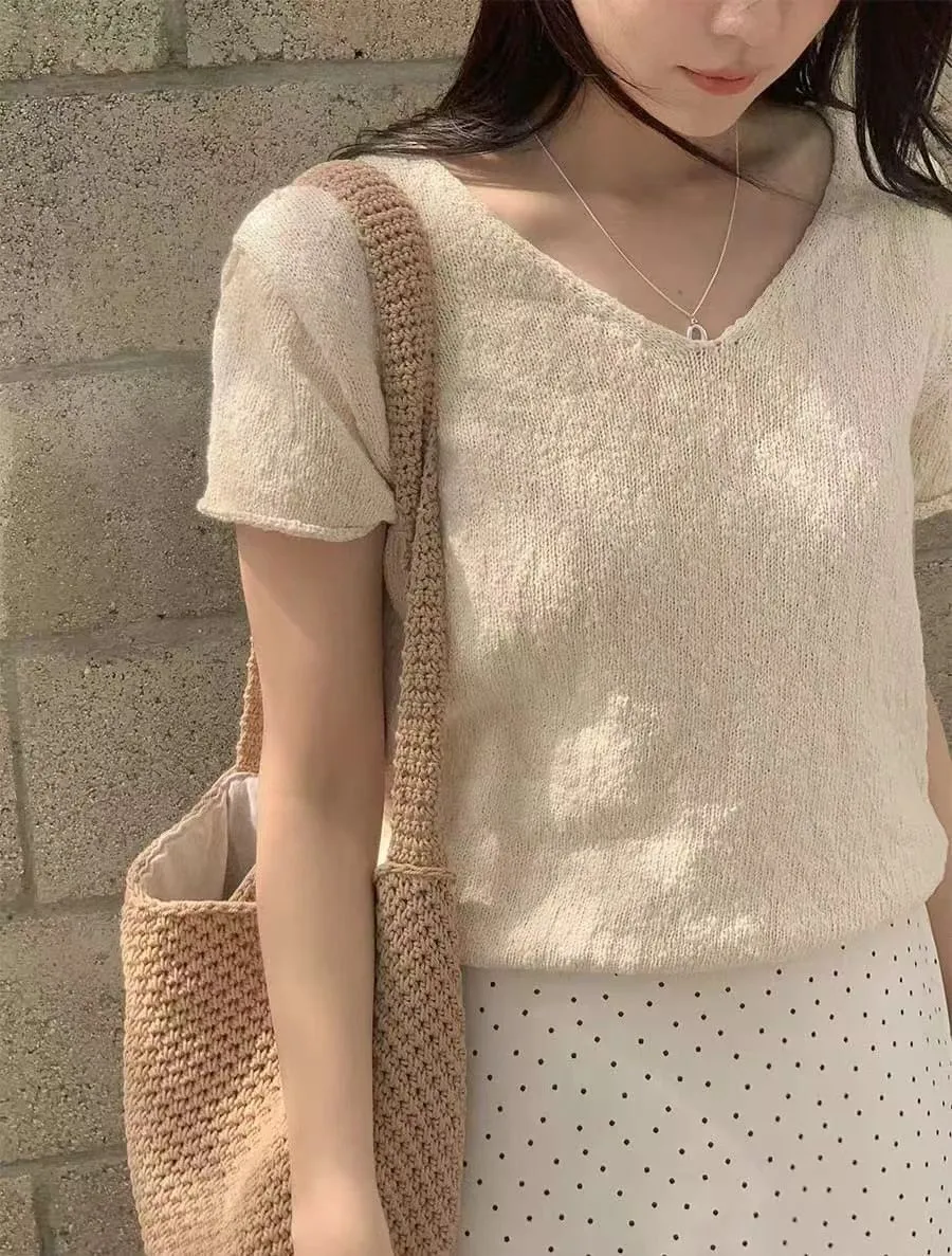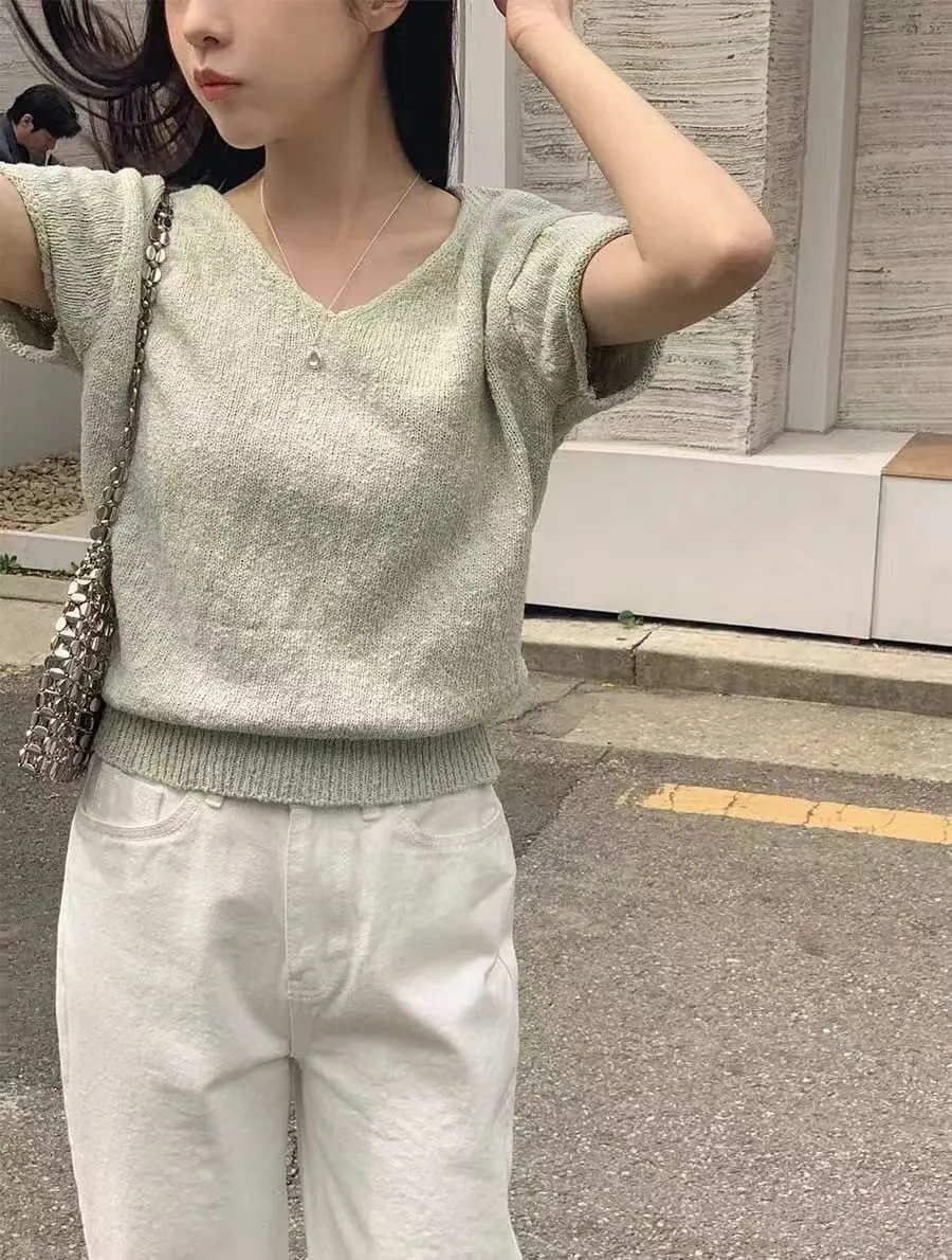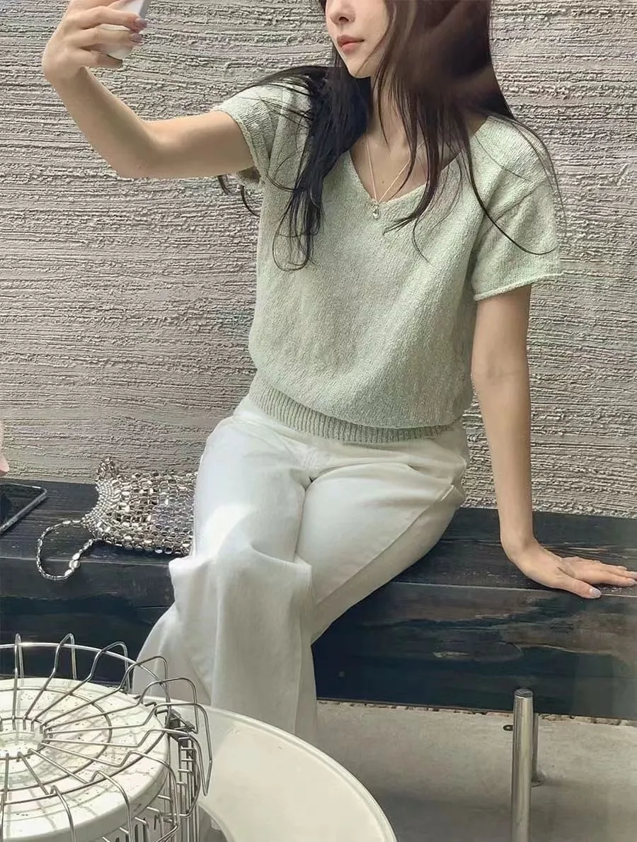 V領針織短袖衫💥