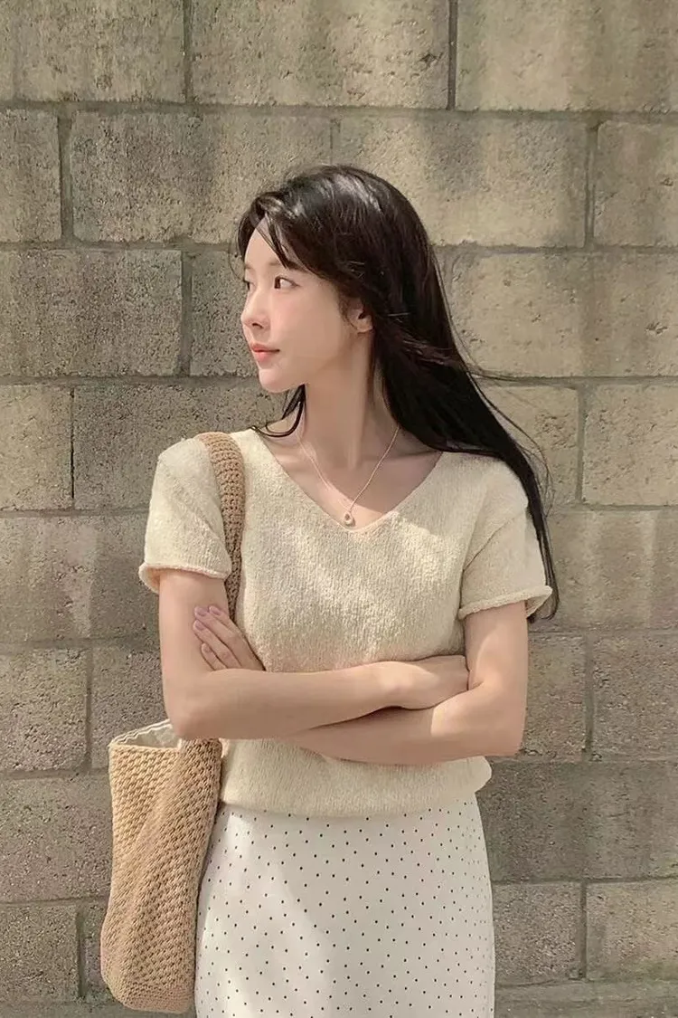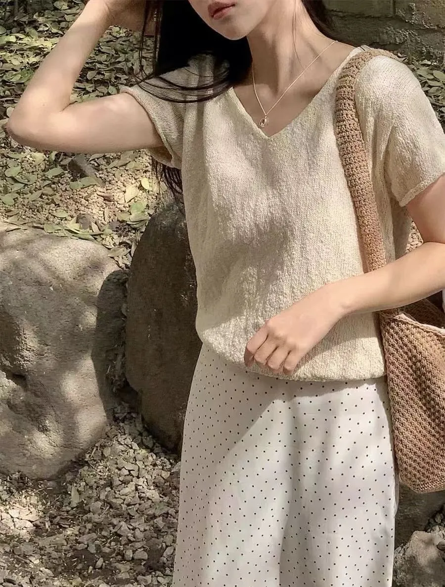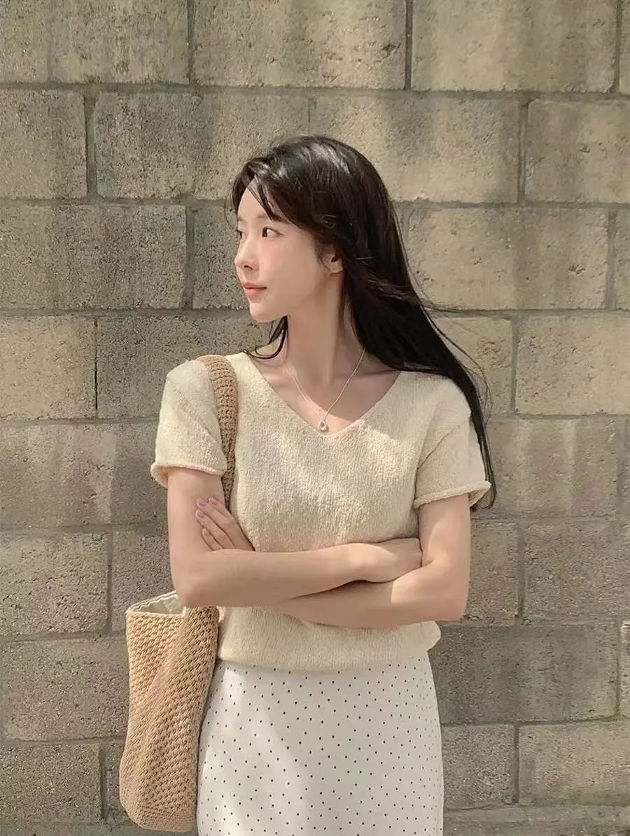V領針織短袖衫💥