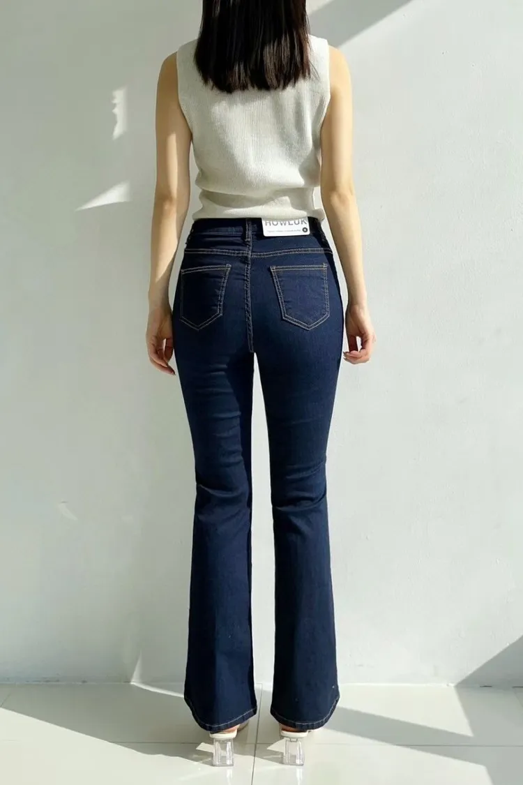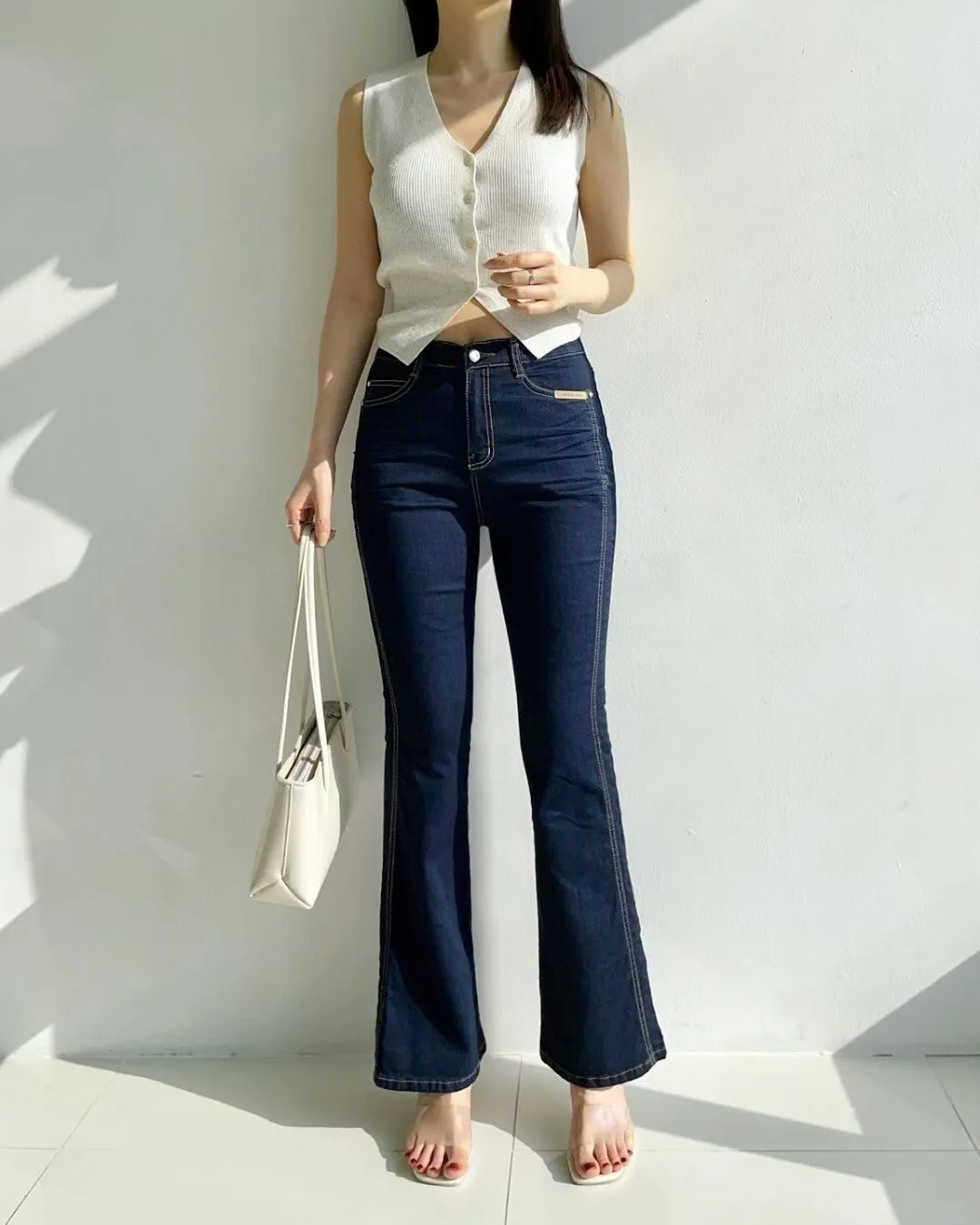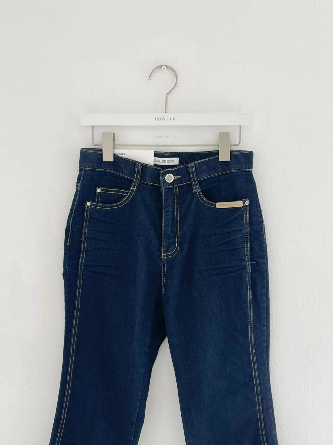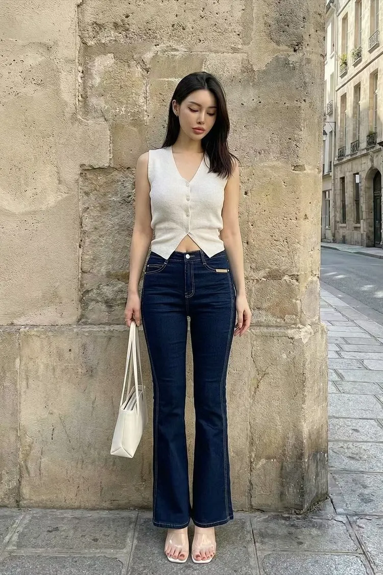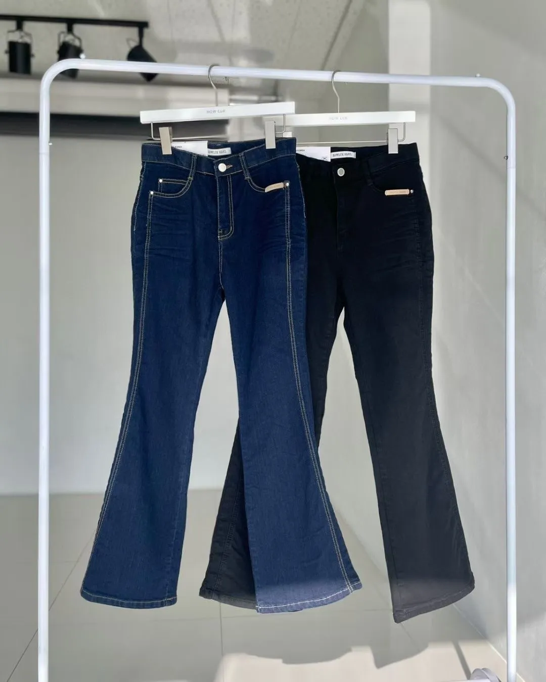 拼接車線牛仔喇叭褲