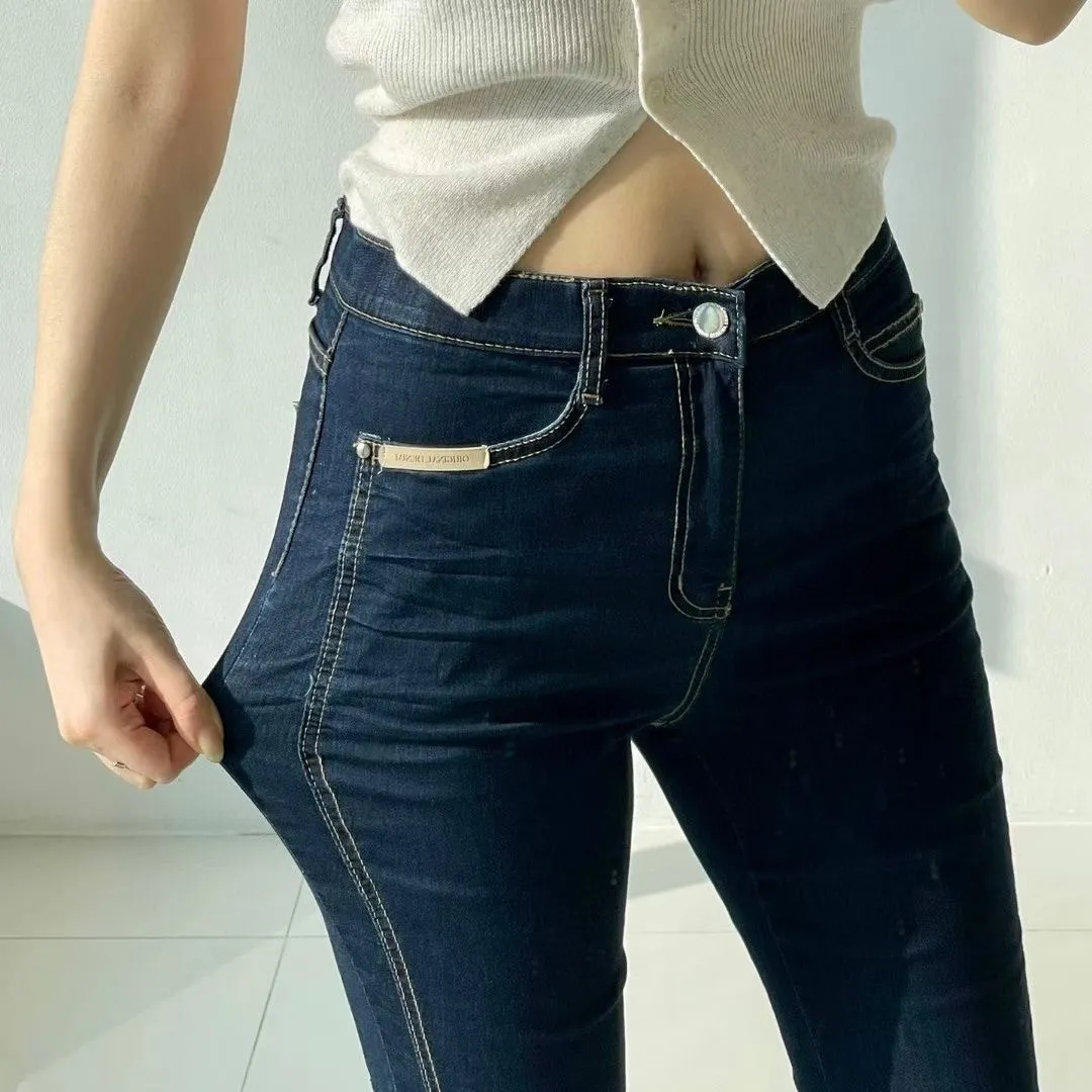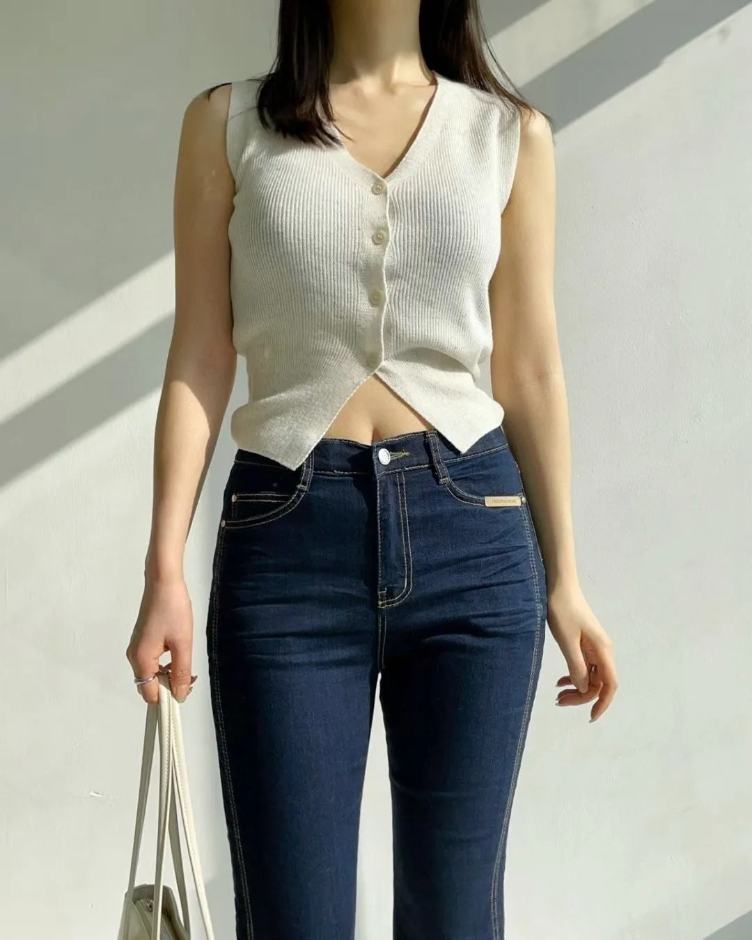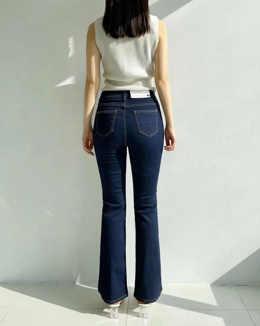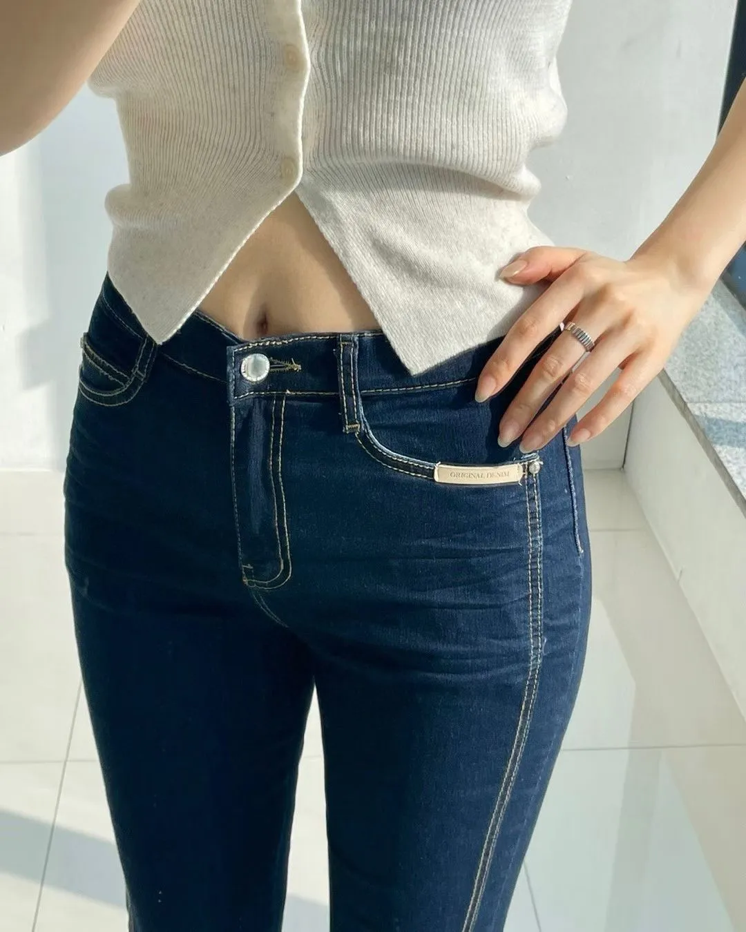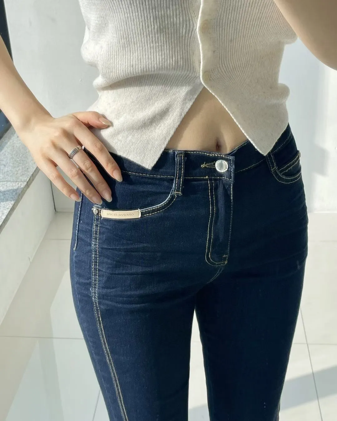 拼接車線牛仔喇叭褲