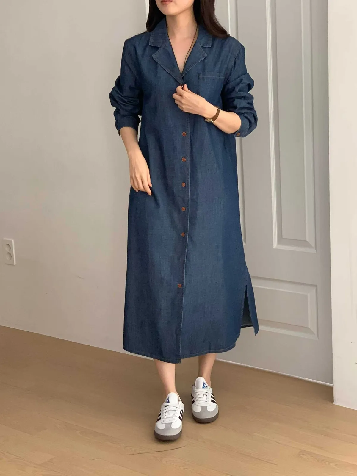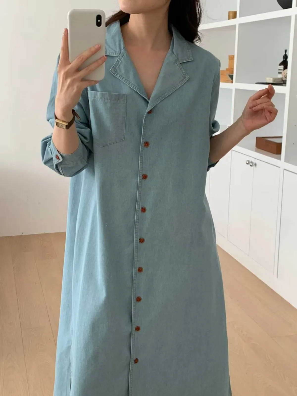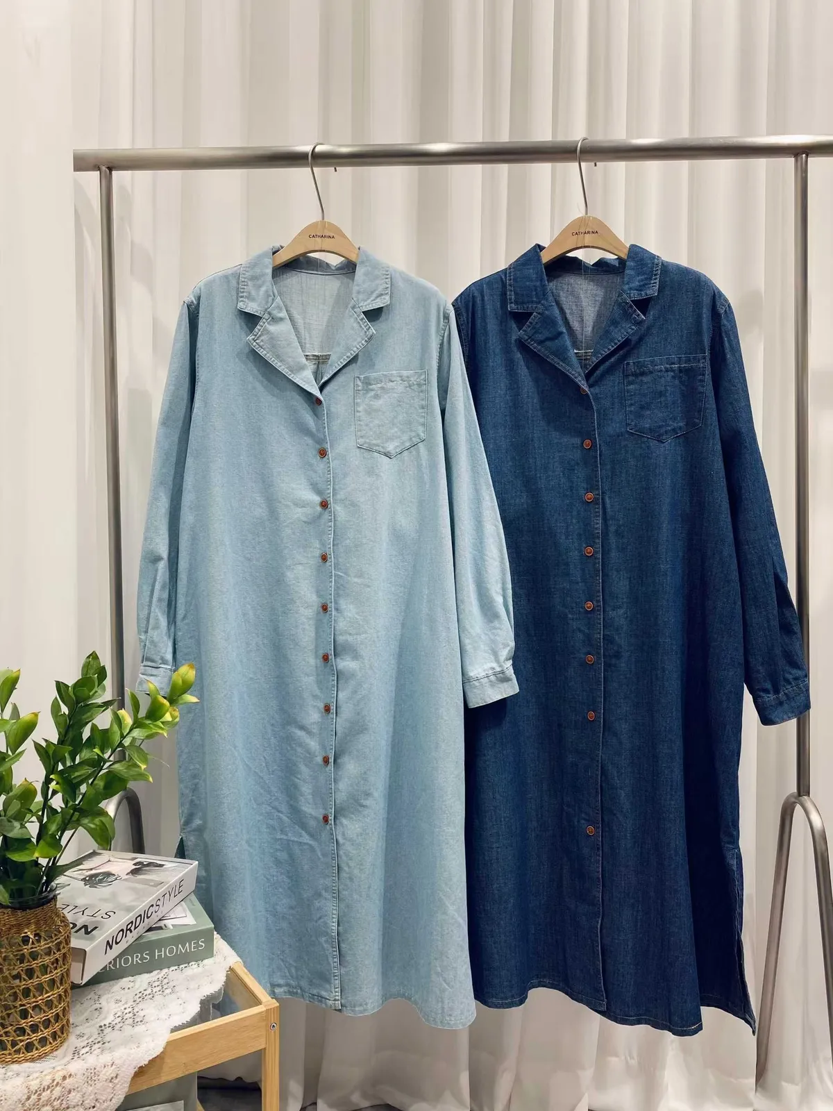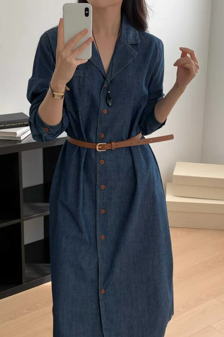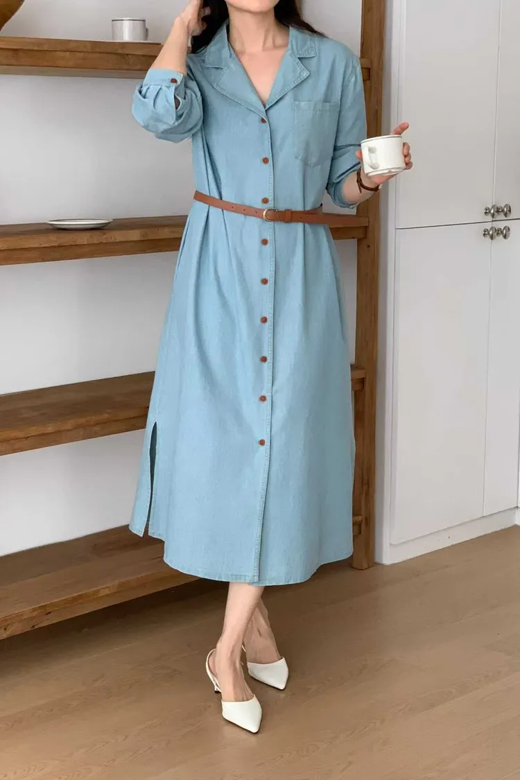 排扣牛仔連身洋裝👗