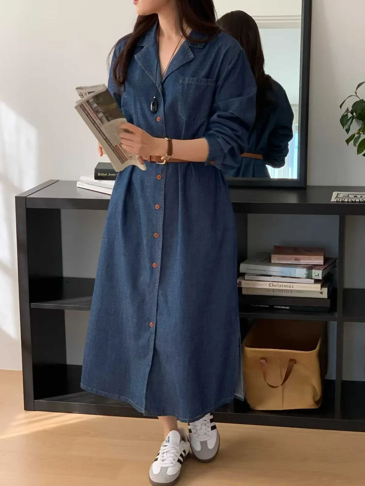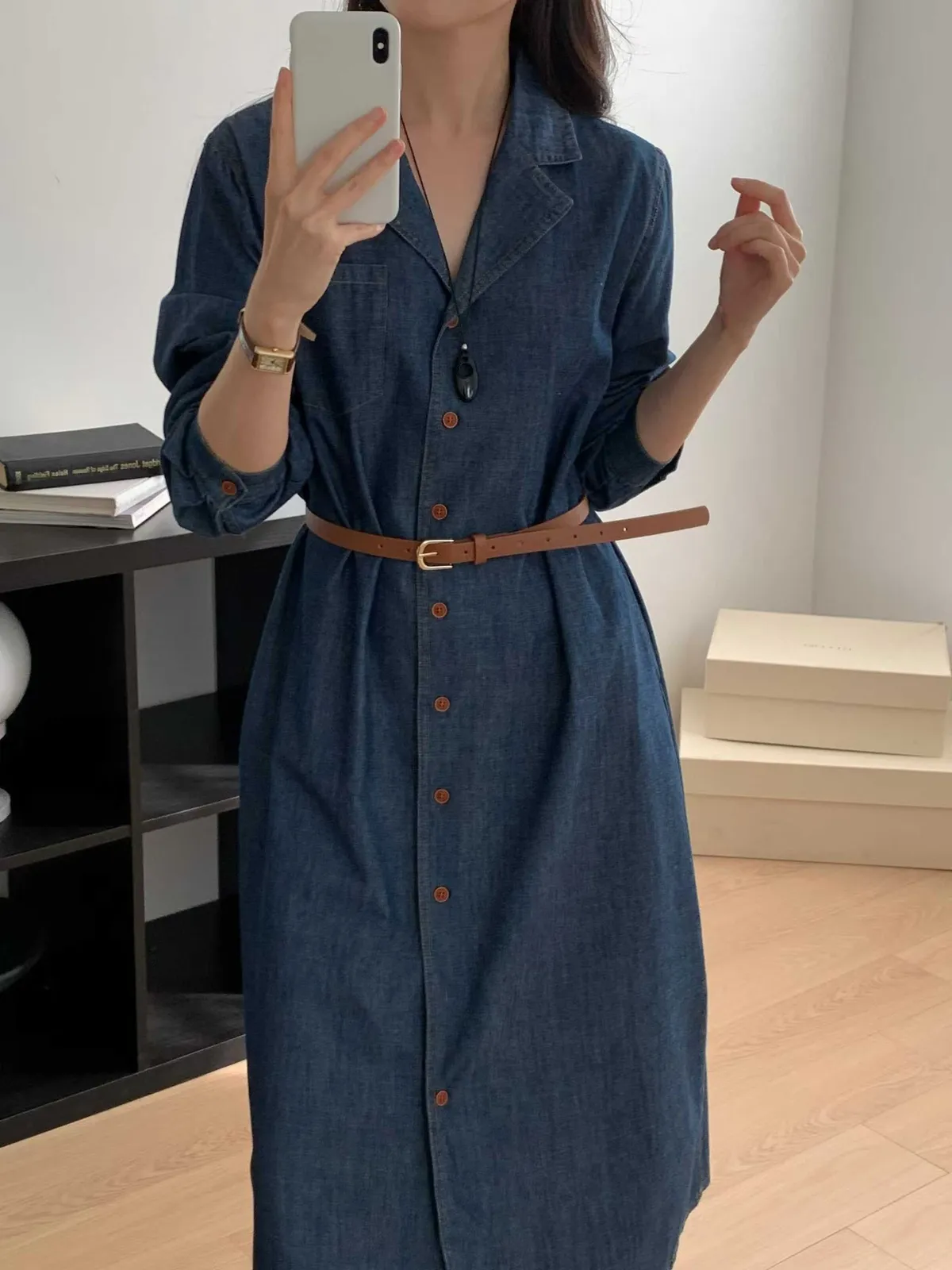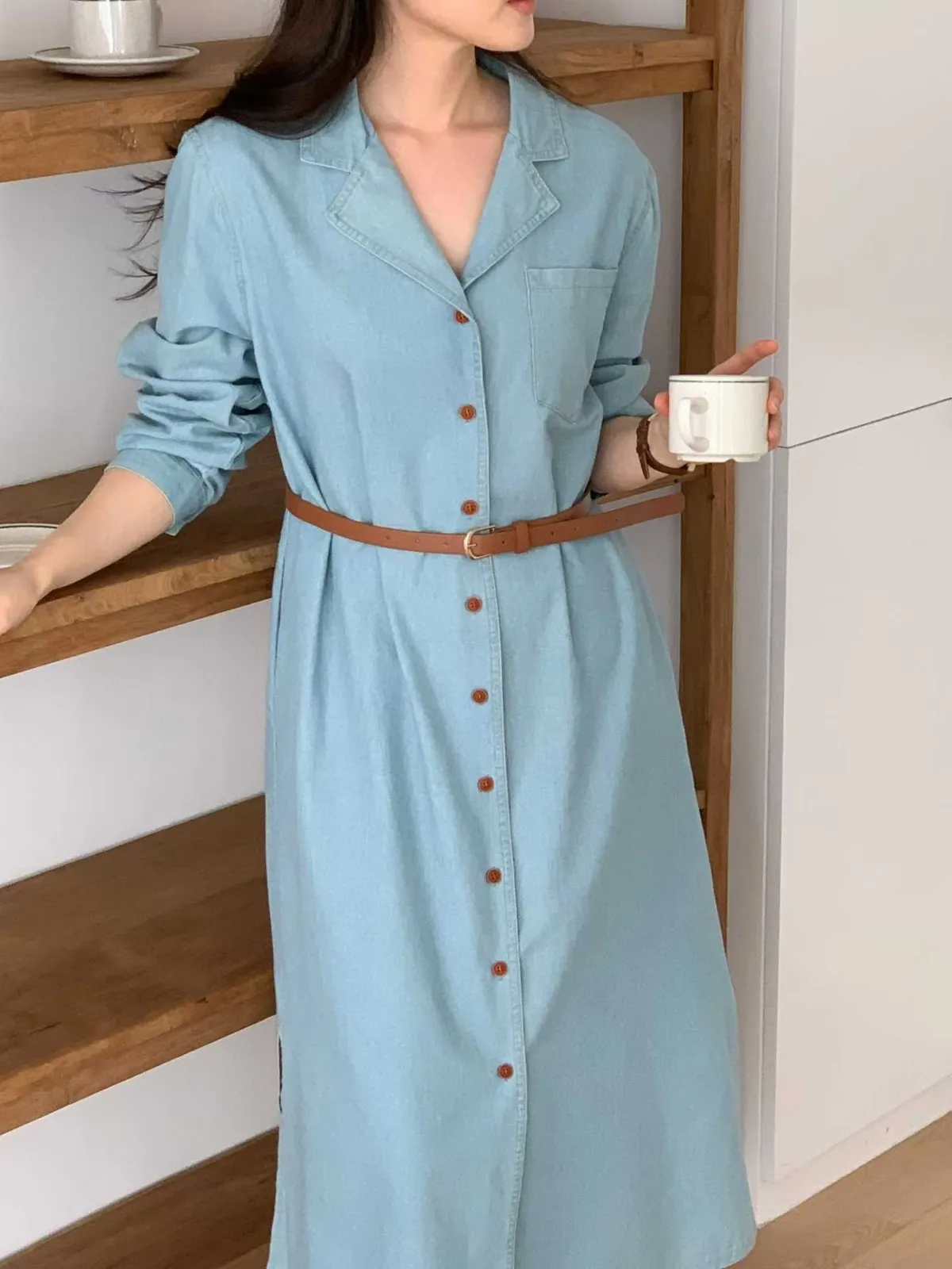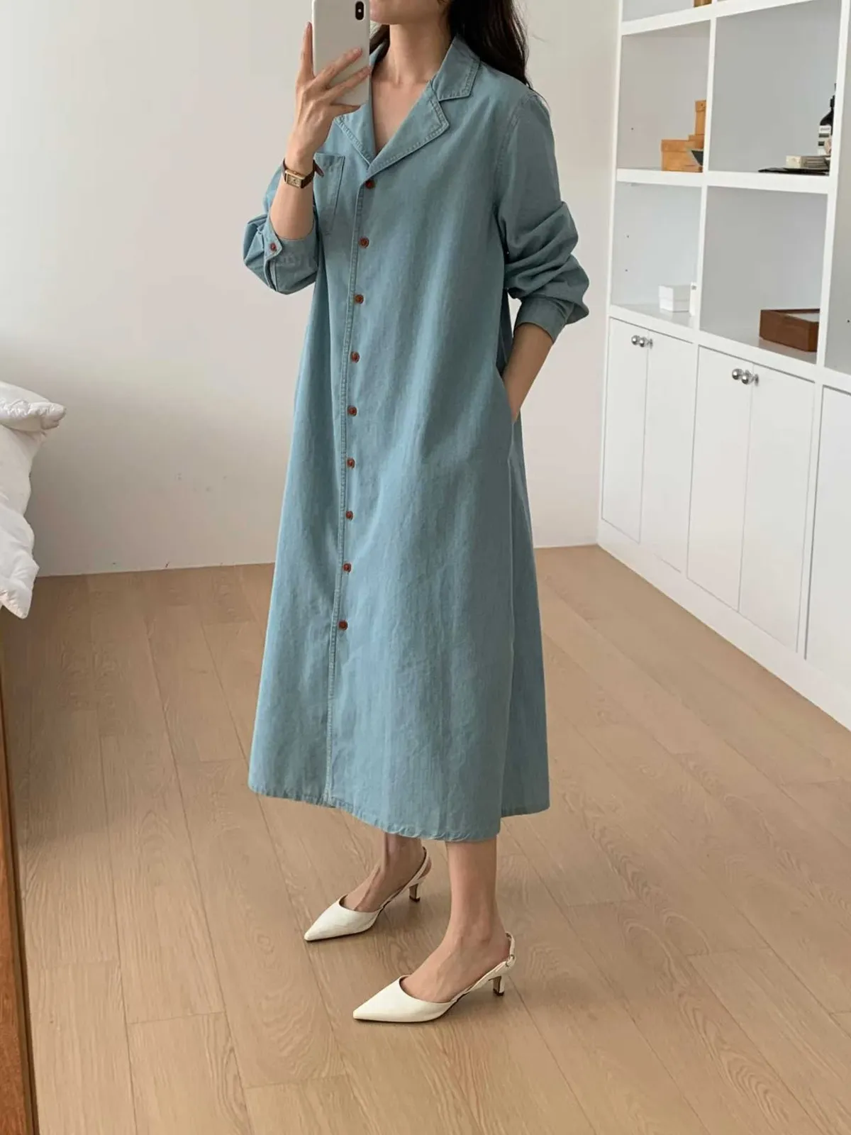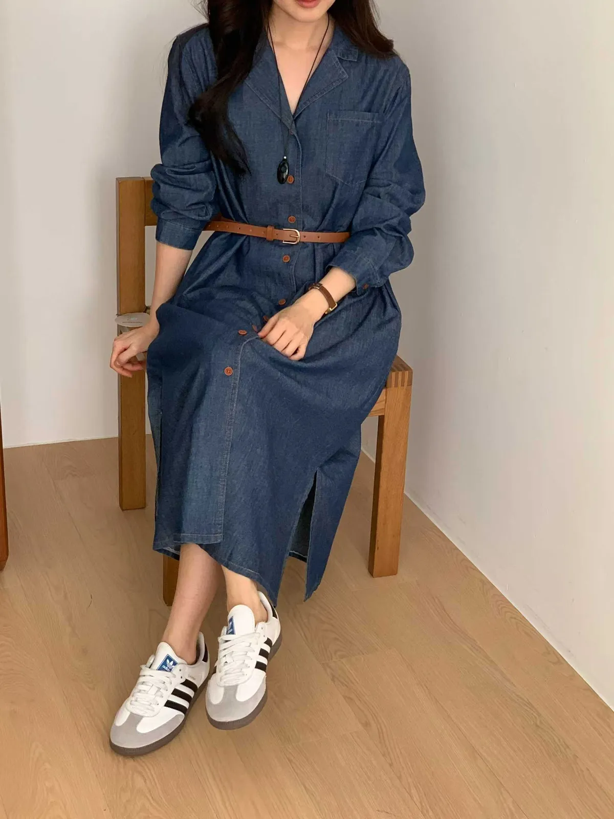 排扣牛仔連身洋裝👗