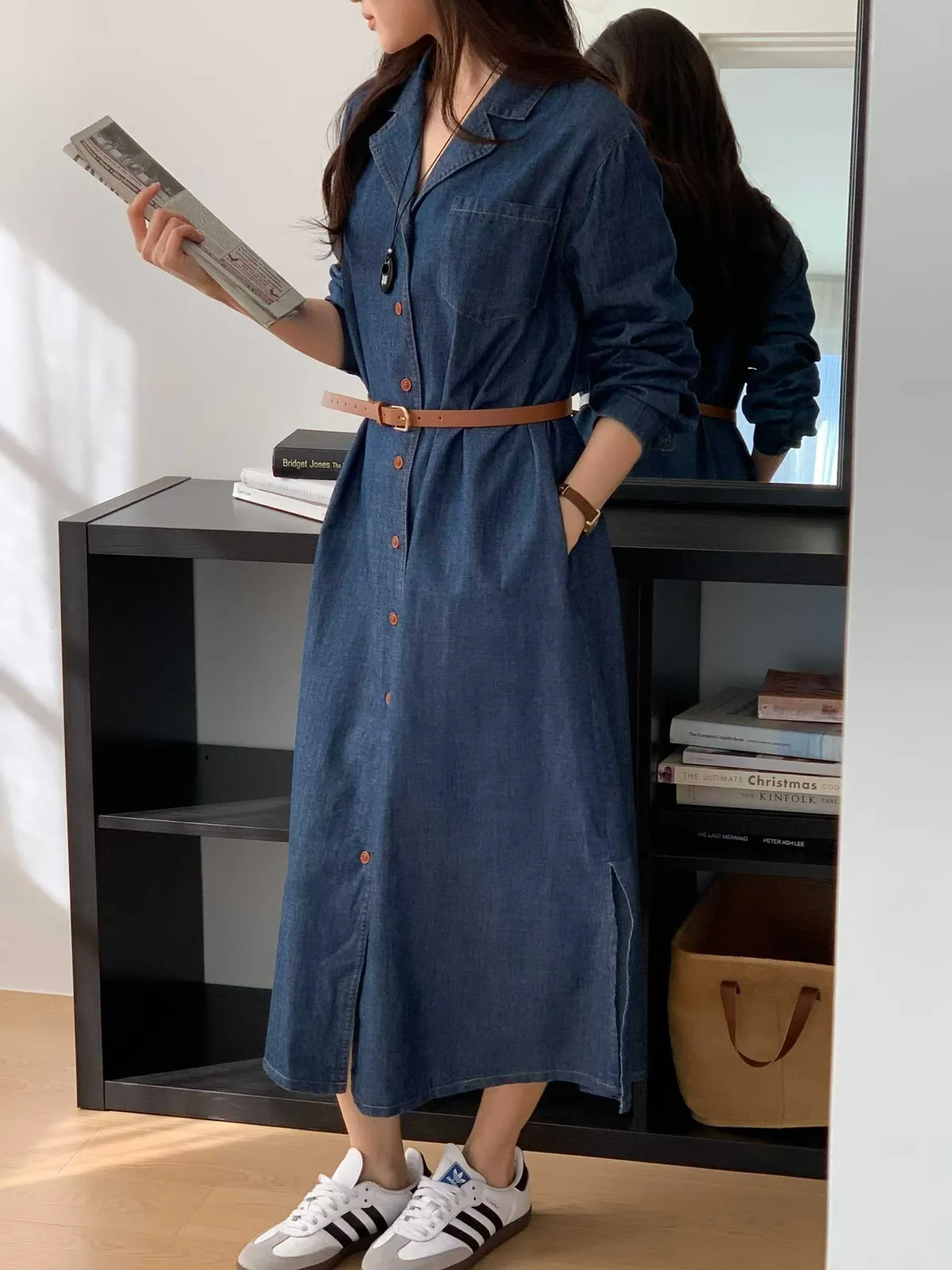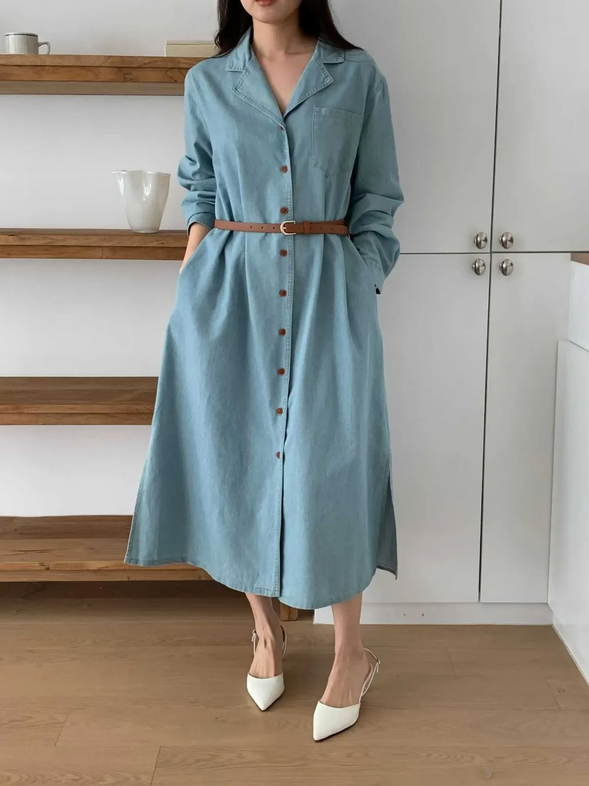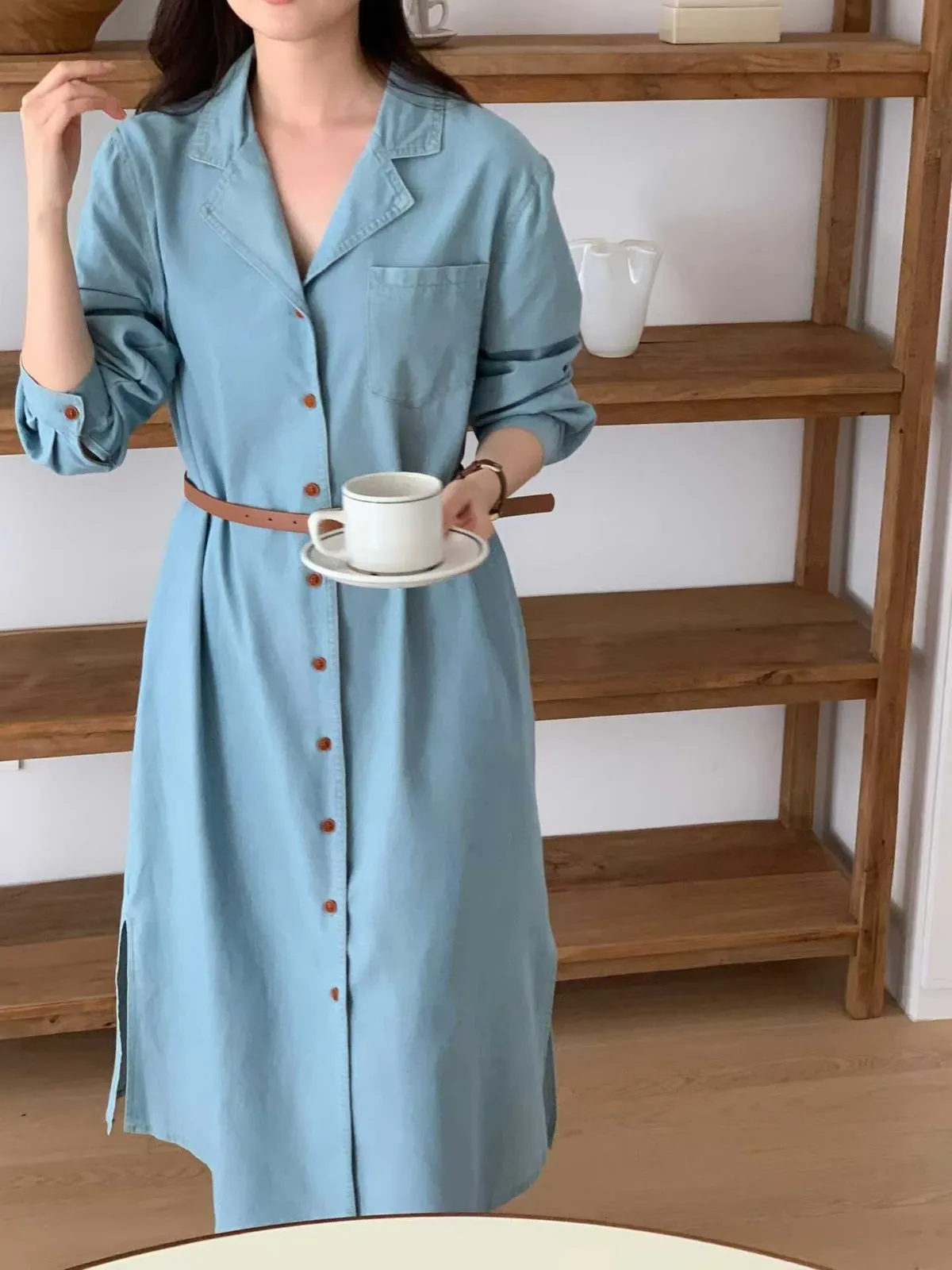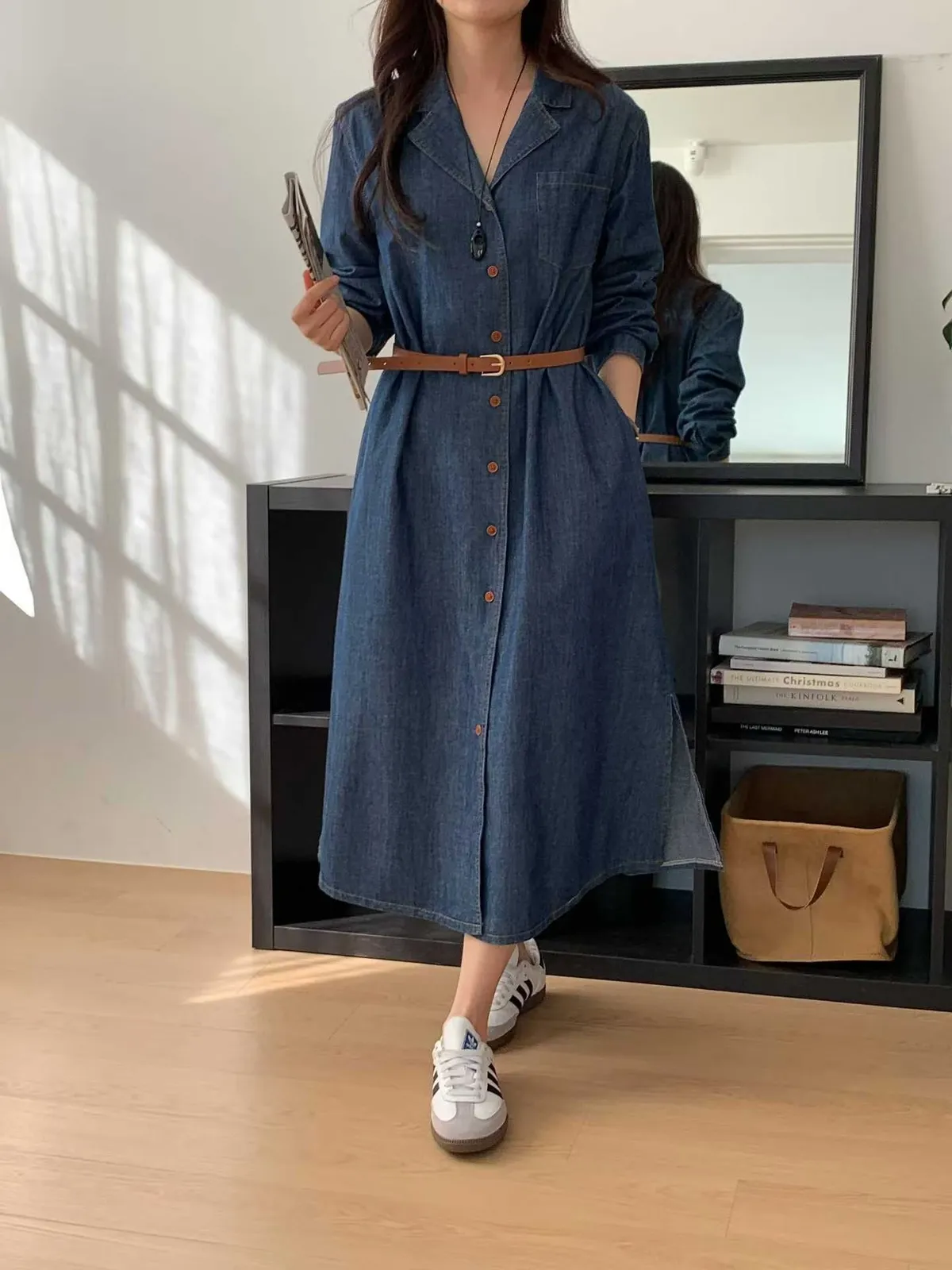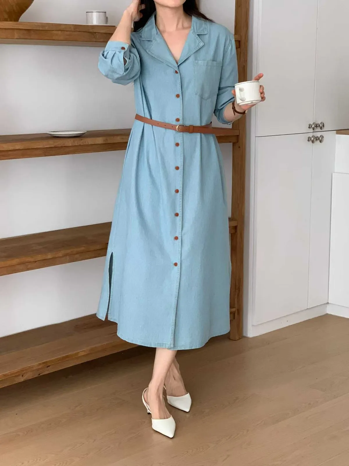 排扣牛仔連身洋裝👗