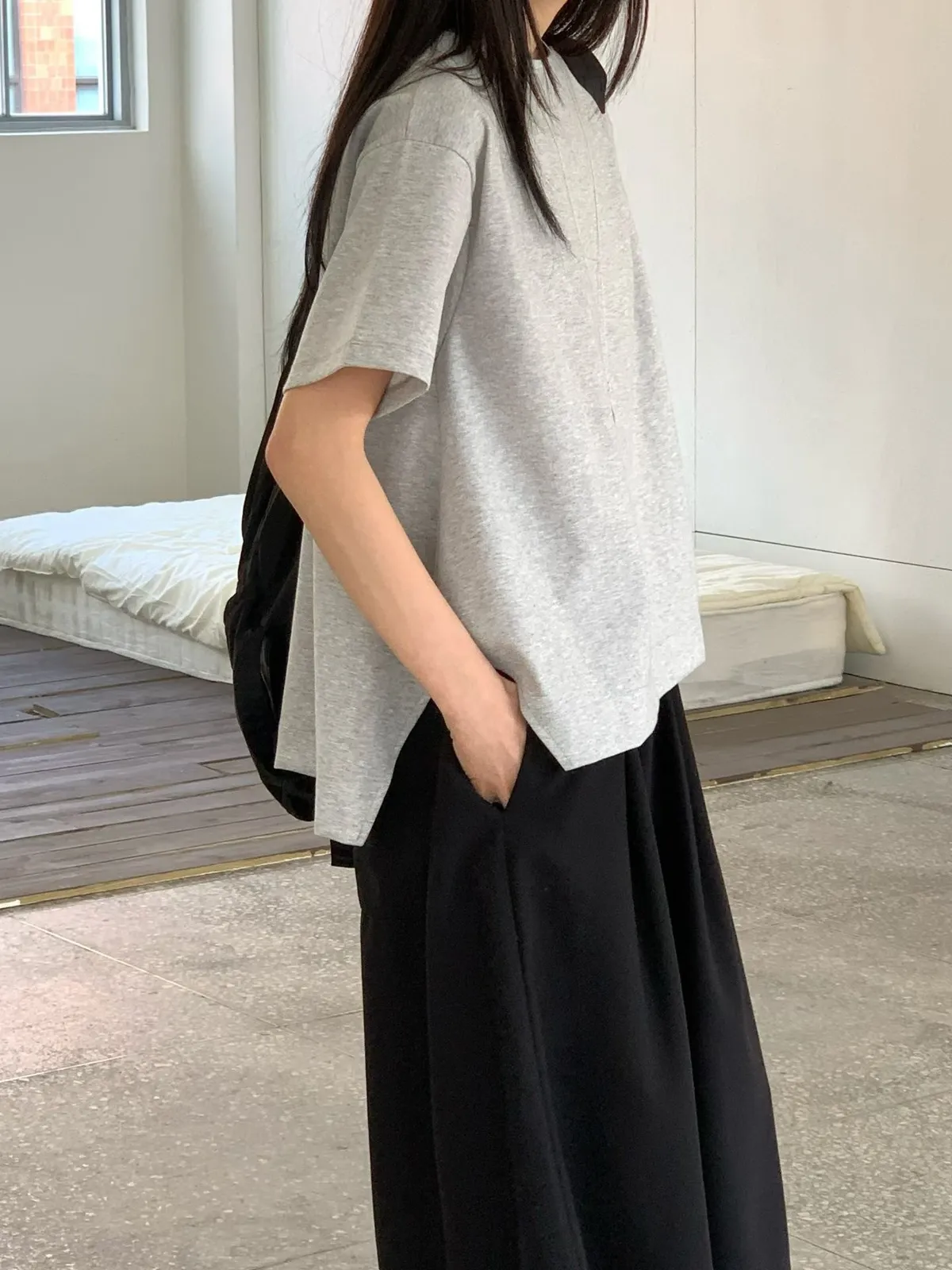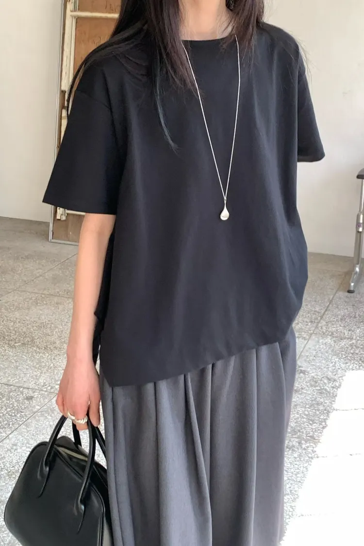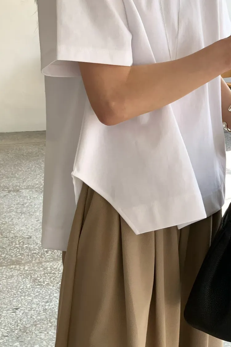 下擺精緻裁剪素面T