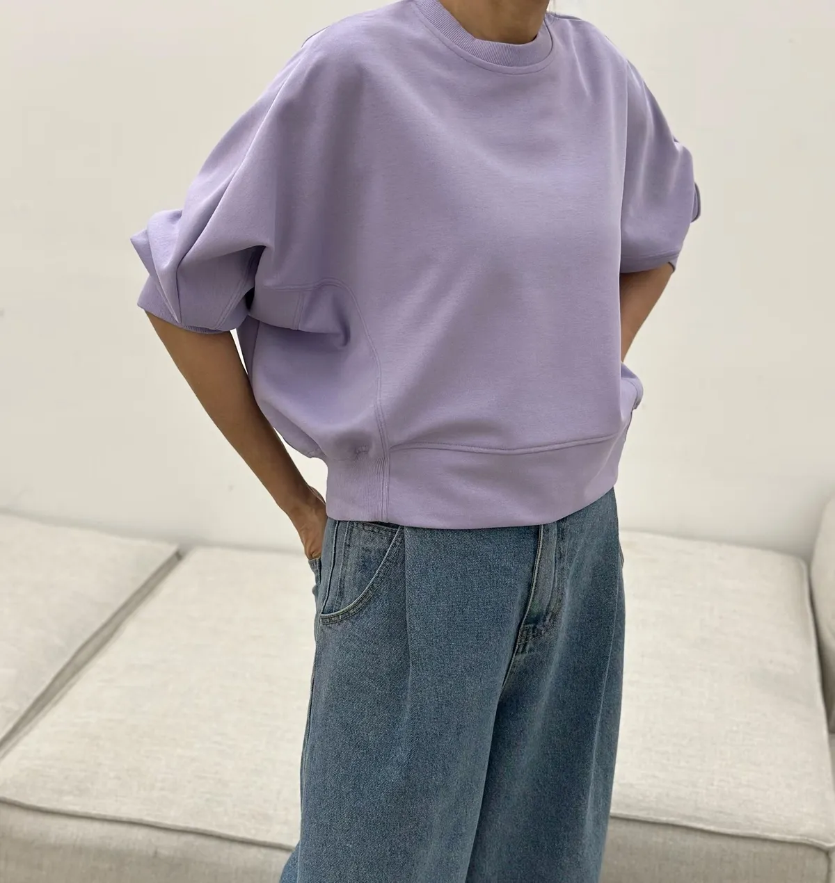 下擺鬆緊簡約七分袖衫✨