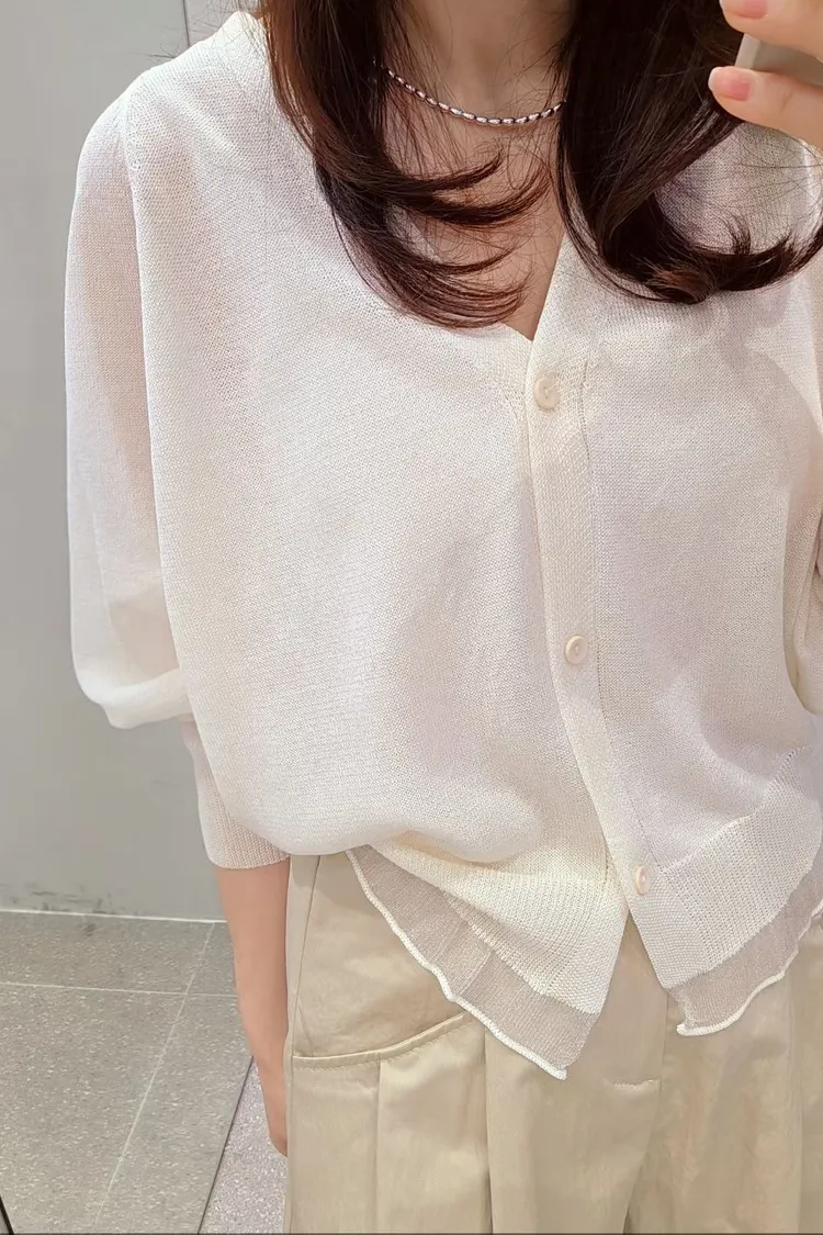V領排扣針織外罩💖