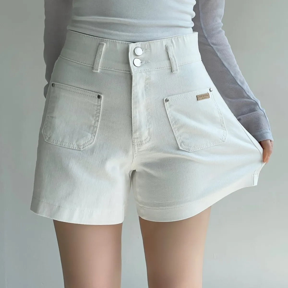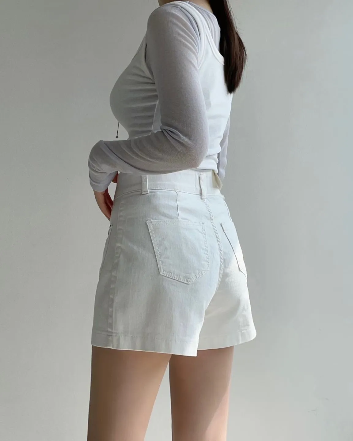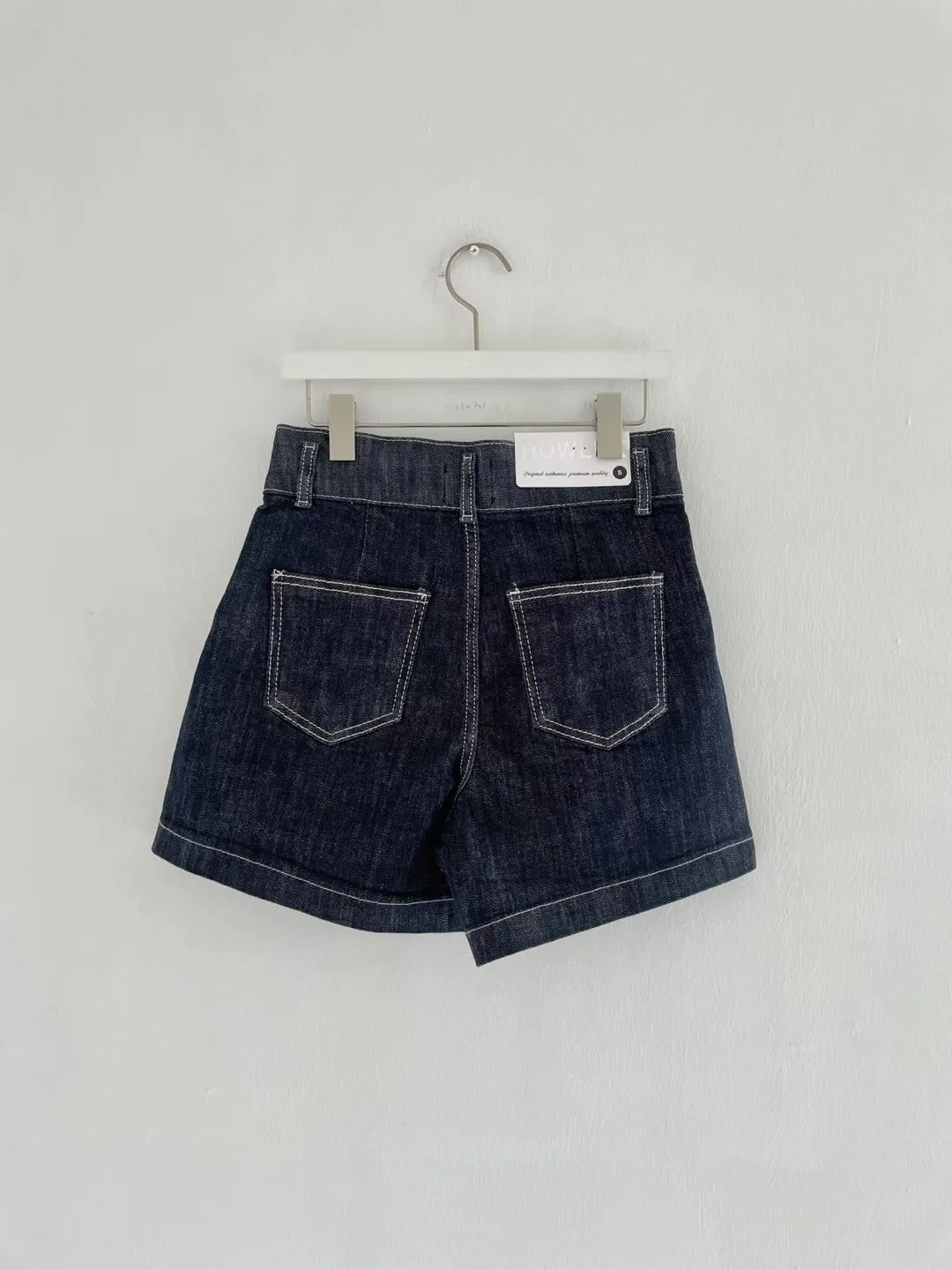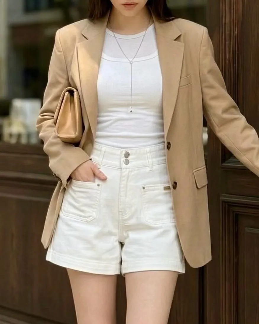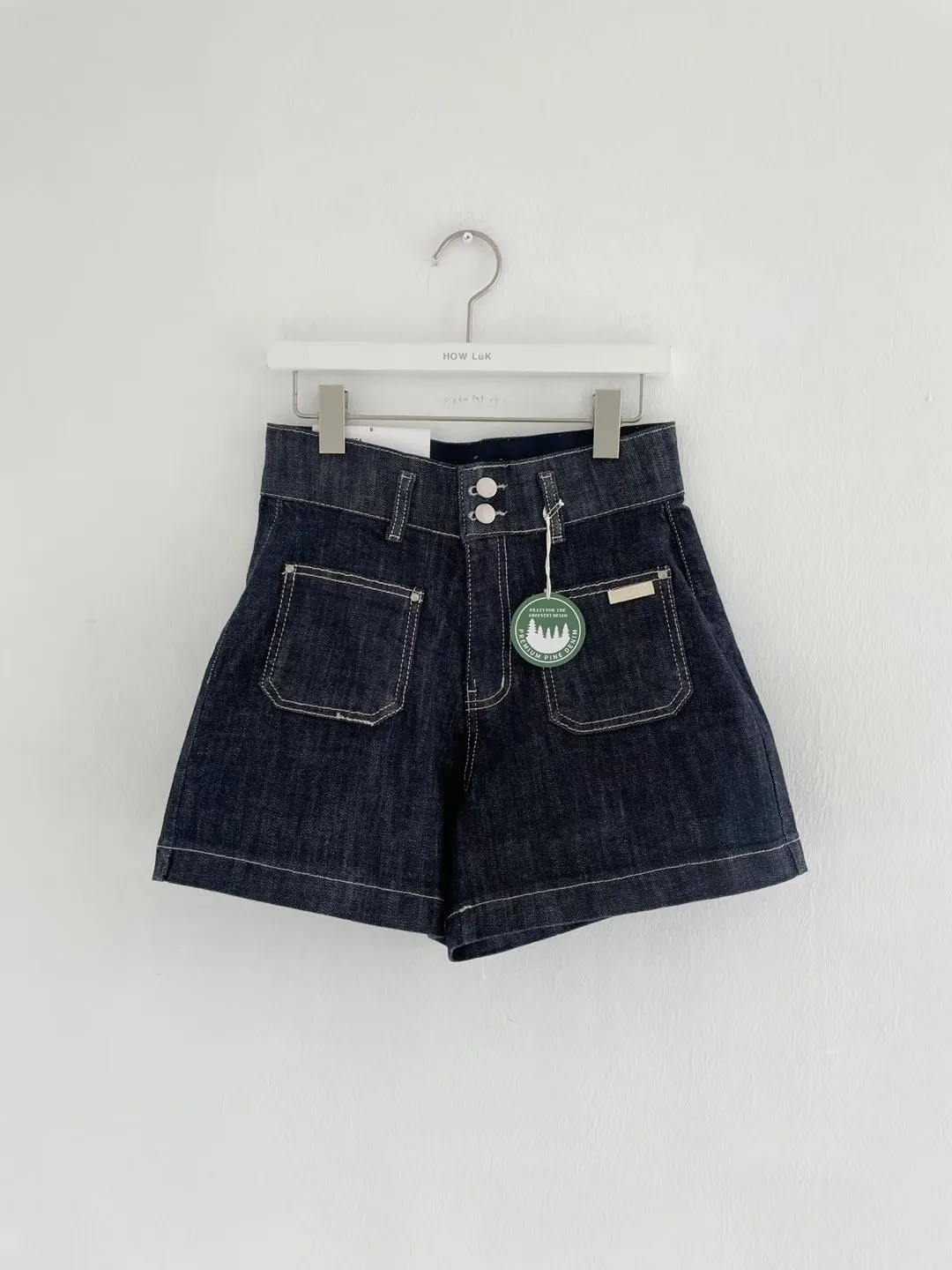 雙釦車線高腰牛仔短褲✨
