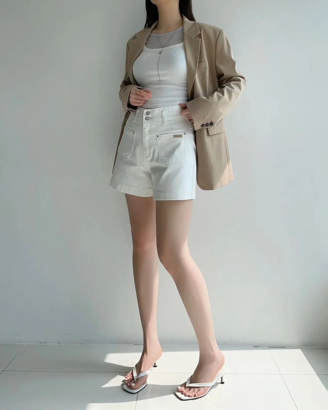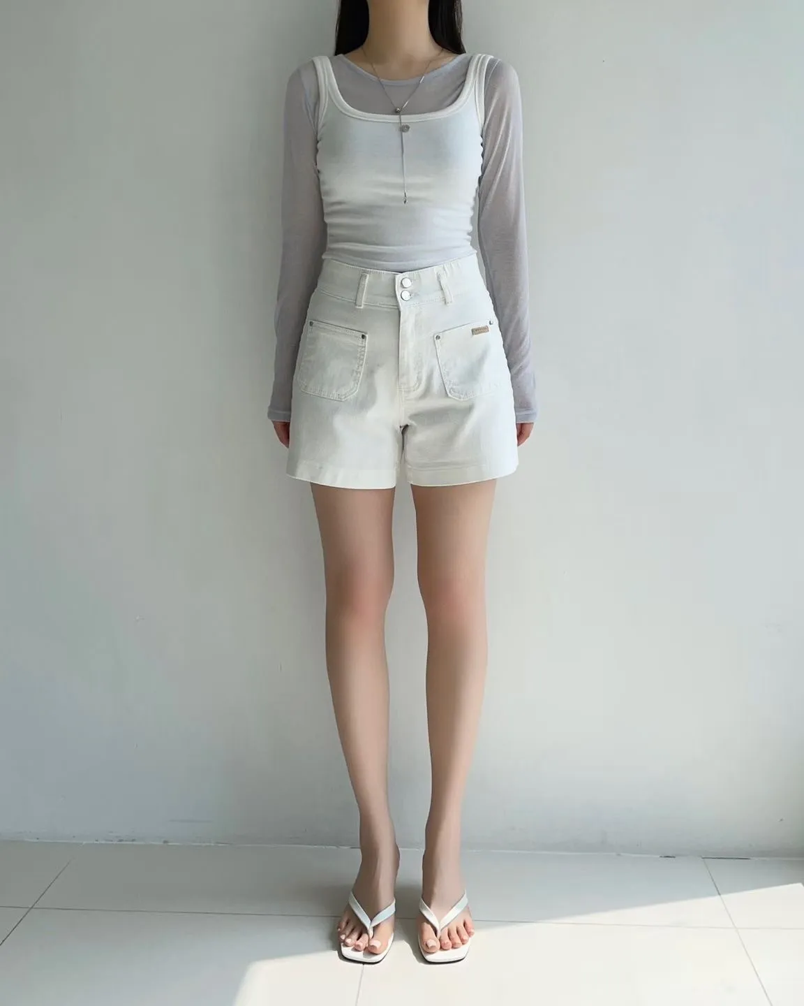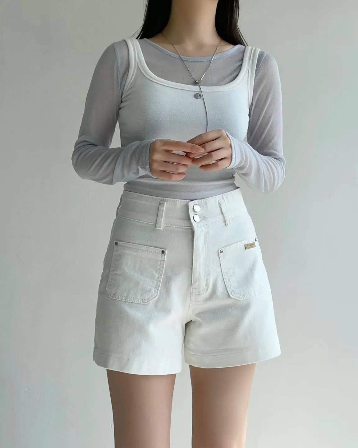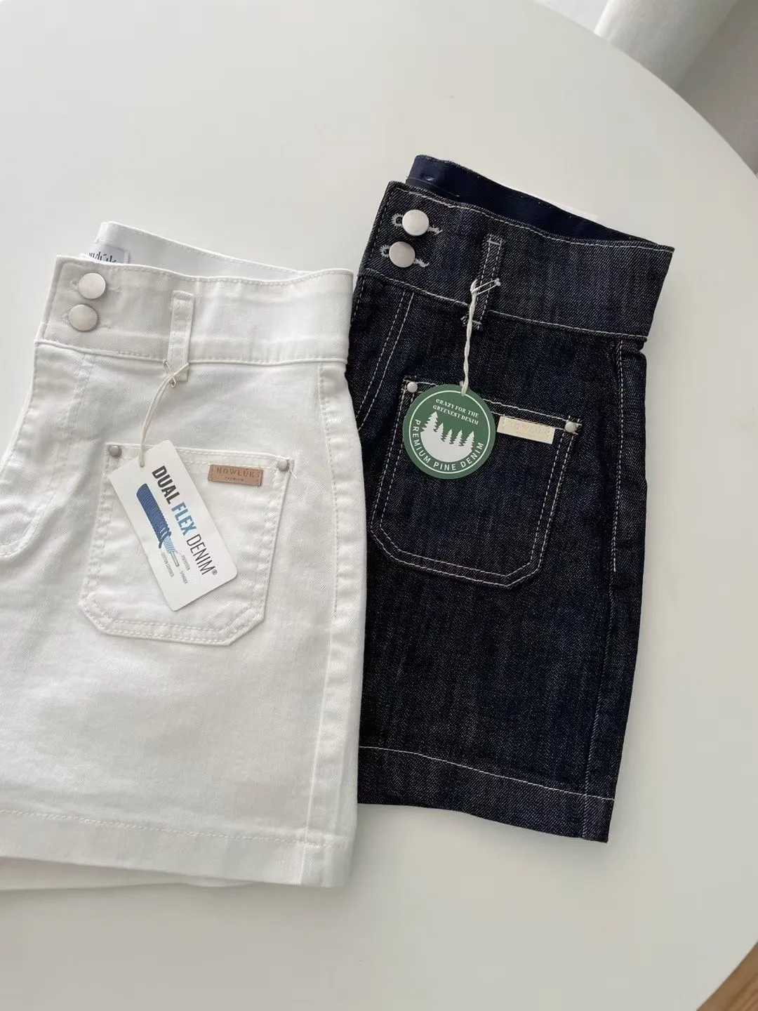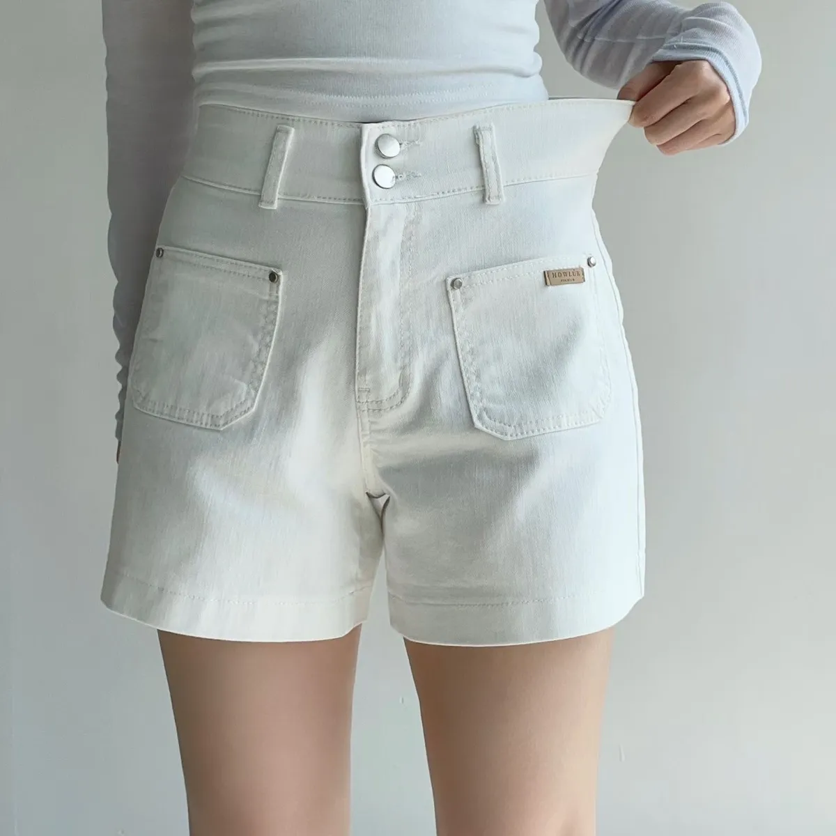 雙釦車線高腰牛仔短褲✨