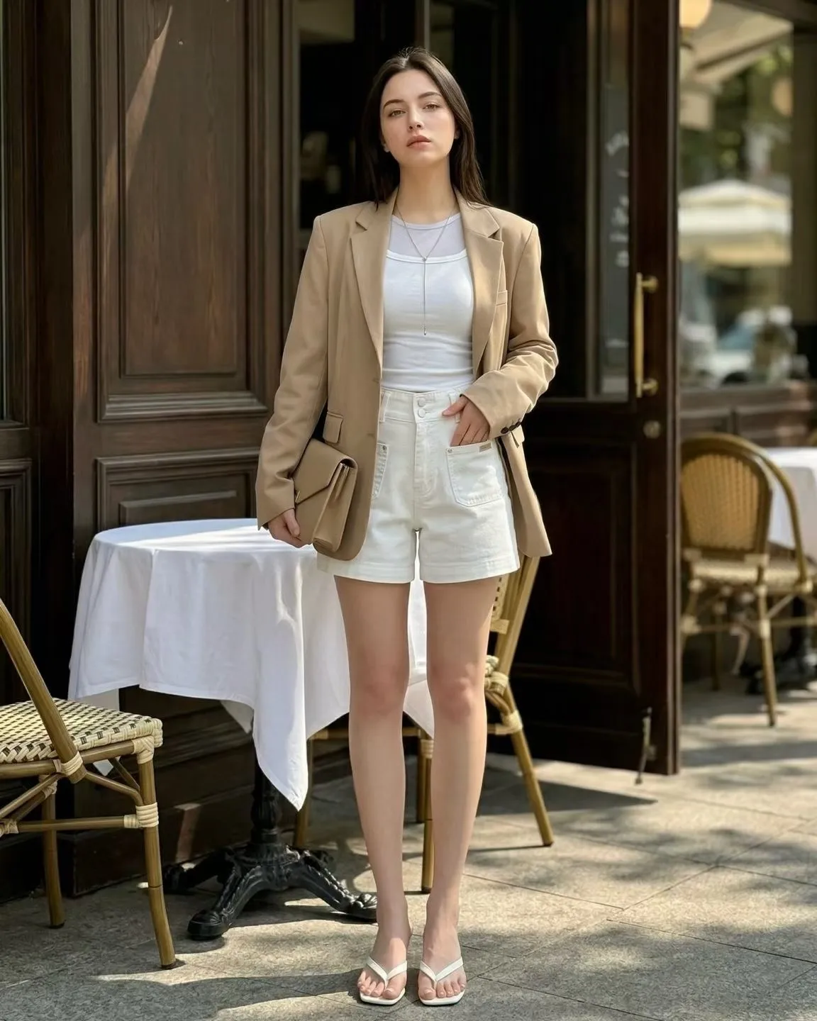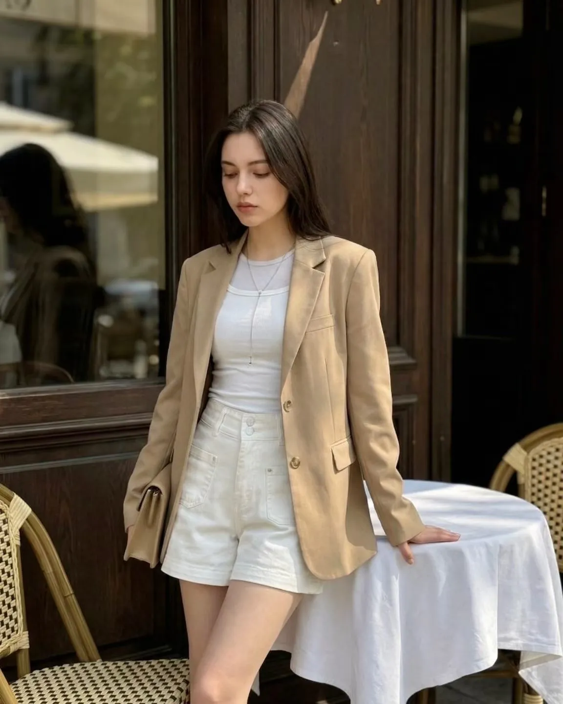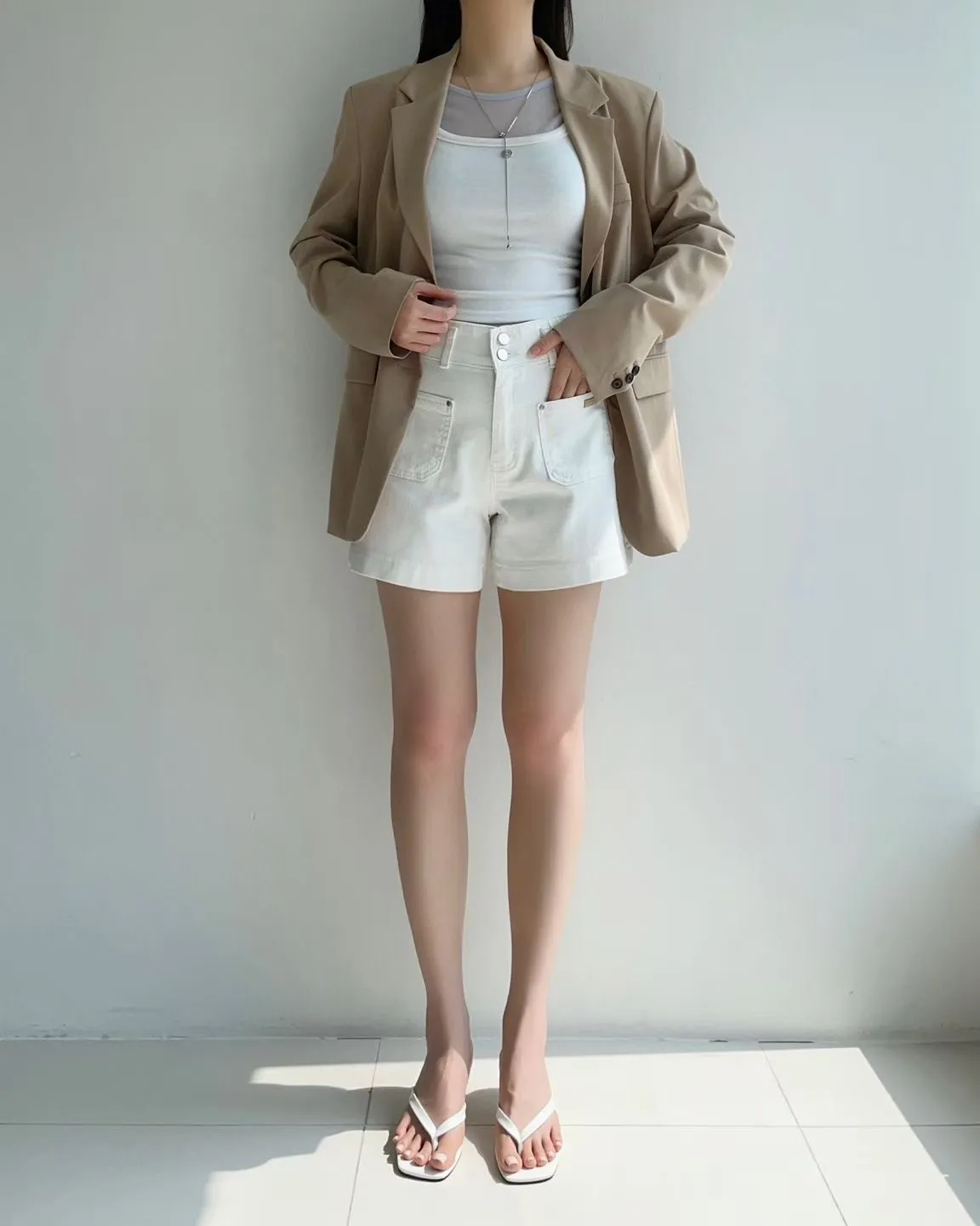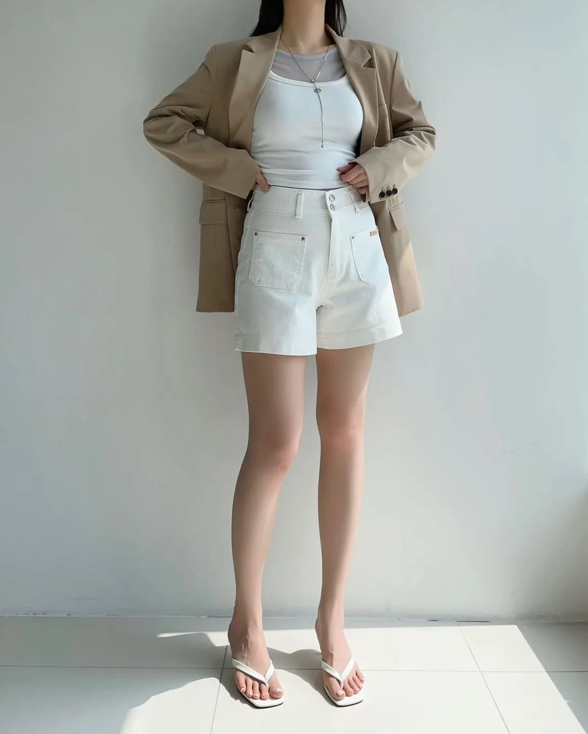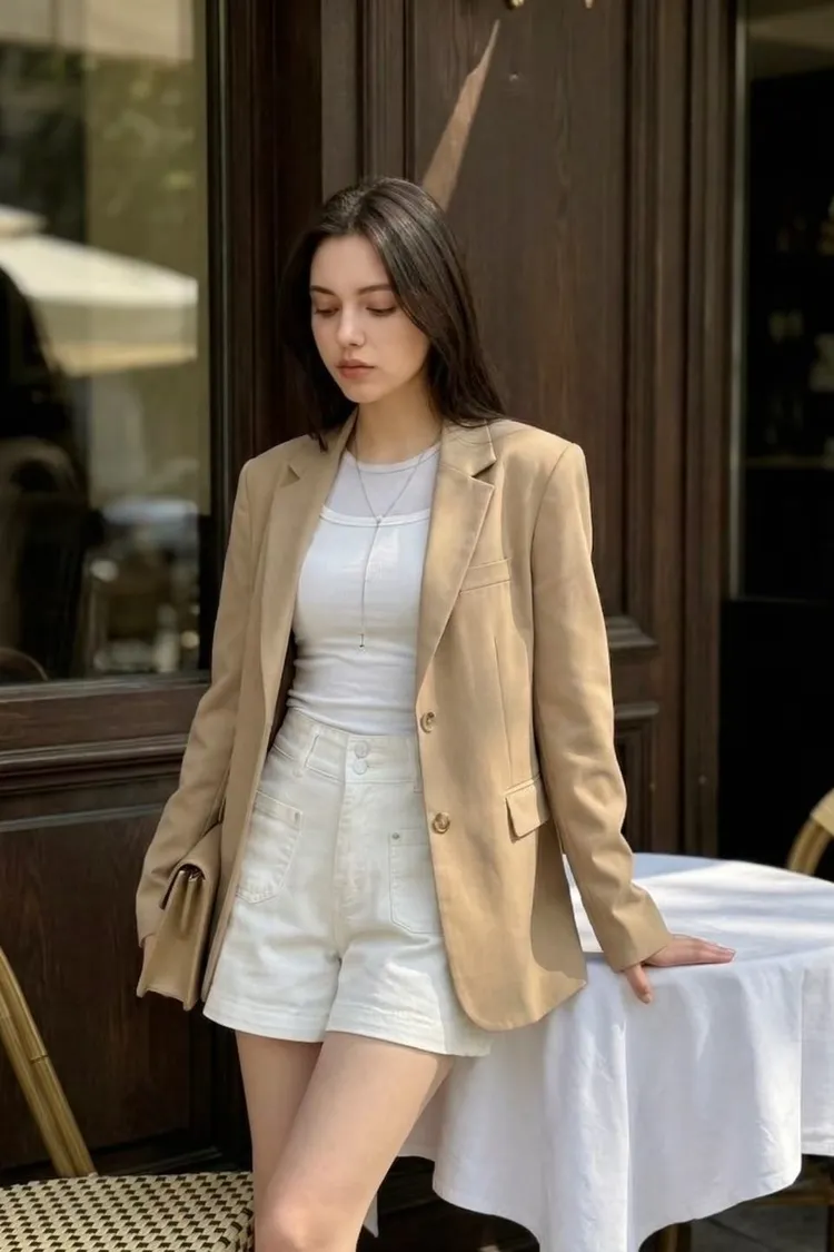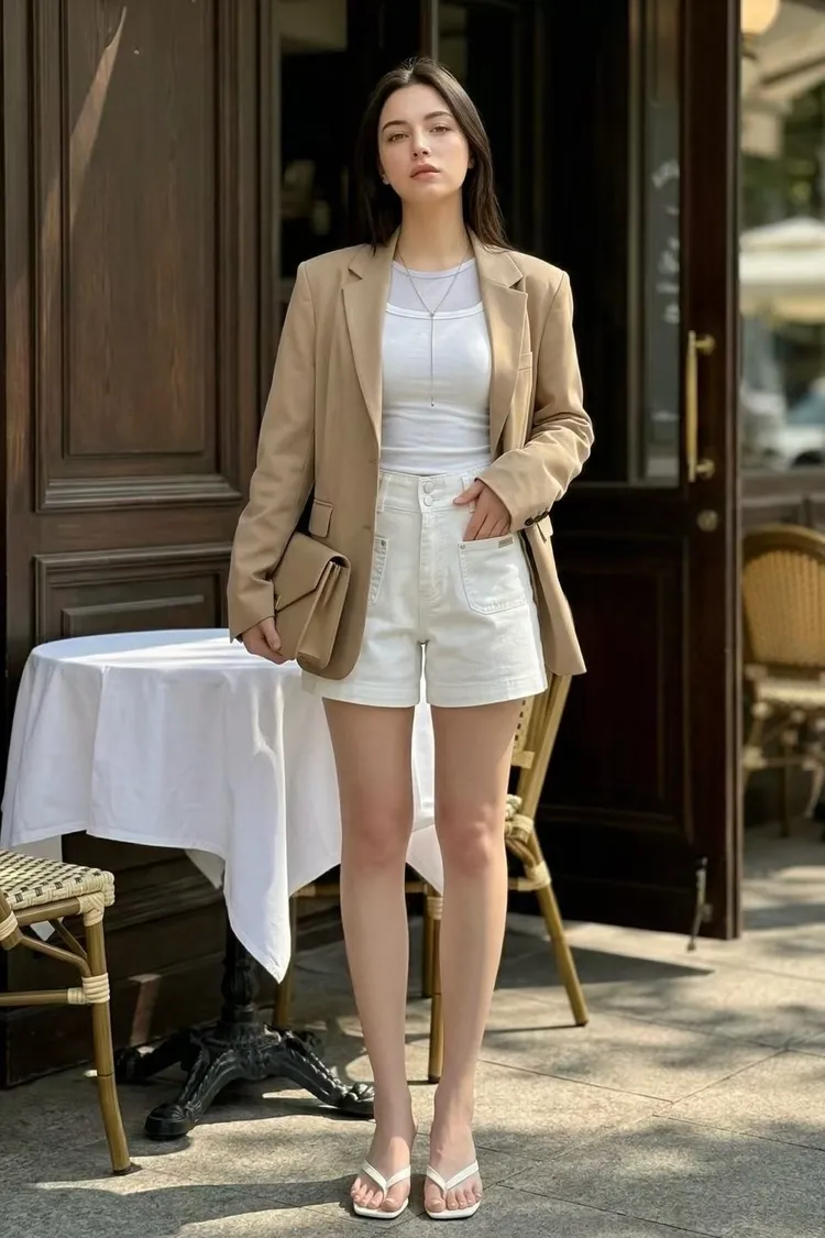 雙釦車線高腰牛仔短褲✨