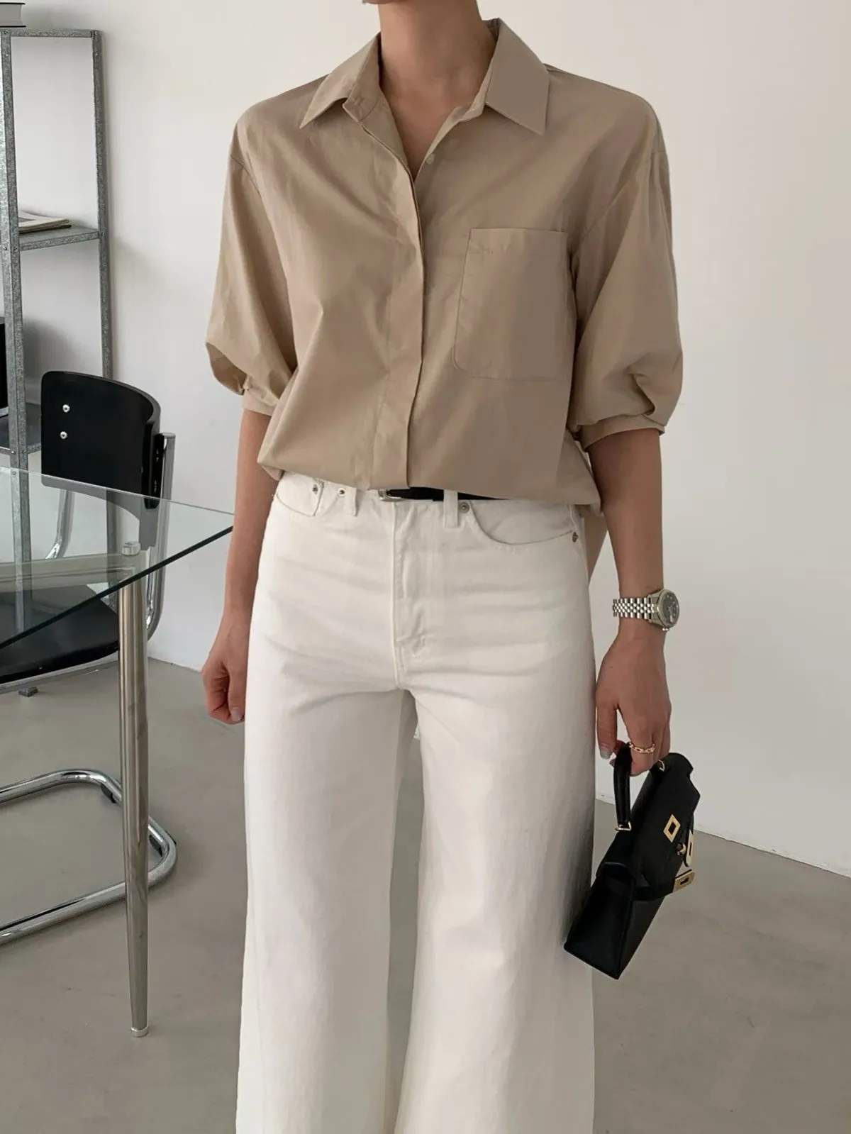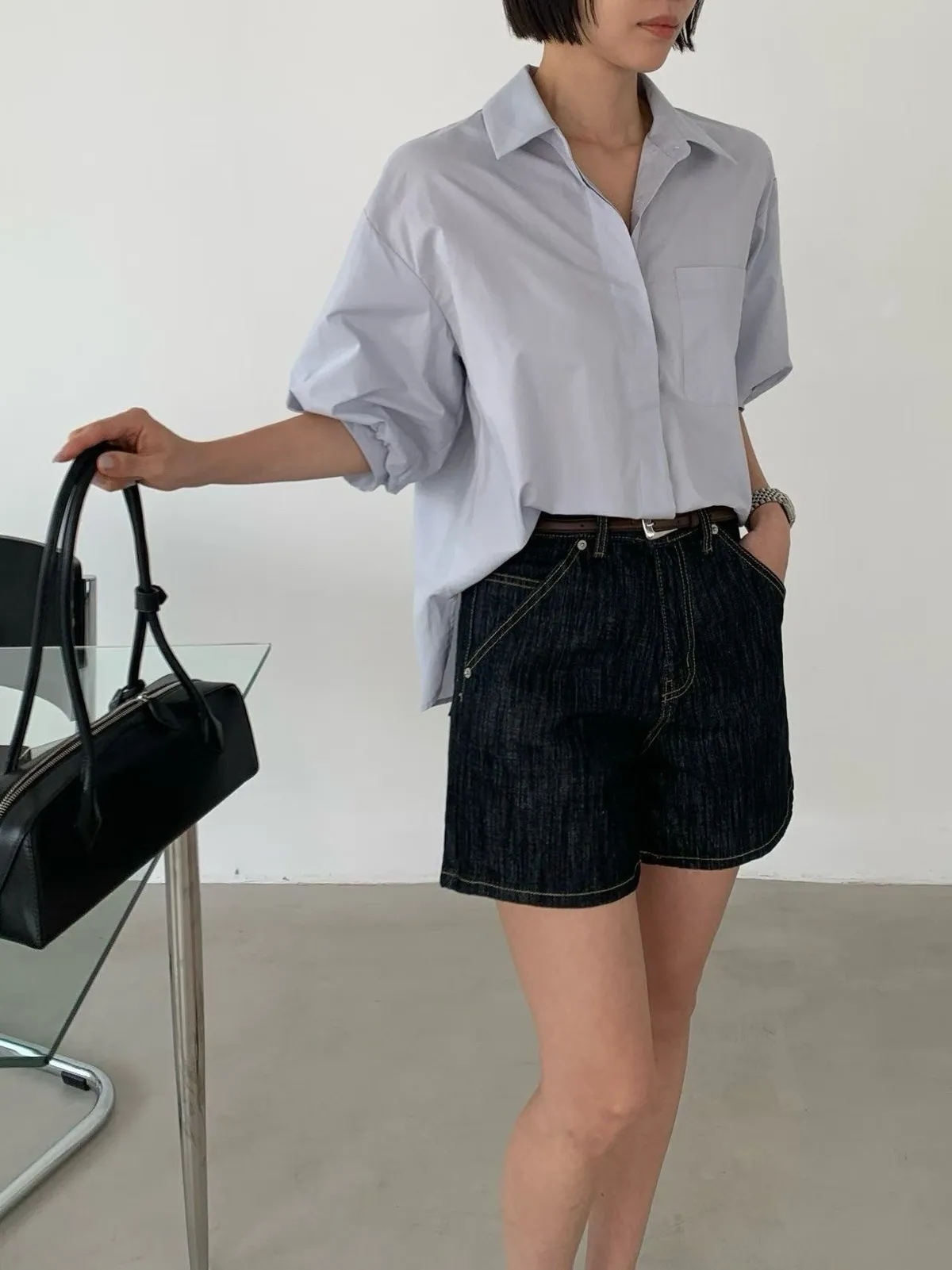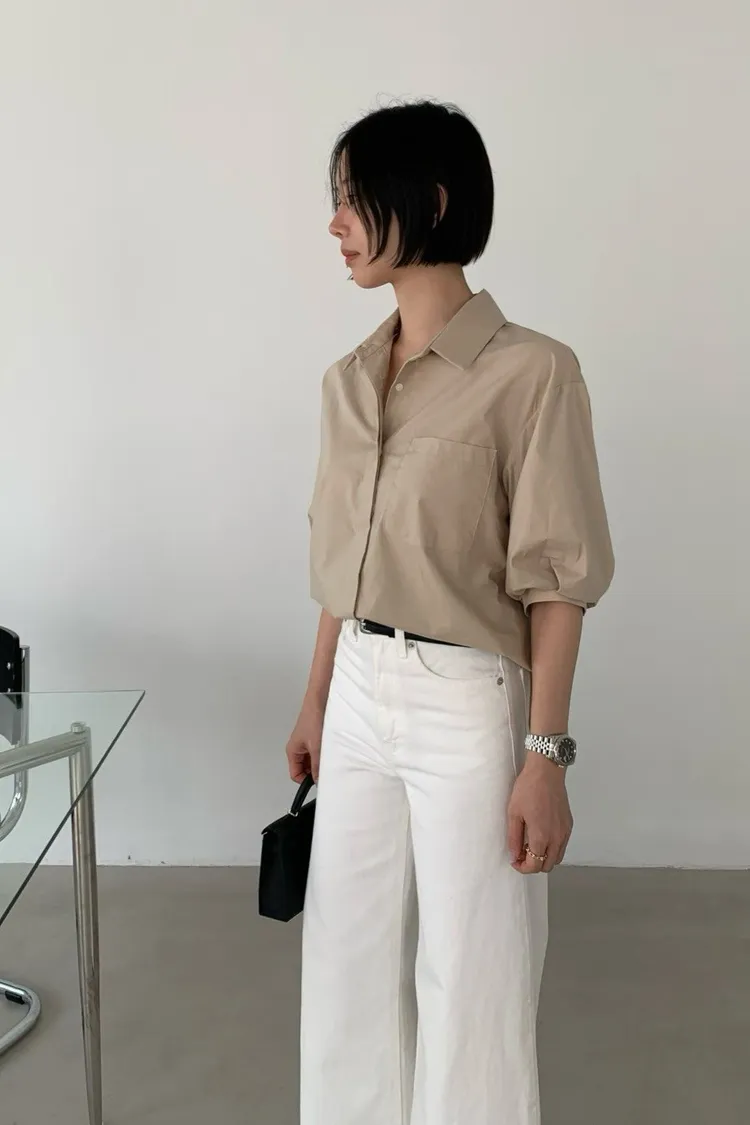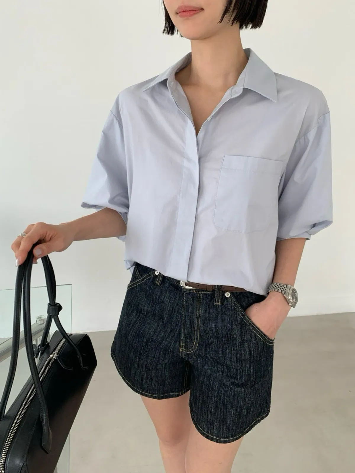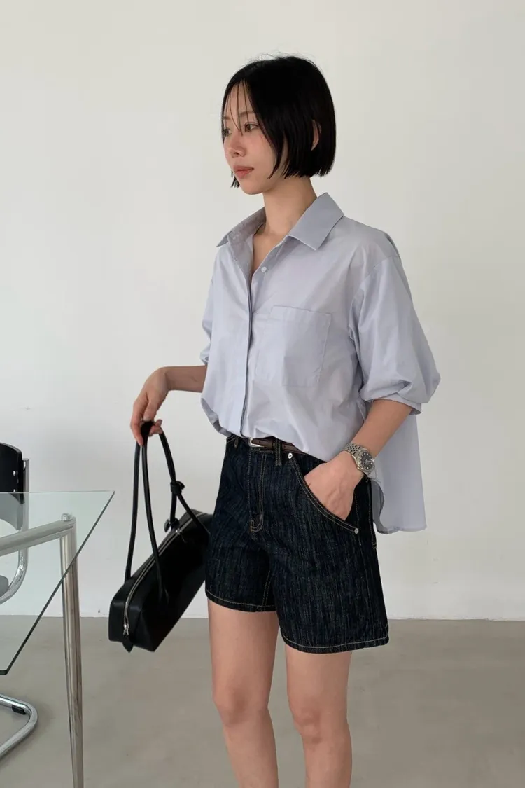 隱藏排釦短袖襯衫✨
