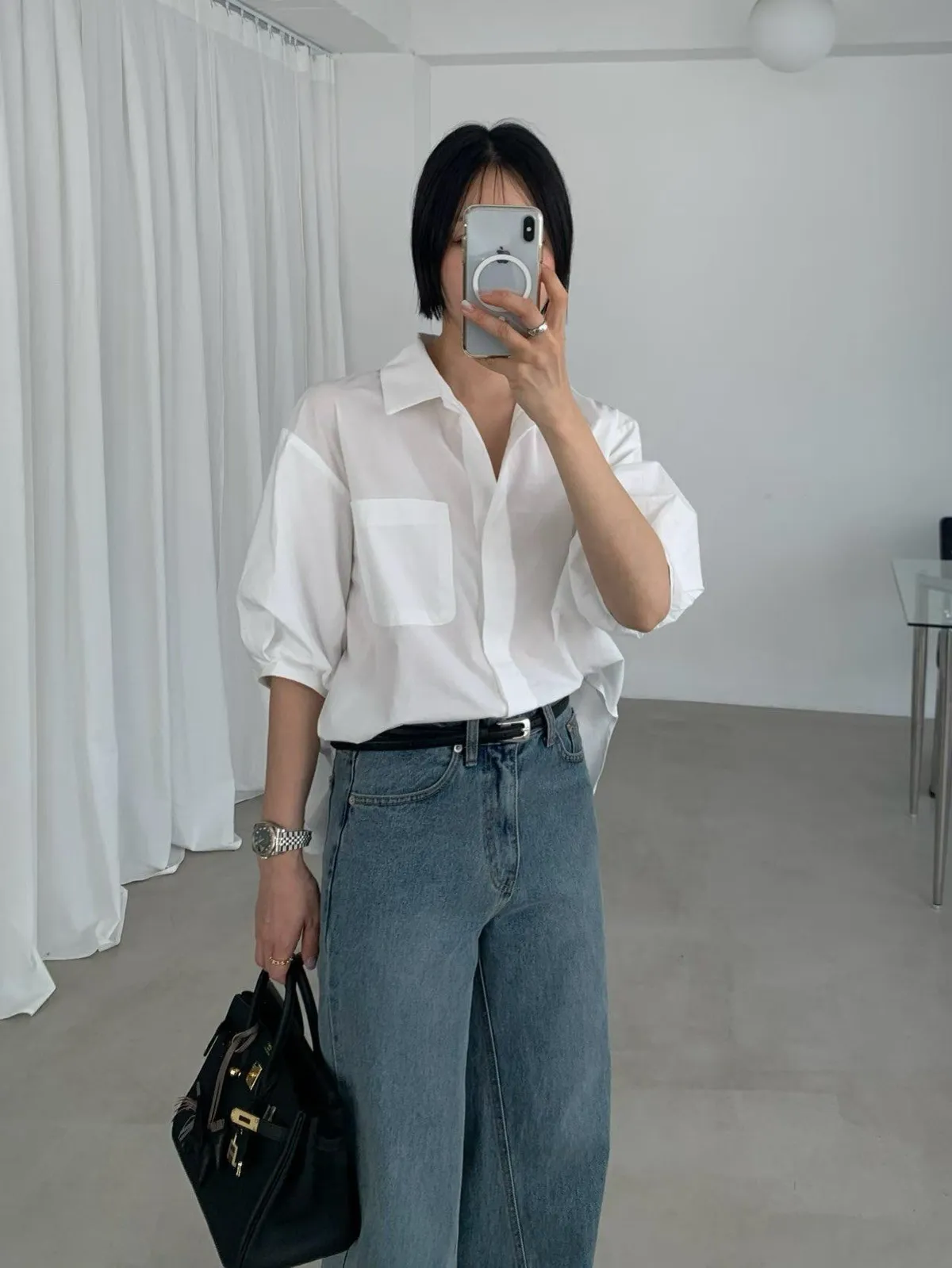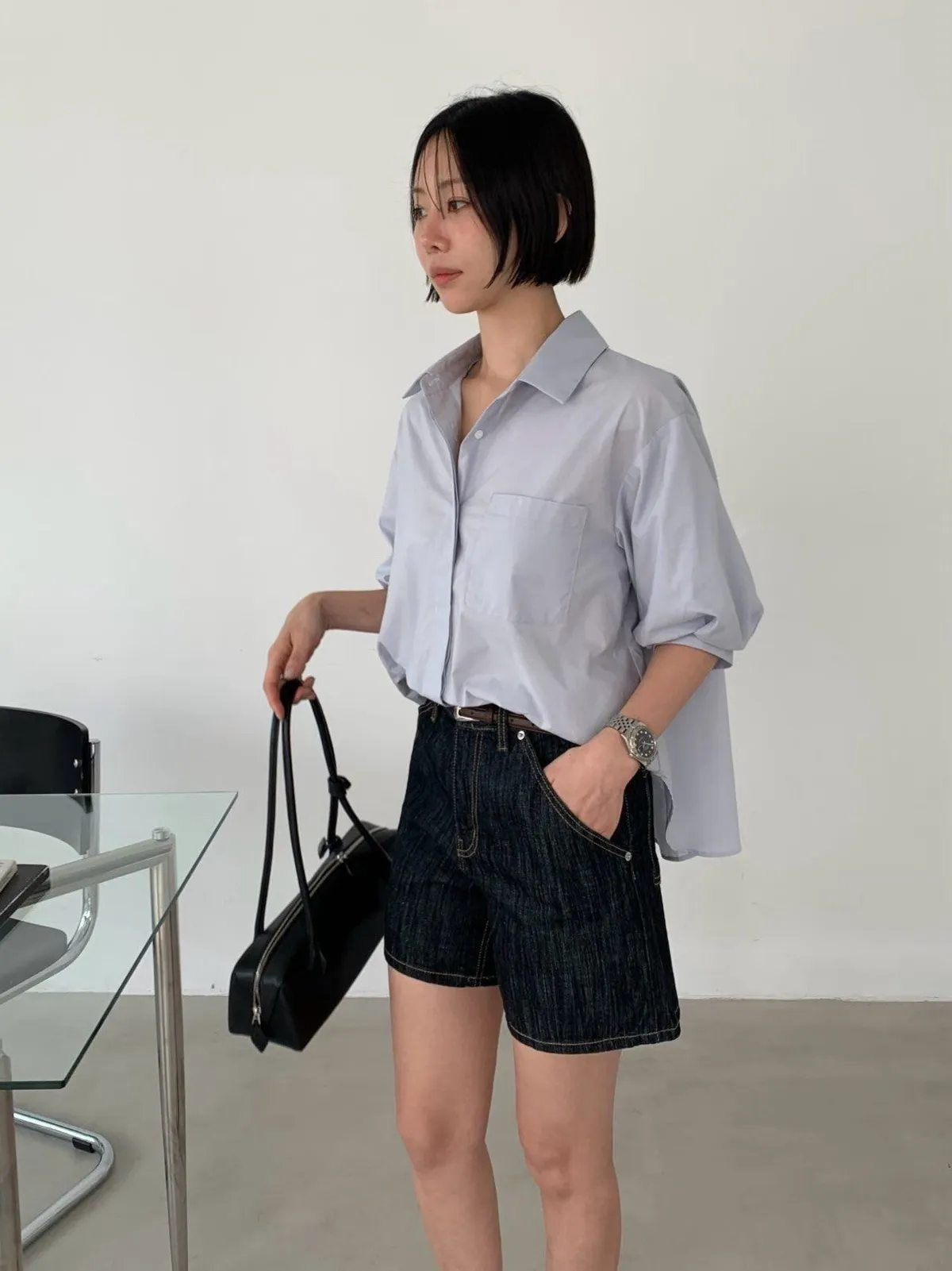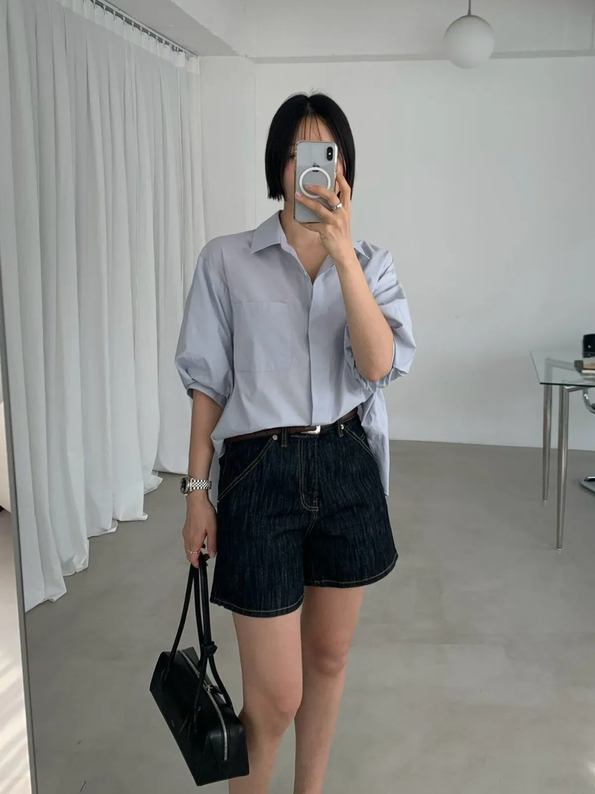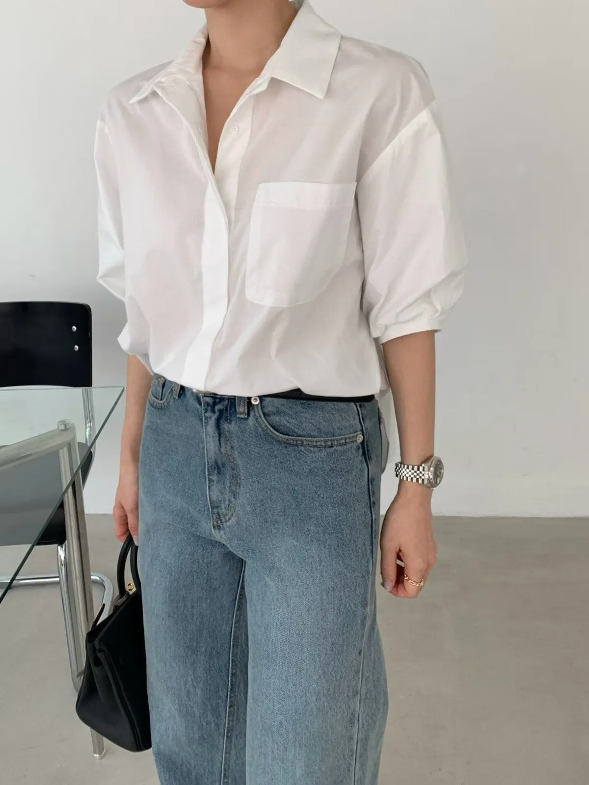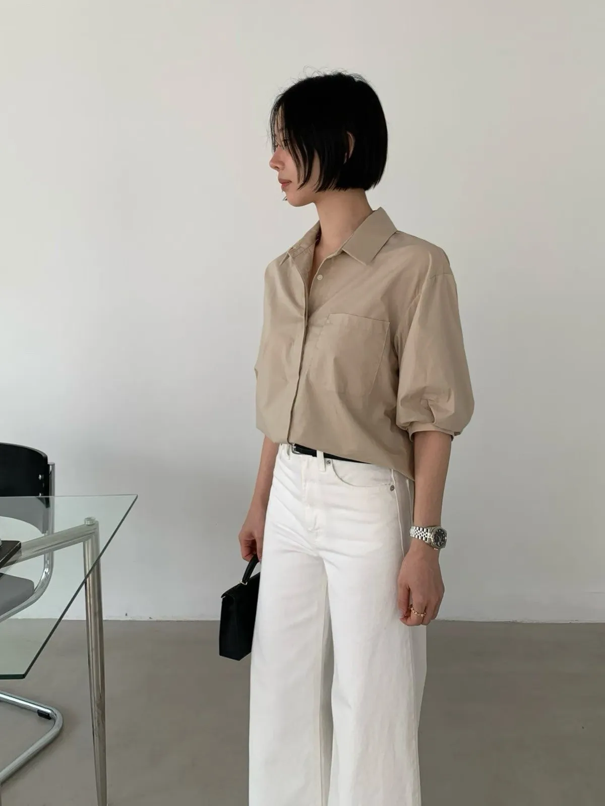 隱藏排釦短袖襯衫✨
