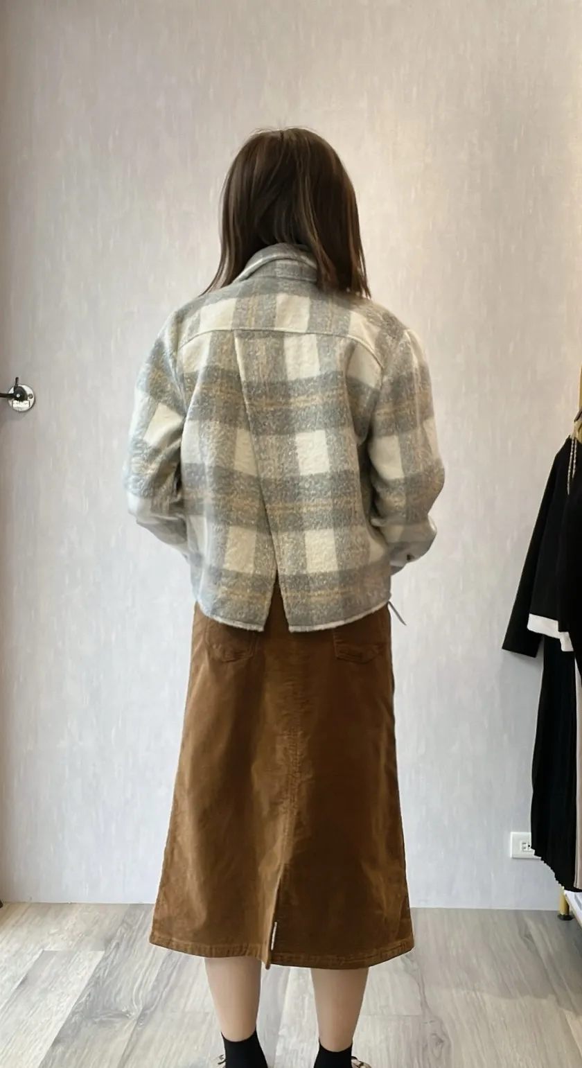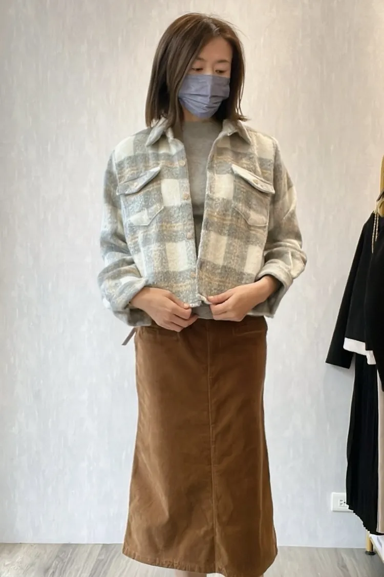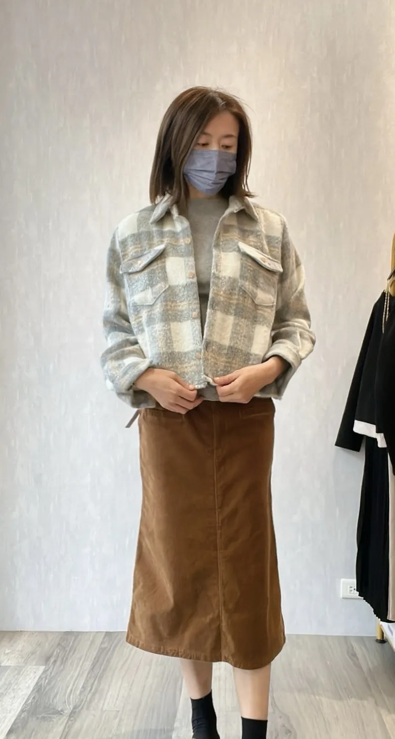 格紋毛料後開衩兩穿衣(美爆😍)
