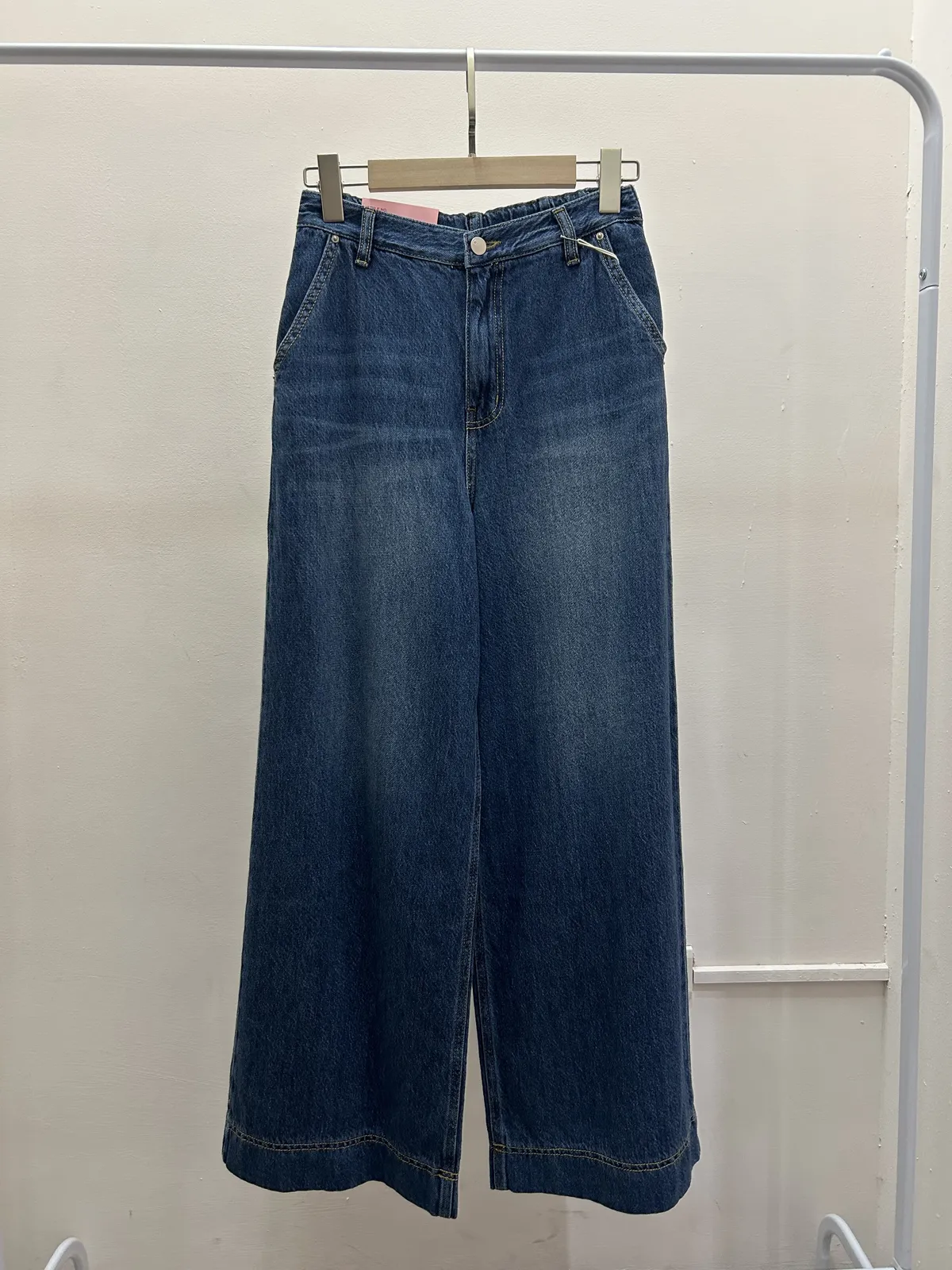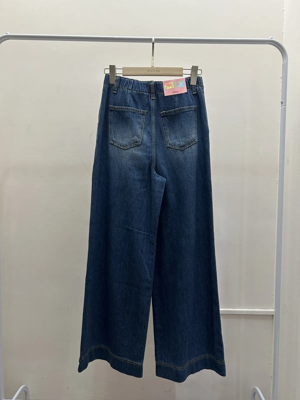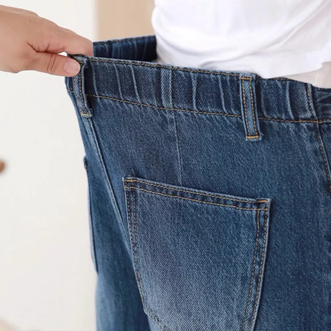 後鬆緊牛仔寬褲