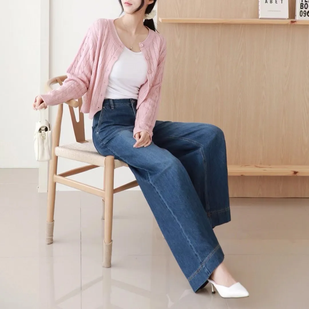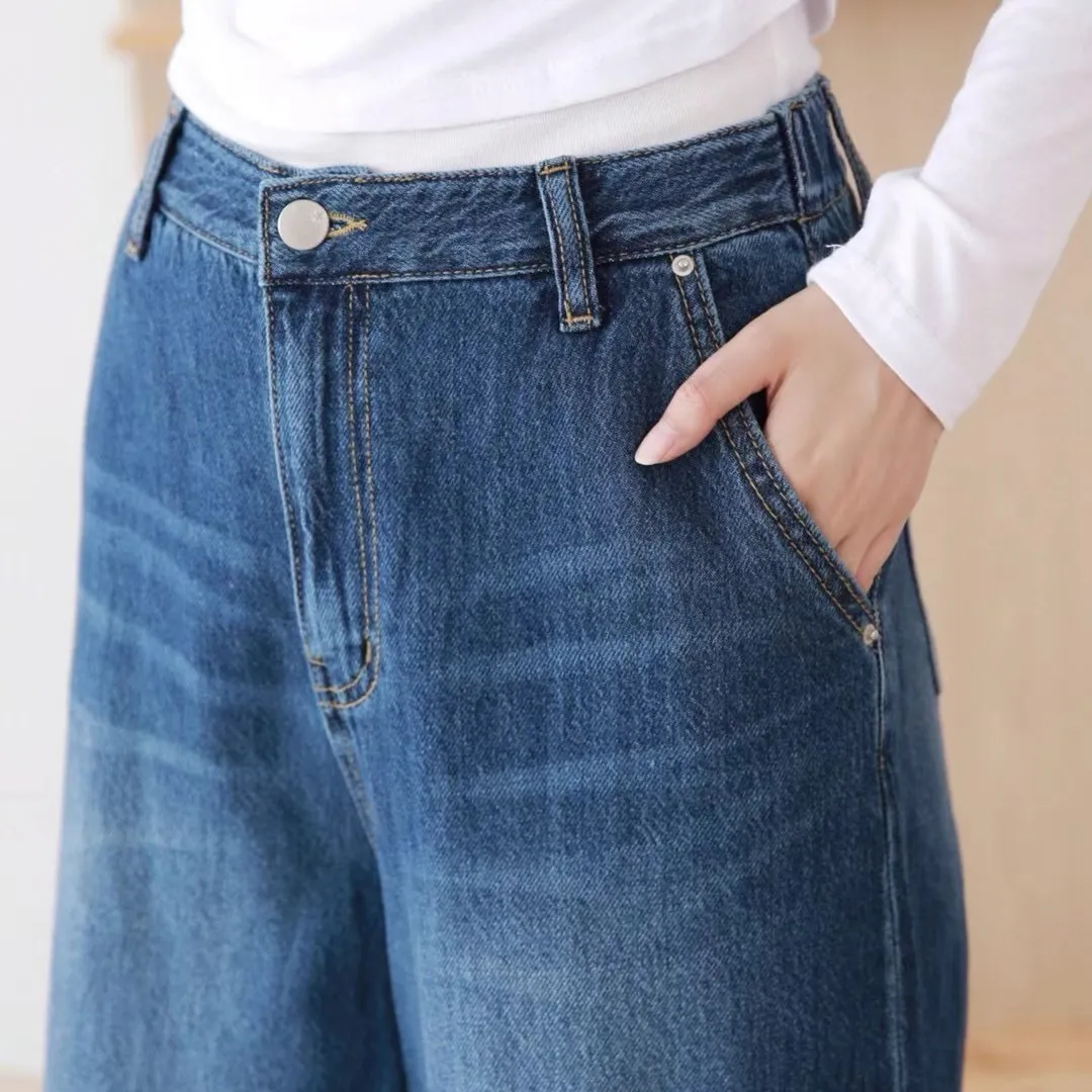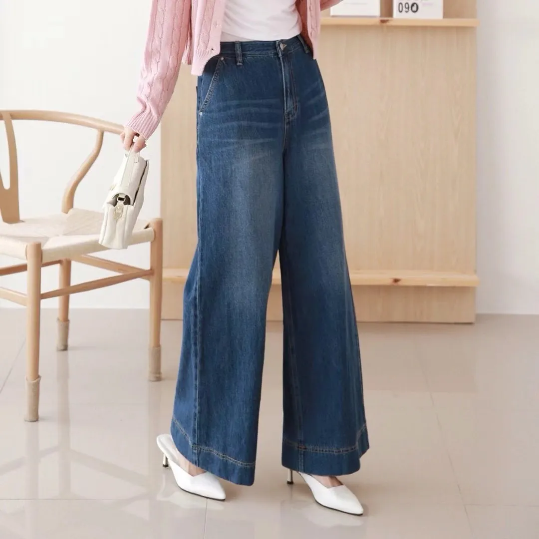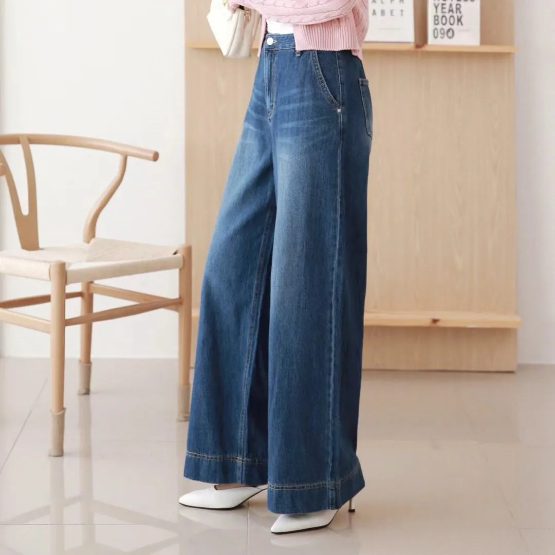 後鬆緊牛仔寬褲