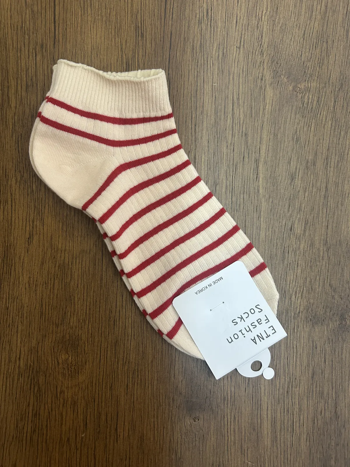 紅條紋低筒襪
